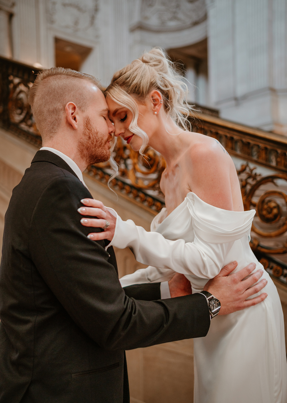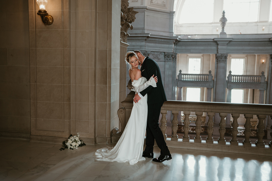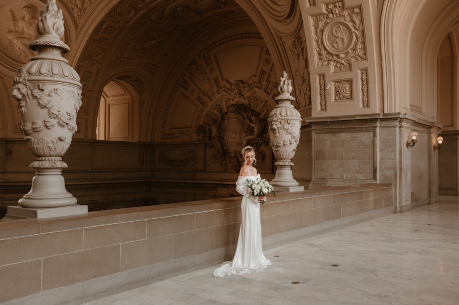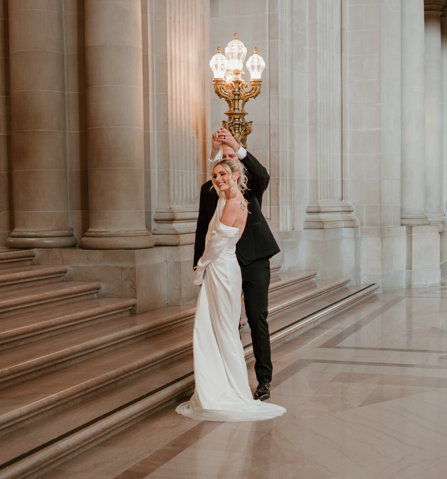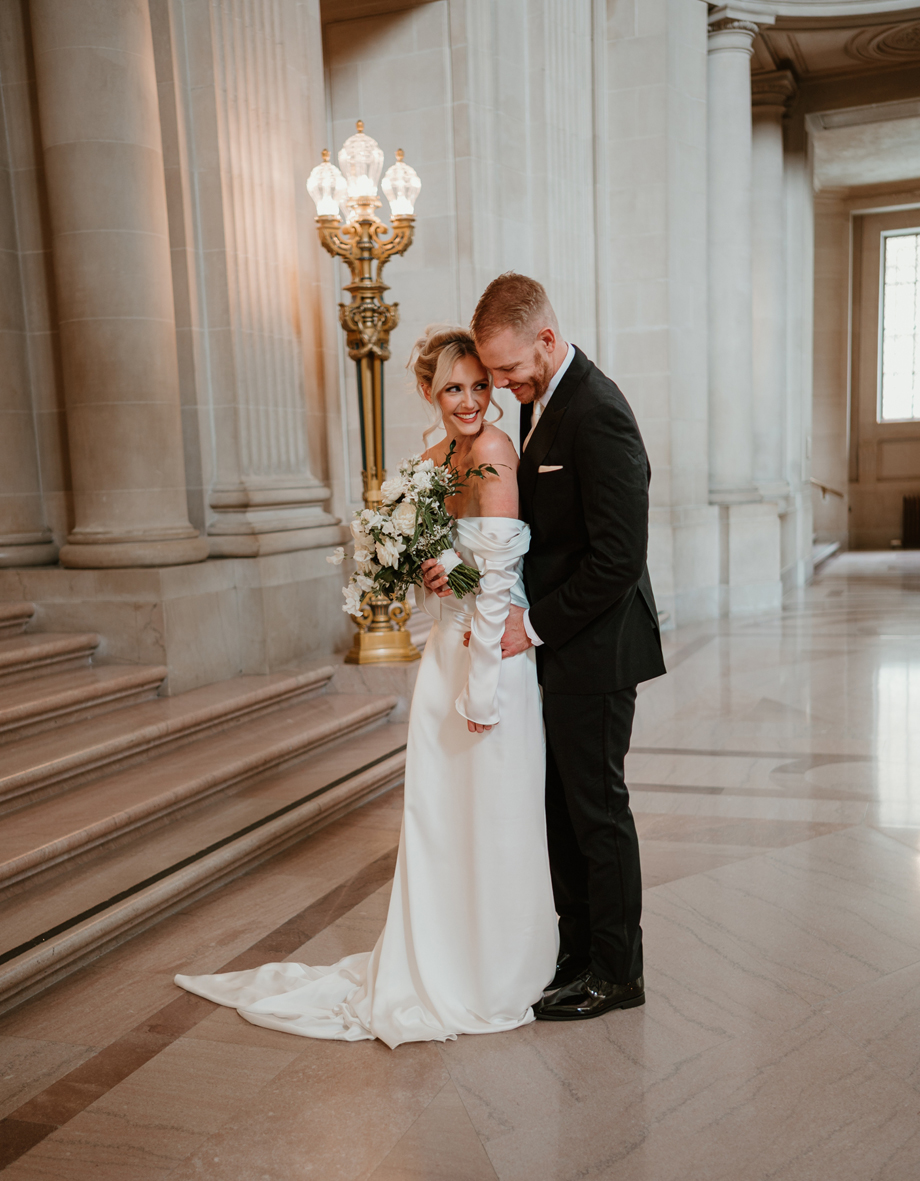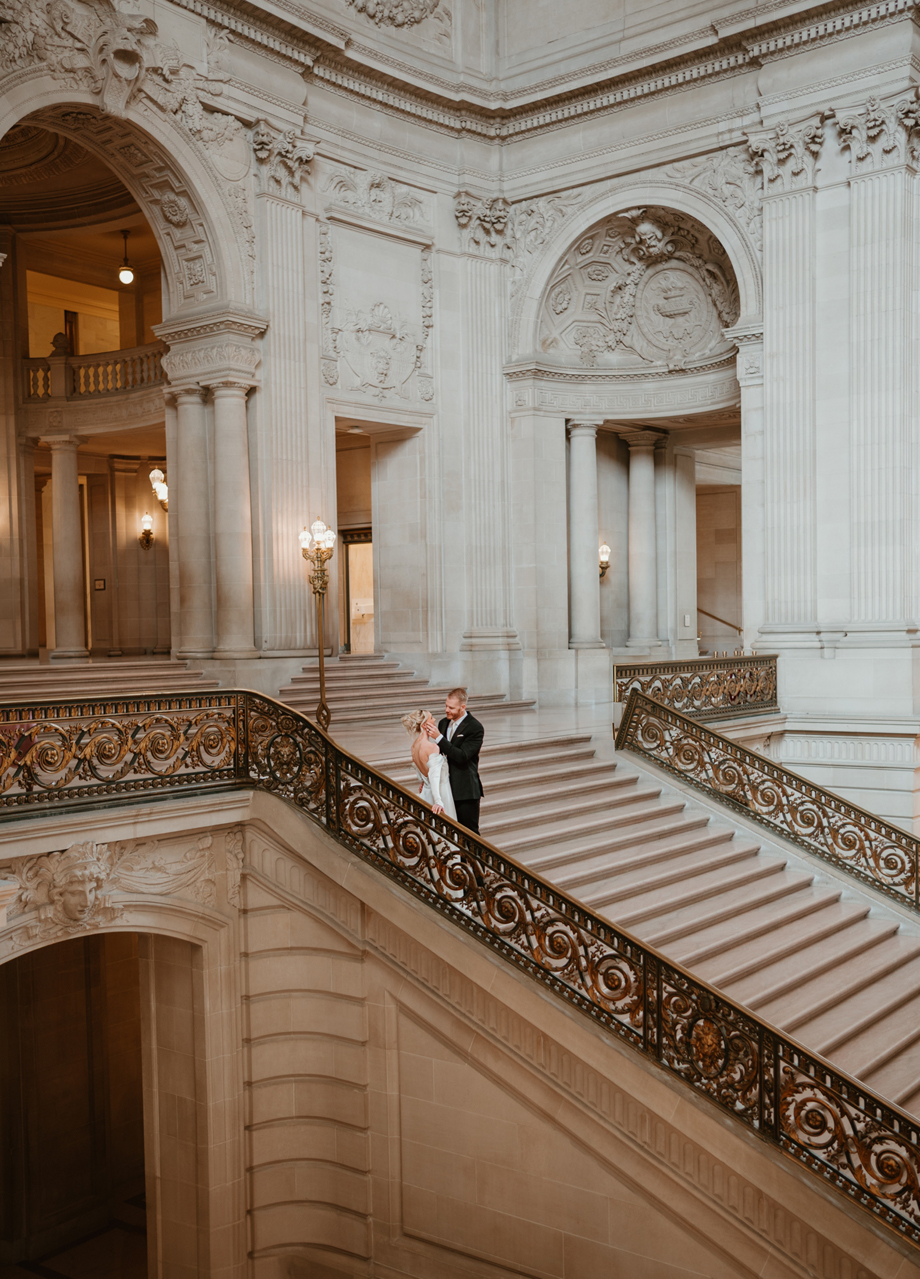 For today’s #StyledShootSunday we head to the Bay…San Francisco City Hall to be exact! When love meets the elegance of San Francisco City Hall, magic happens—and this styled elopement shoot proves it! With sunbeams streaming through those iconic grand windows and every corner of the building practically begging for a photo op, this styled shoot combines the perfect blend of romance, style, and intimate vibes in one seriously stunning setting. Let’s dive in!