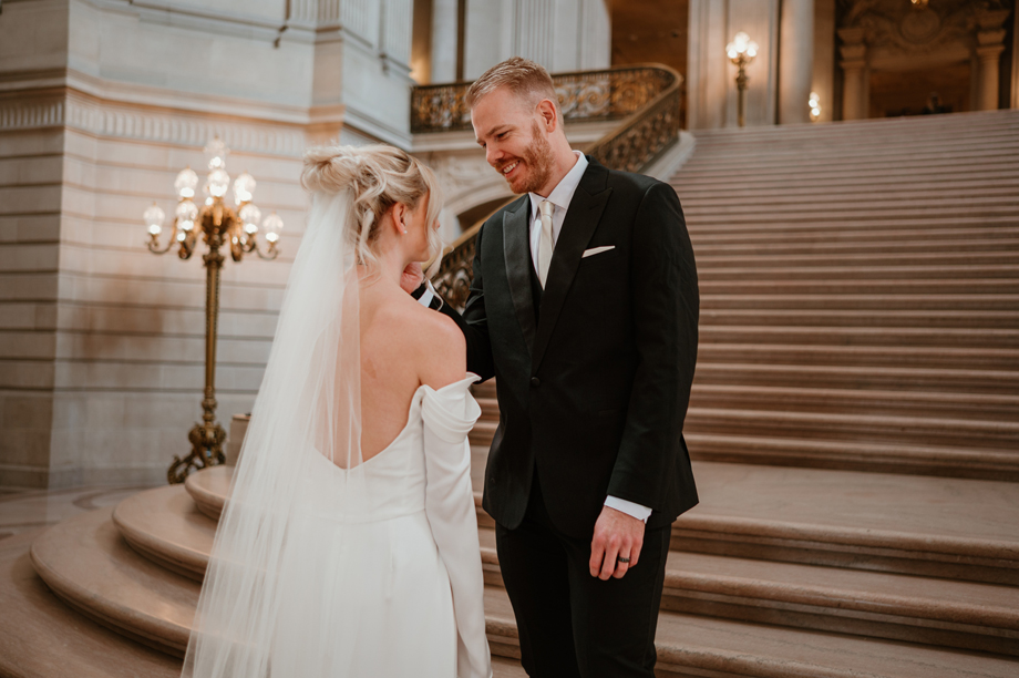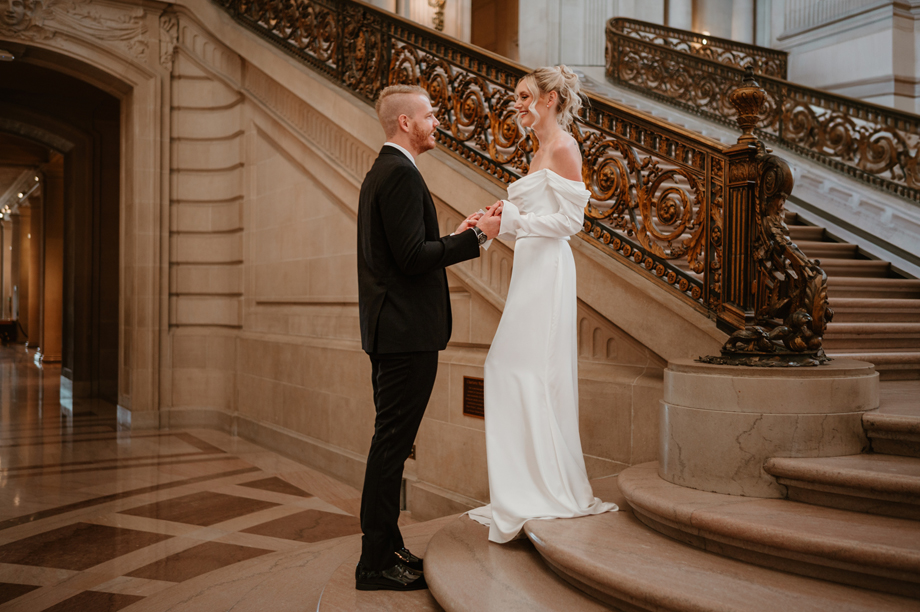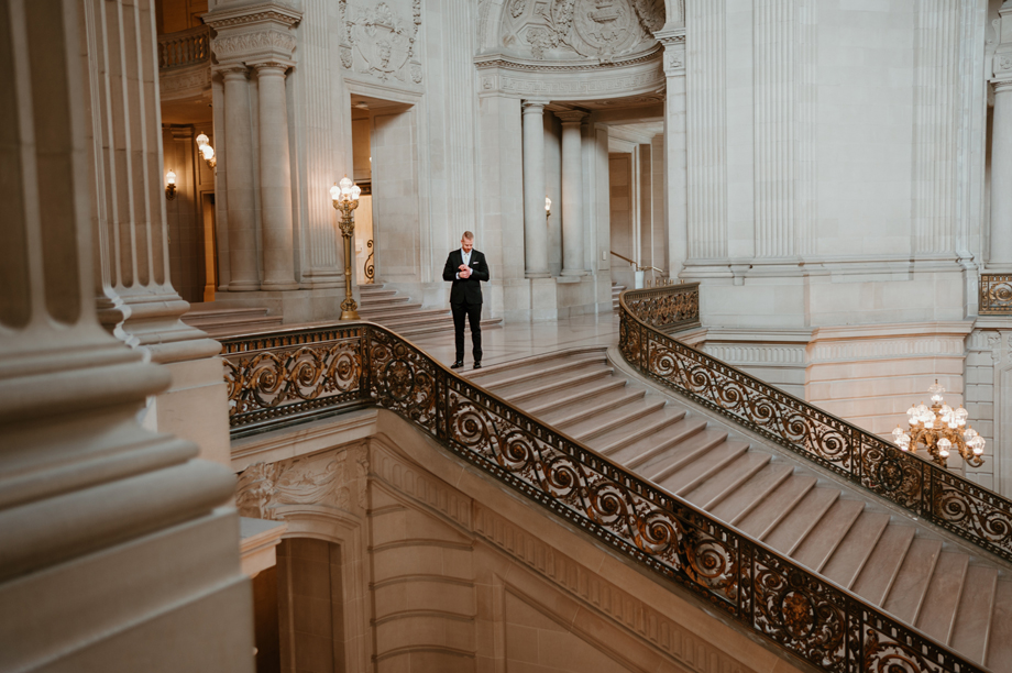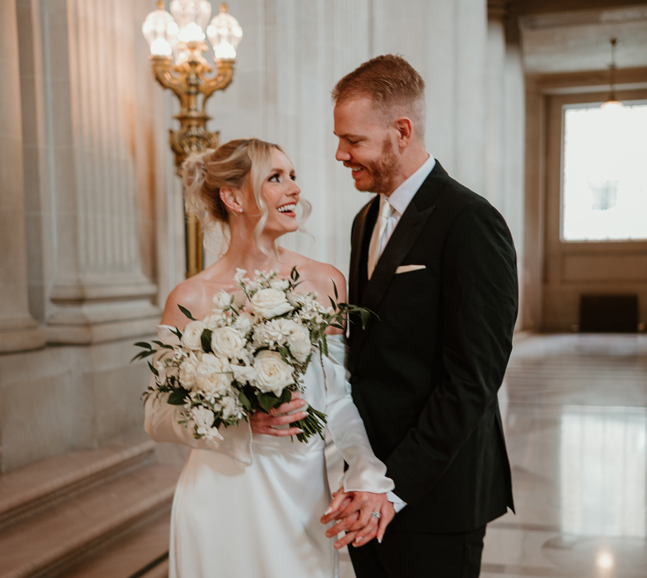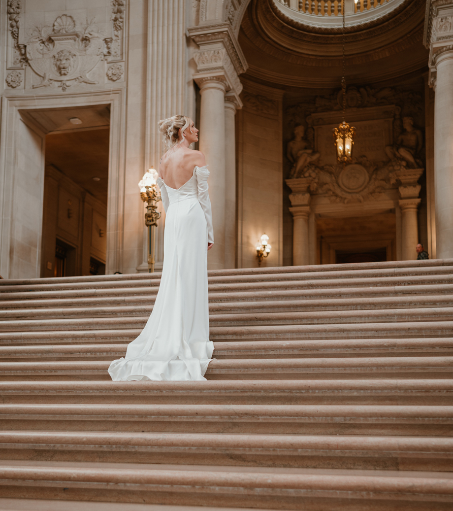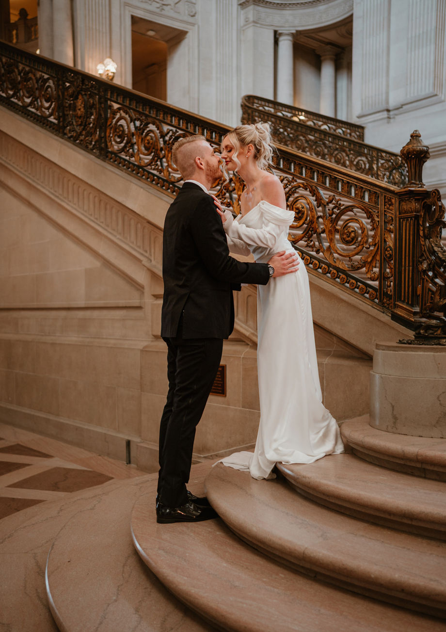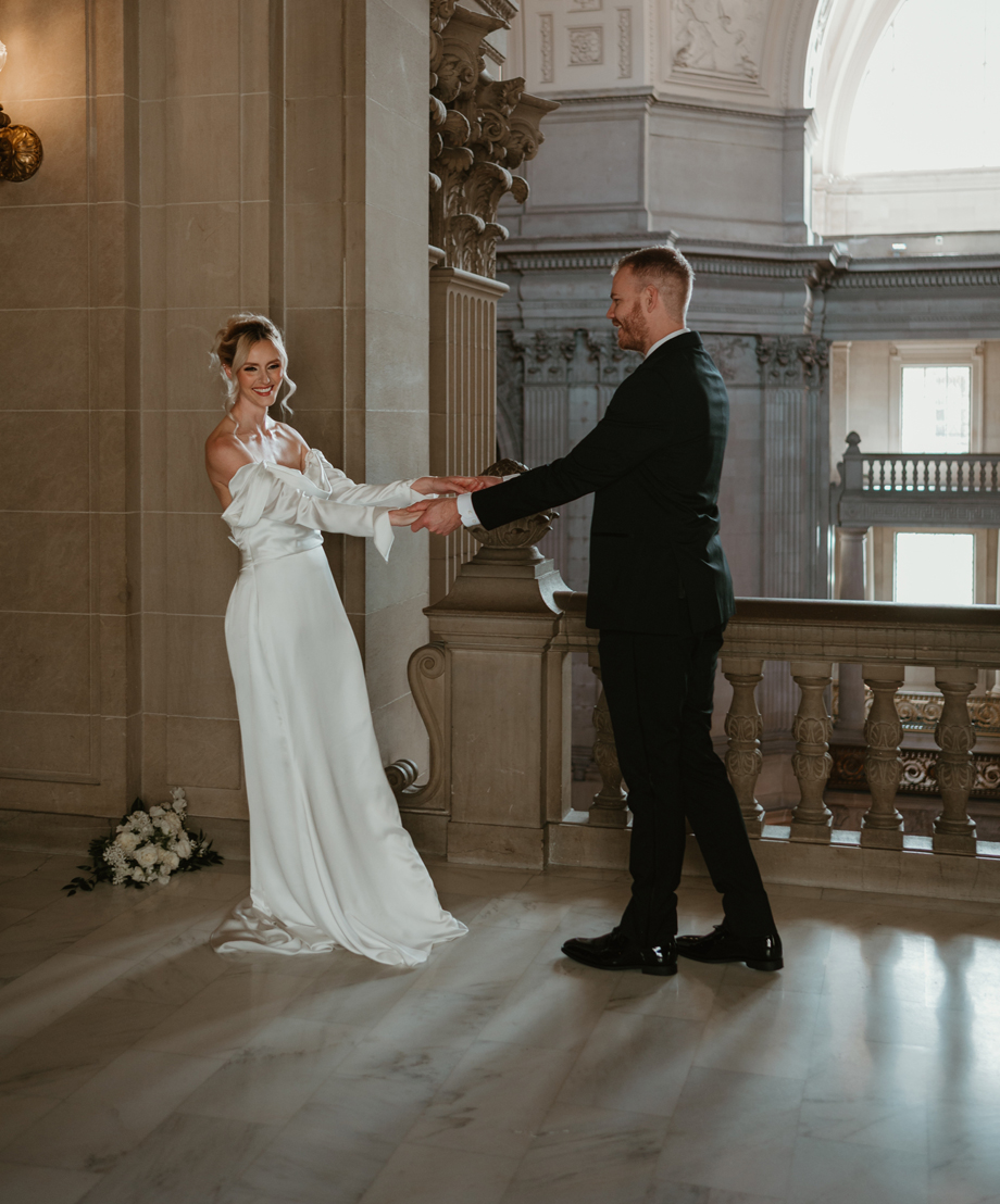 For today’s #StyledShootSunday we head to the Bay…San Francisco City Hall to be exact! When love meets the elegance of San Francisco City Hall, magic happens—and this styled elopement shoot proves it! With sunbeams streaming through those iconic grand windows and every corner of the building practically begging for a photo op, this styled shoot combines the perfect blend of romance, style, and intimate vibes in one seriously stunning setting. Let’s dive in!