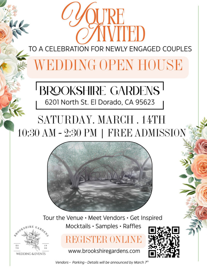 Join us at the open house at Brookshire Gardens—A Hidden Gem for Unforgettable Moments! On Saturday, March 14th from 10:30 AM to 2:30 PM, you’ll get to tour the grounds, meet talented local wedding vendors, and gather inspiration in a relaxed, welcoming atmosphere. Free to Attend.