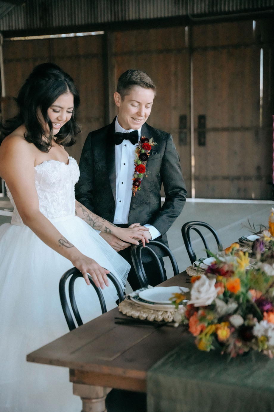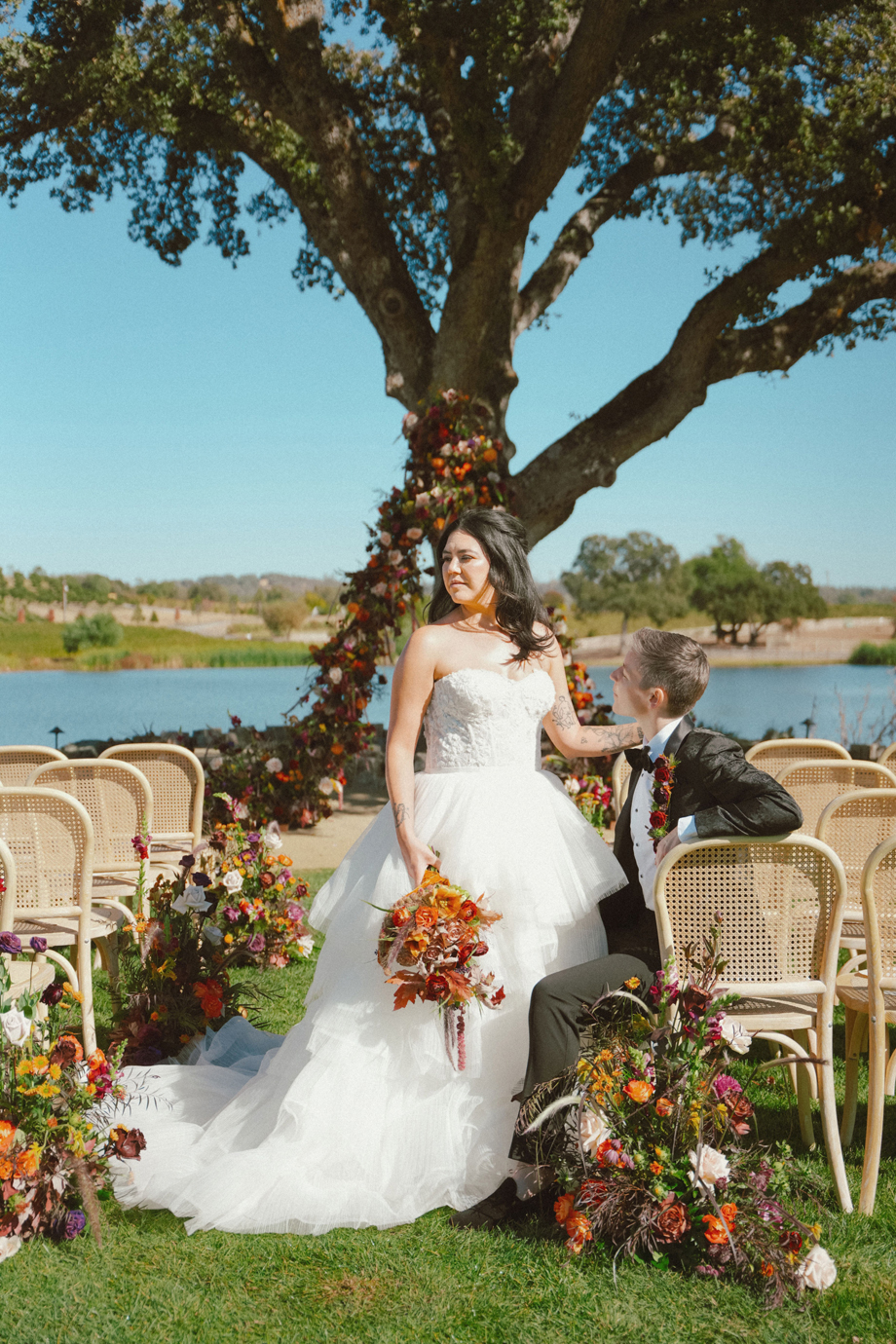 For today’s #StyledShootSunday, we “Fall in Love” with this timeless fall-inspired wedding styled shoot, a romantic ode to autumn’s soft embrace. Set against the breathtaking backdrop of Saureel Vineyards, our vendor team curated inspiration featuring warm tones, organic textures, and delicate florals intertwined with tender looks and fun moments with a couple clearly in love. And, as an added bonus, we get to experience the day’s perspective from two talented photographers!