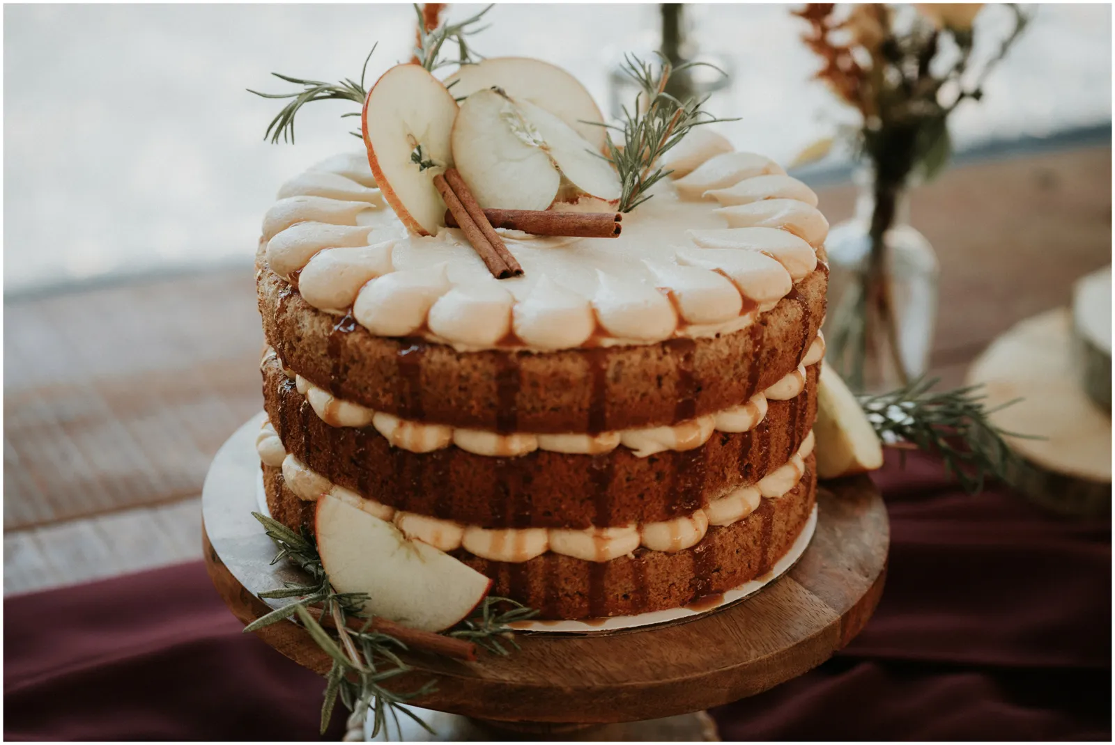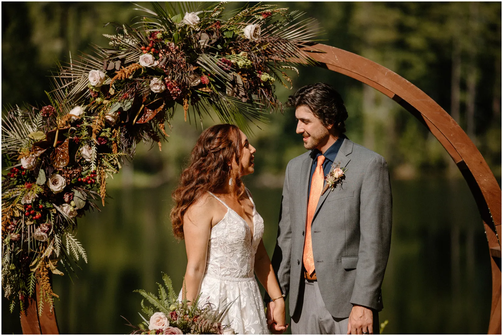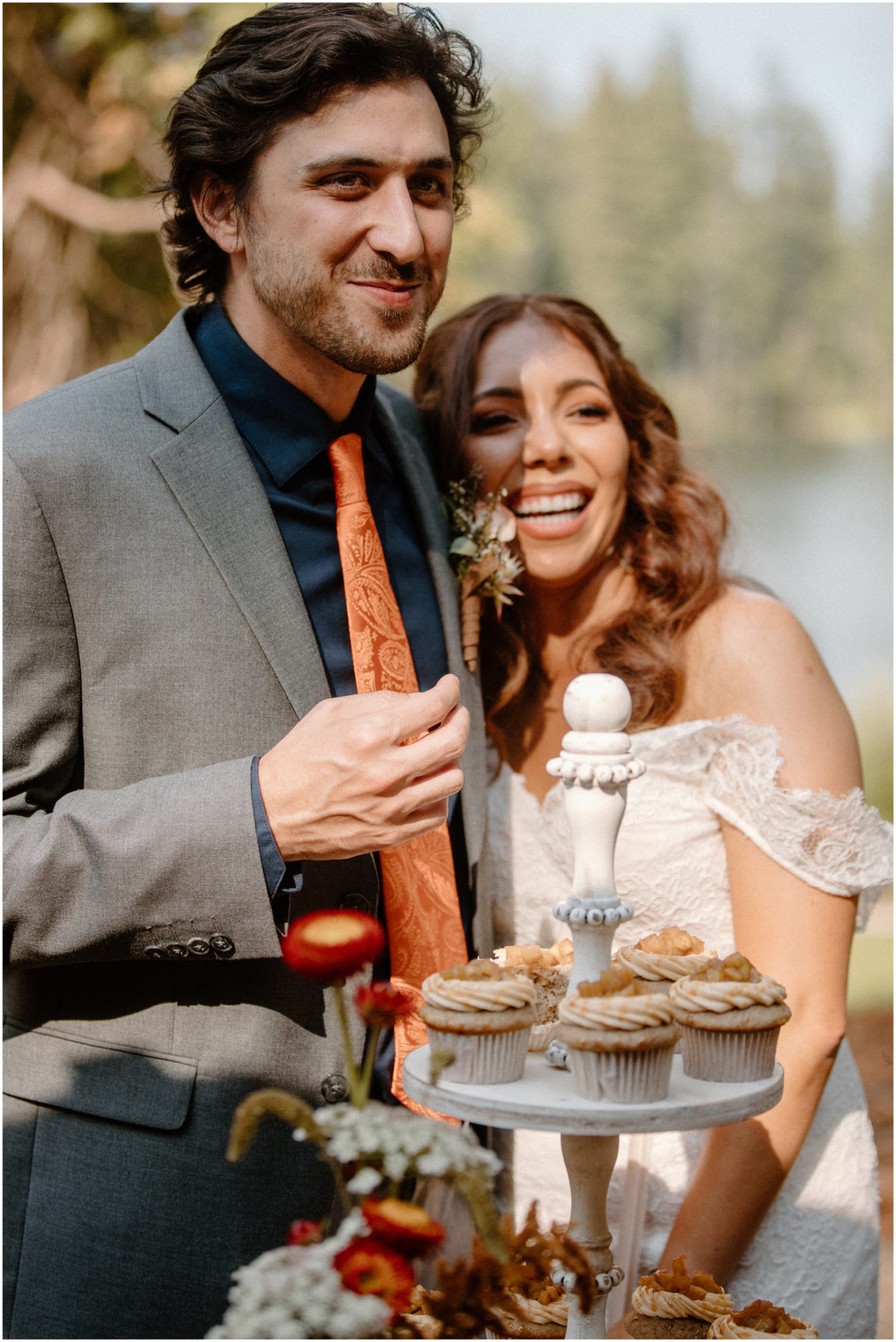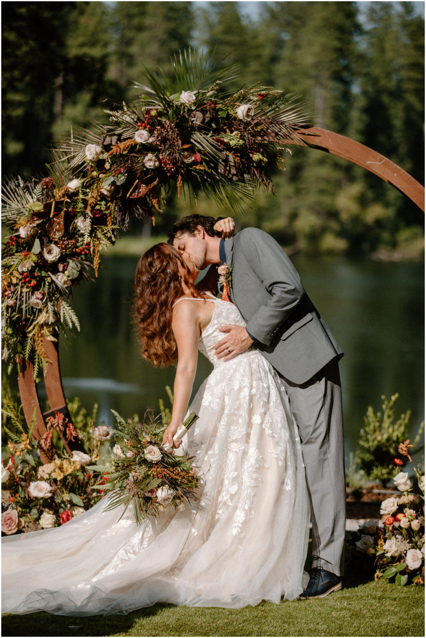 Inspired by the dreamy views of Blakely Lake and Apple Hill along with the natural grounds featuring gorgeous meadows and towering pines, our creative team designed a beautiful fall-inspired minimony and reception styled shoot to complement this natural landscape. Plus, we got to eat the famous apple doughnuts while we worked and played!”—photographer Katelyn Bradley on the inspiration behind this shoot