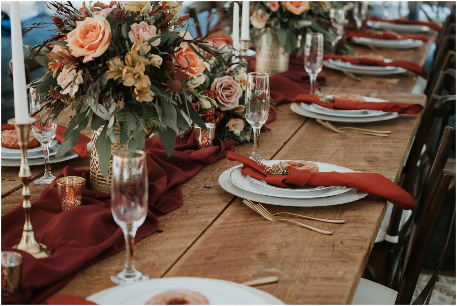 While the weather is more brisk (and chilly!) outside right now, today’s #StyledShootSunday has us dreaming of crisp fall weather and, with it, an adventure to Apple Hill! And you cannot head to Apple Hill without getting some coffee and donuts, and this gorgeous fall-inspired minimony wedding styled shoot fulfills that wish for us, too! Ok, now who’s craving coffee and donuts?! Sink your sweet tooth in to this tasty styled shoot! Enjoy!