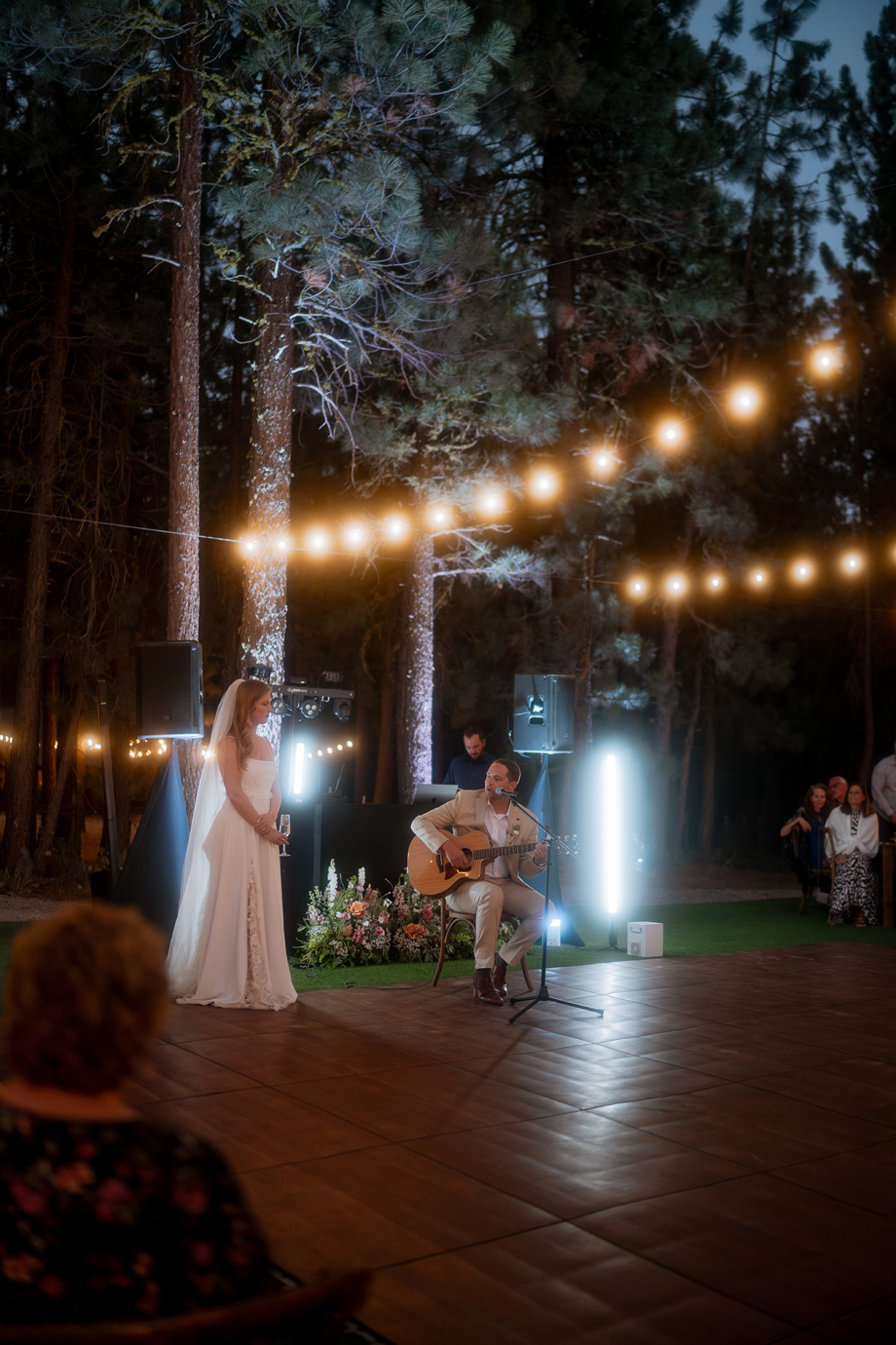 We love goose bump moments at weddings and at Kate + Eric’s, there was a biggie: “My husband played and sang the song “Don’t Give Up on Me” by Zach Bryan on his acoustic guitar during the reception. This song is very close to our hearts because if you listen to the lyrics, it speaks about “if my mom was here…” and how much his late mom would love his girlfriend. It hit so close to home because Eric wished that his beautiful, fun-loving mom, Lynn (who passed away when he was 11), could have met me, since he knows that she would’ve loved me.”