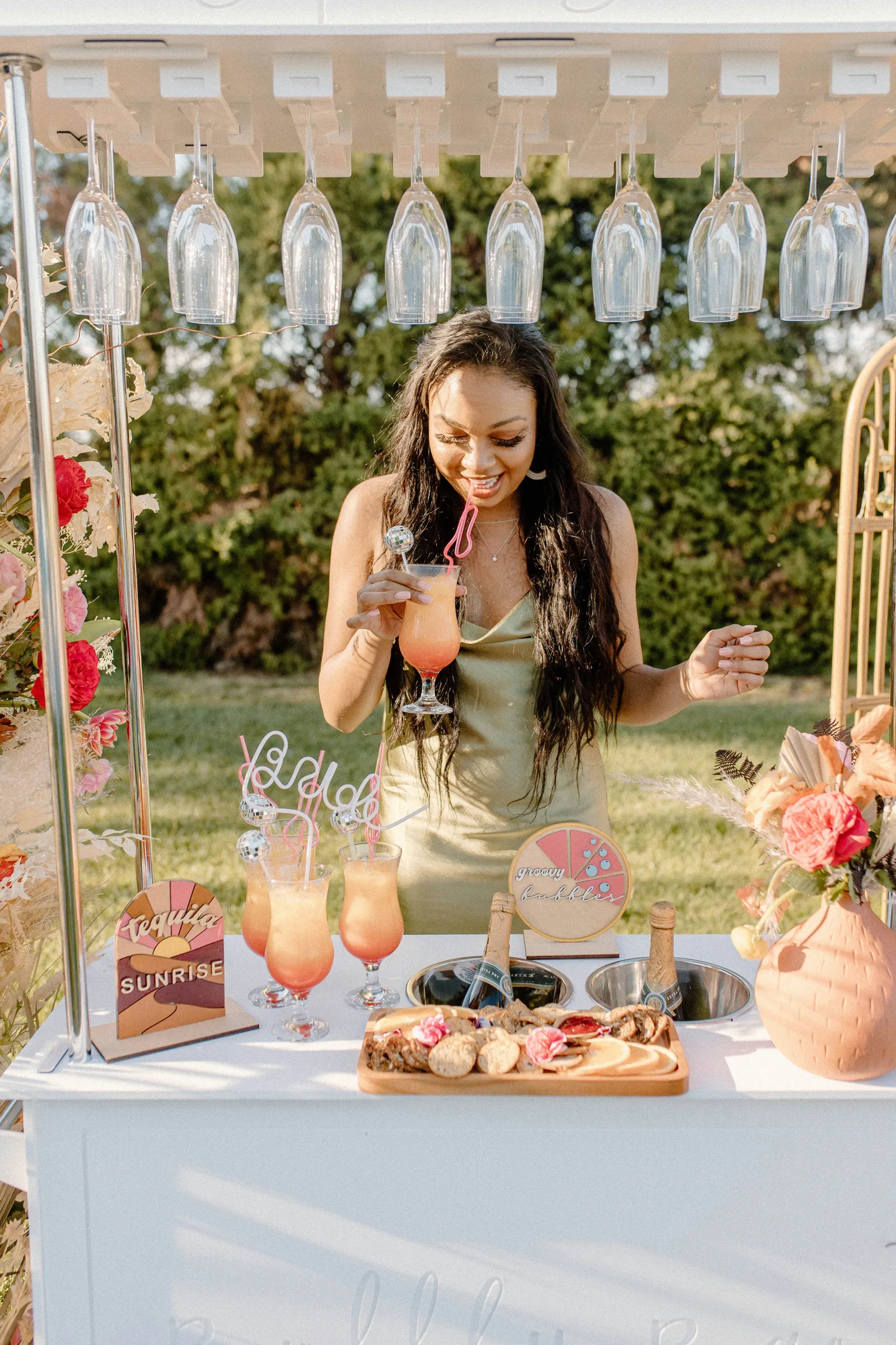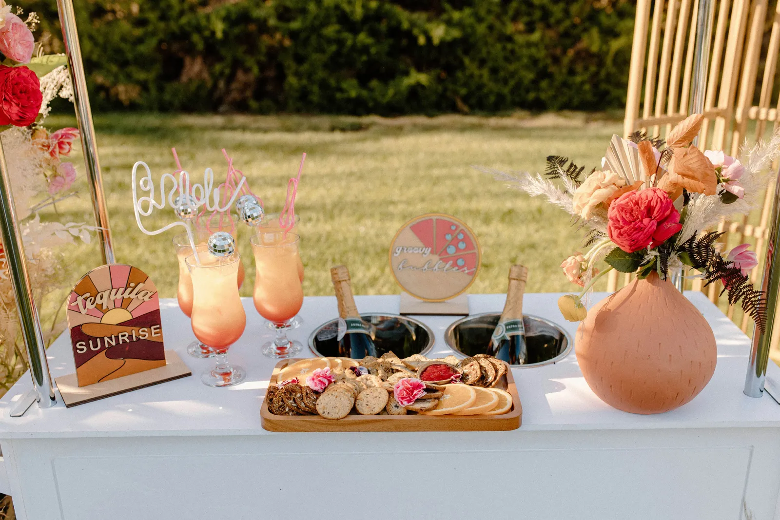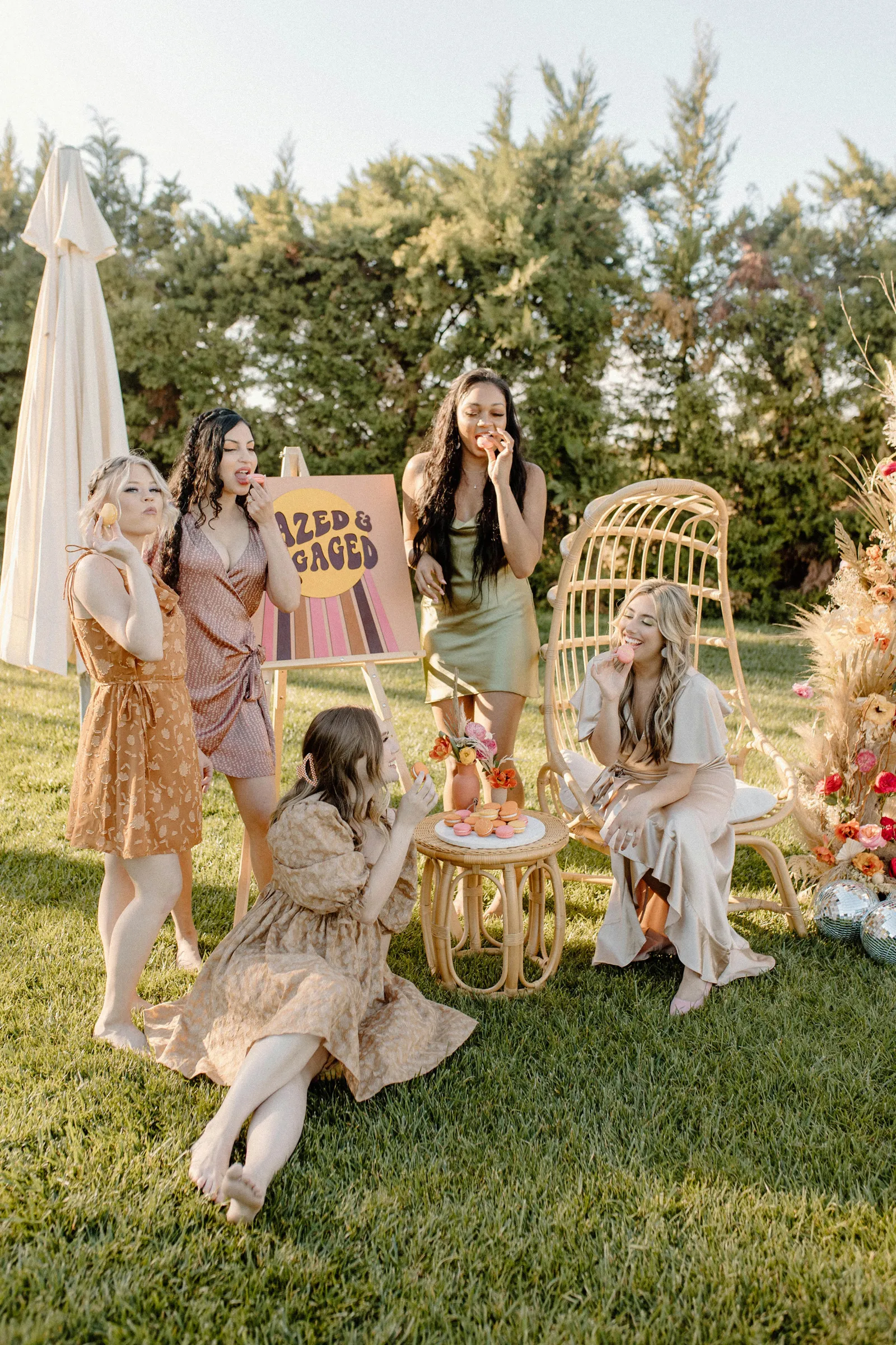 Happy Submitted Styled Shoot Sunday, everyone! Ladies and gents, today we have an absolutely fun and retro Bachelorette shoot full of bright colors, fun florals — courtesy of Flowers by Jordan Marie, delicious snacks (shout out to Rooftop Macarons and The Dancer’s Pantry!), and five stunning friends having so much fun, you can feel the joy in the photos below. Keep scrolling to check out this fun and beautiful shoot, coordinated by the talented Katelyn Bradley Photography. Happy Sunday, and happy reading!