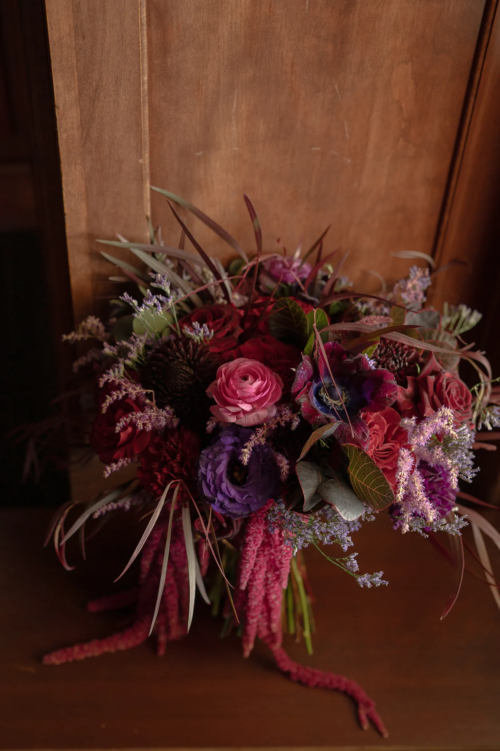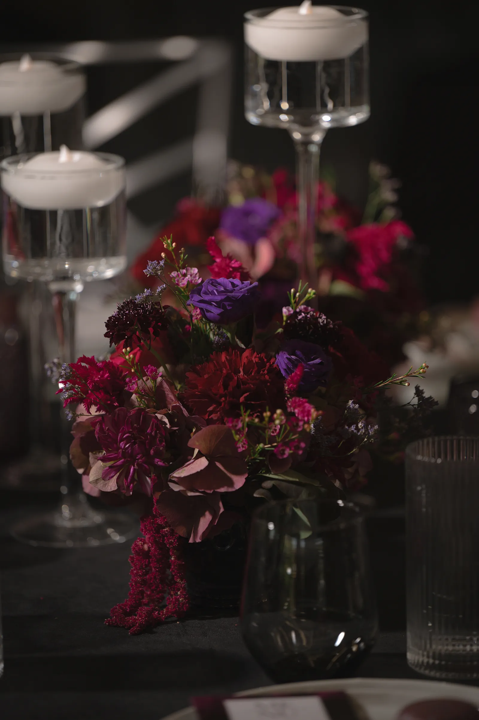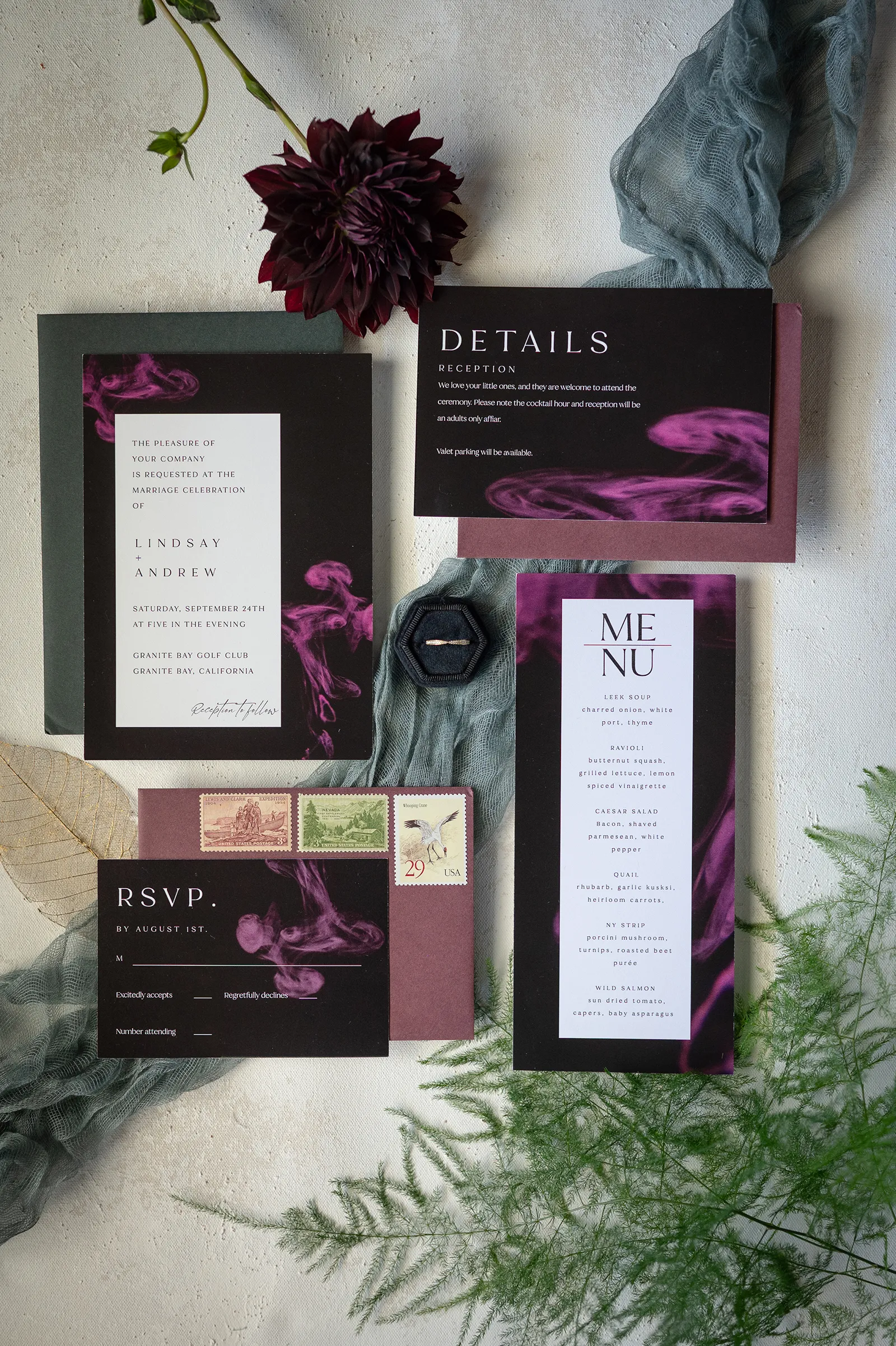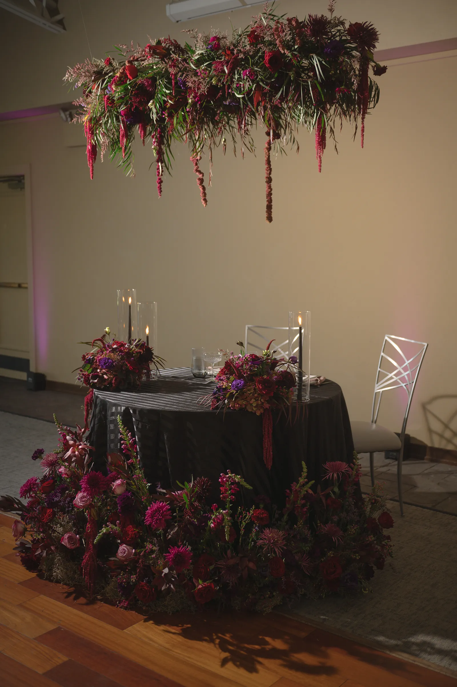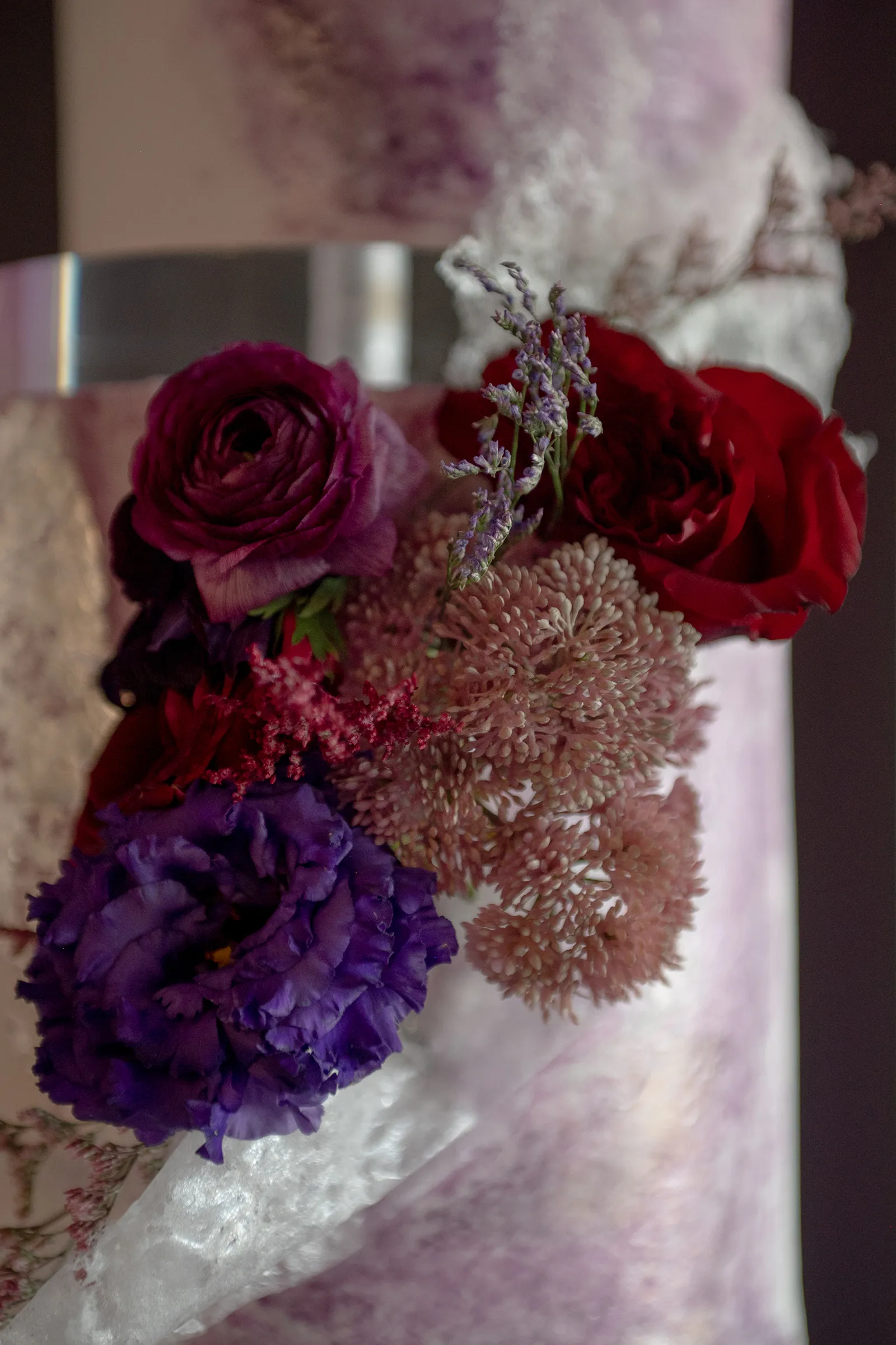 Moody, dark details can create a super romantic wedding. In the Mood for Love features lots of dark reds, pinks, and purples, a fog machine, and a stunning floral curtain…like STUN-NING. Check out all these pretty details from In the Mood for Love featured in the Winter/Spring 2024 issue. We hope it inspires you for your wedding!