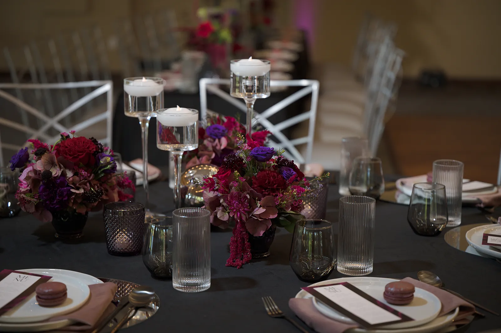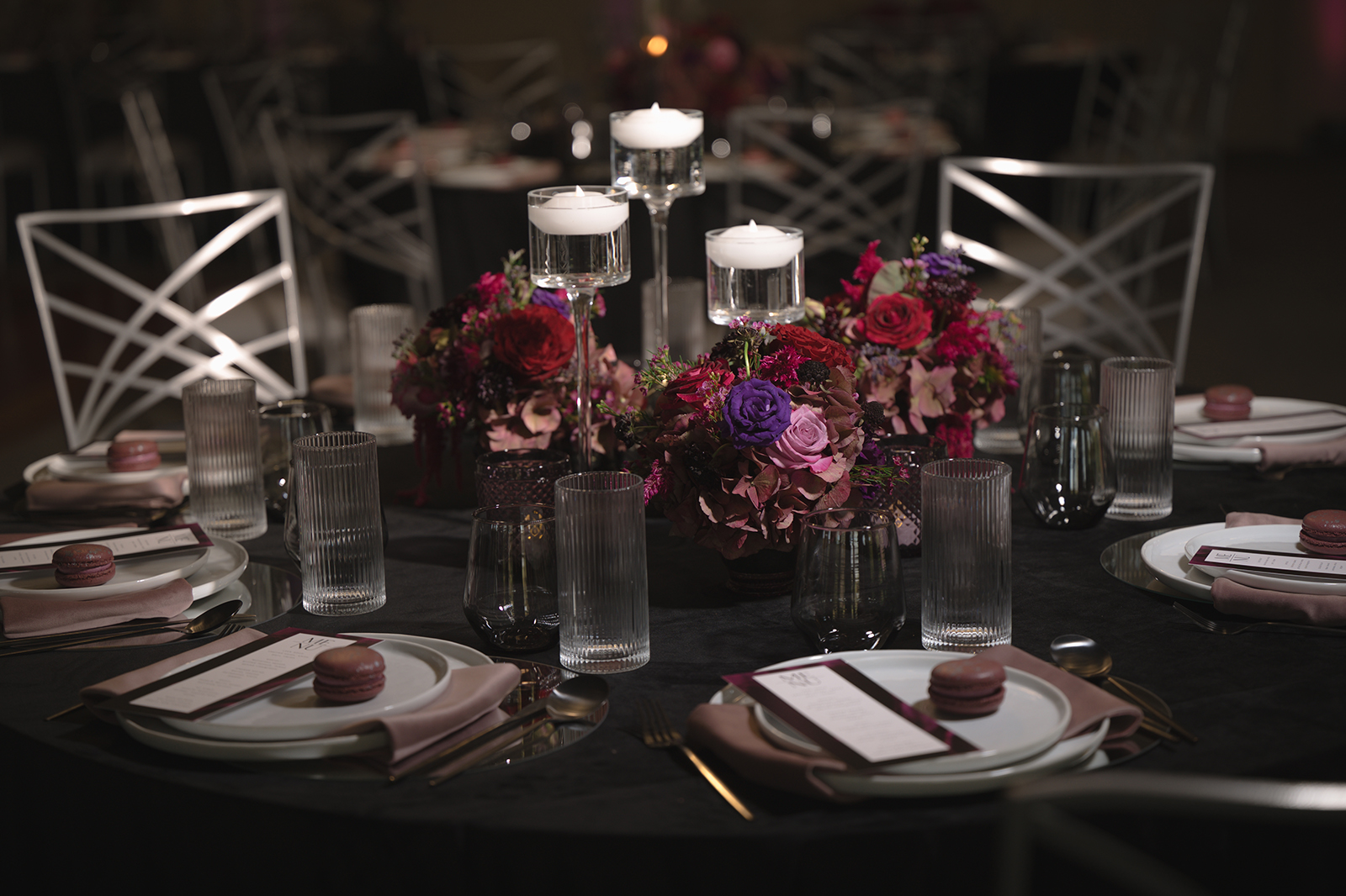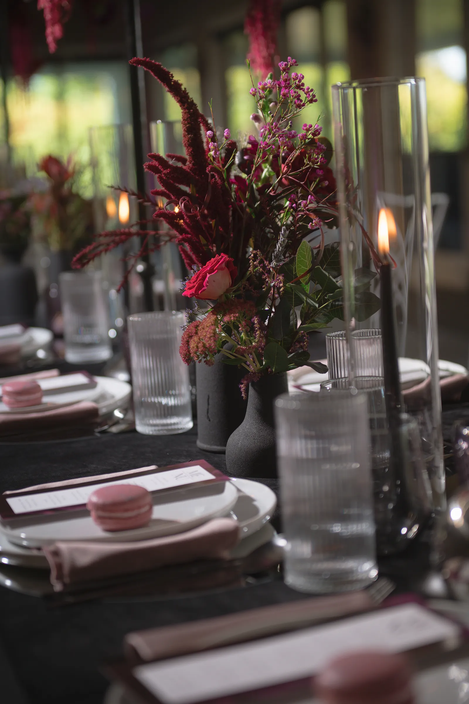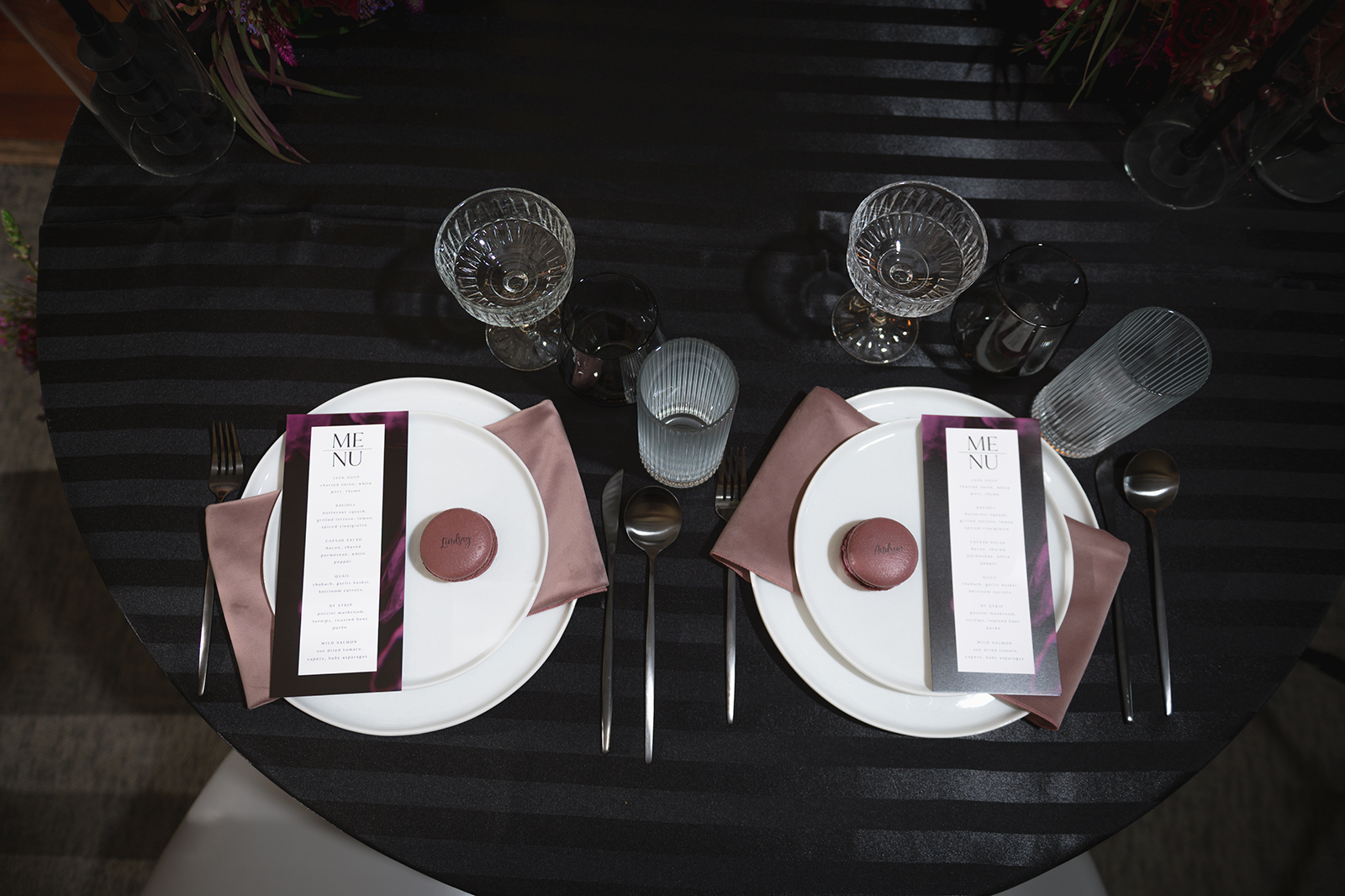 Moody, dark details can create a super romantic wedding. In the Mood for Love features lots of dark reds, pinks, and purples, a fog machine, and a stunning floral curtain…like STUN-NING. Check out all these pretty details from In the Mood for Love featured in the Winter/Spring 2024 issue. We hope it inspires you for your wedding!