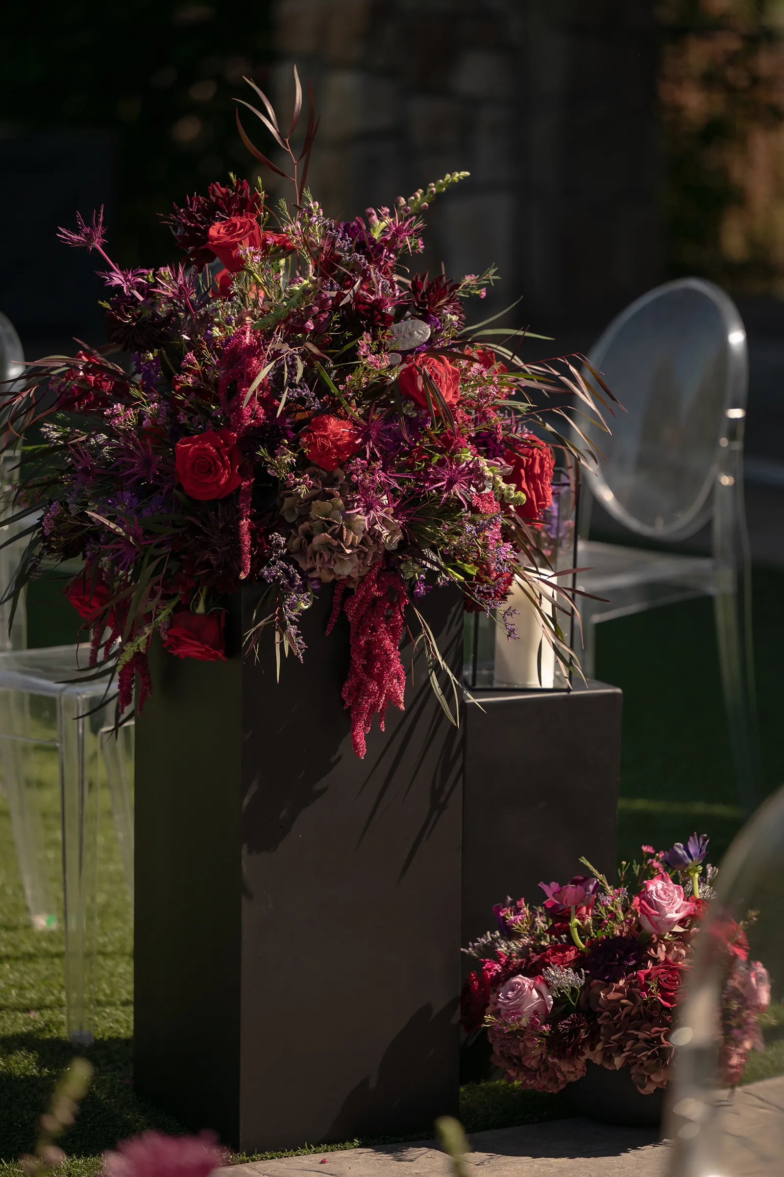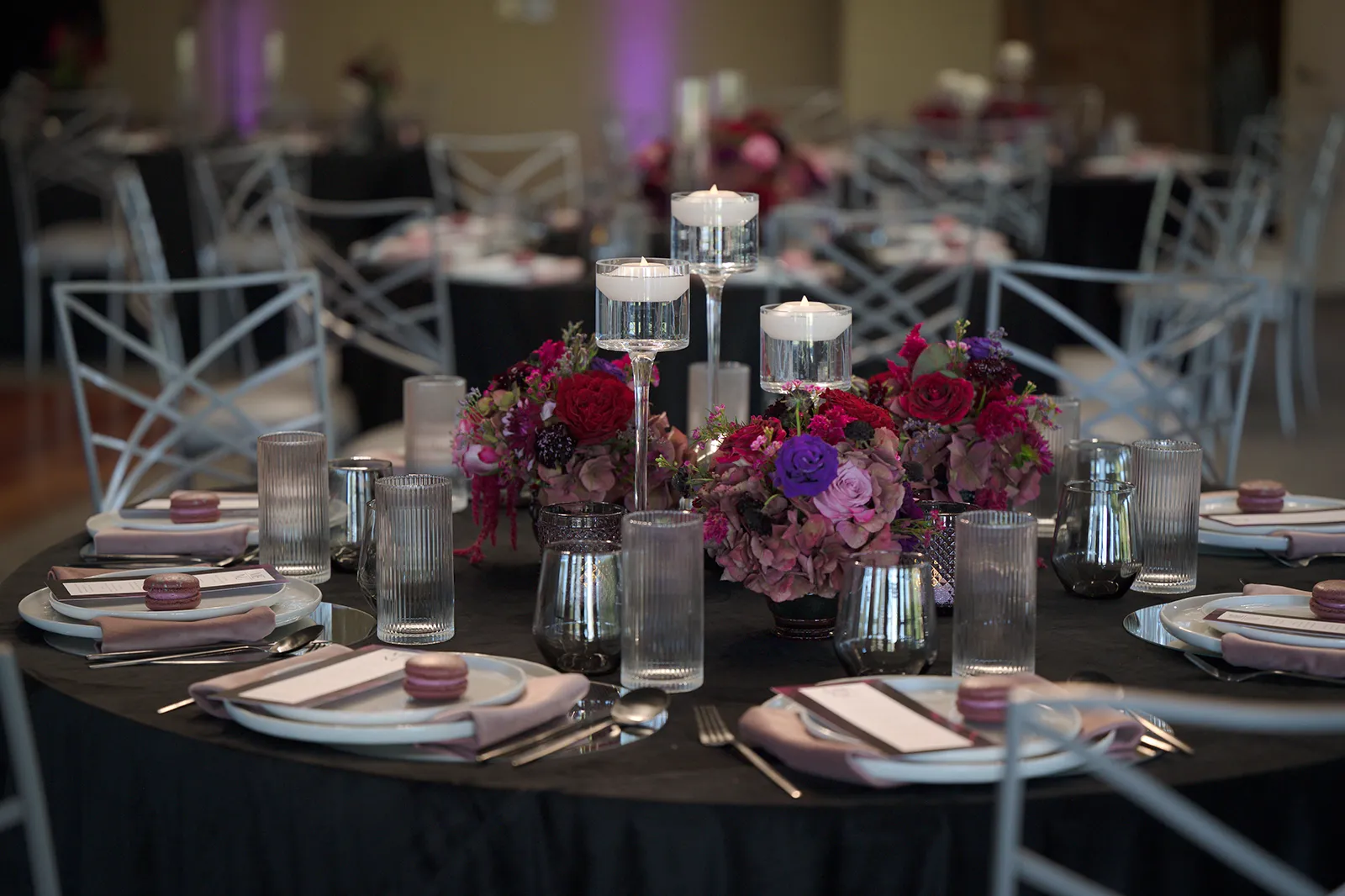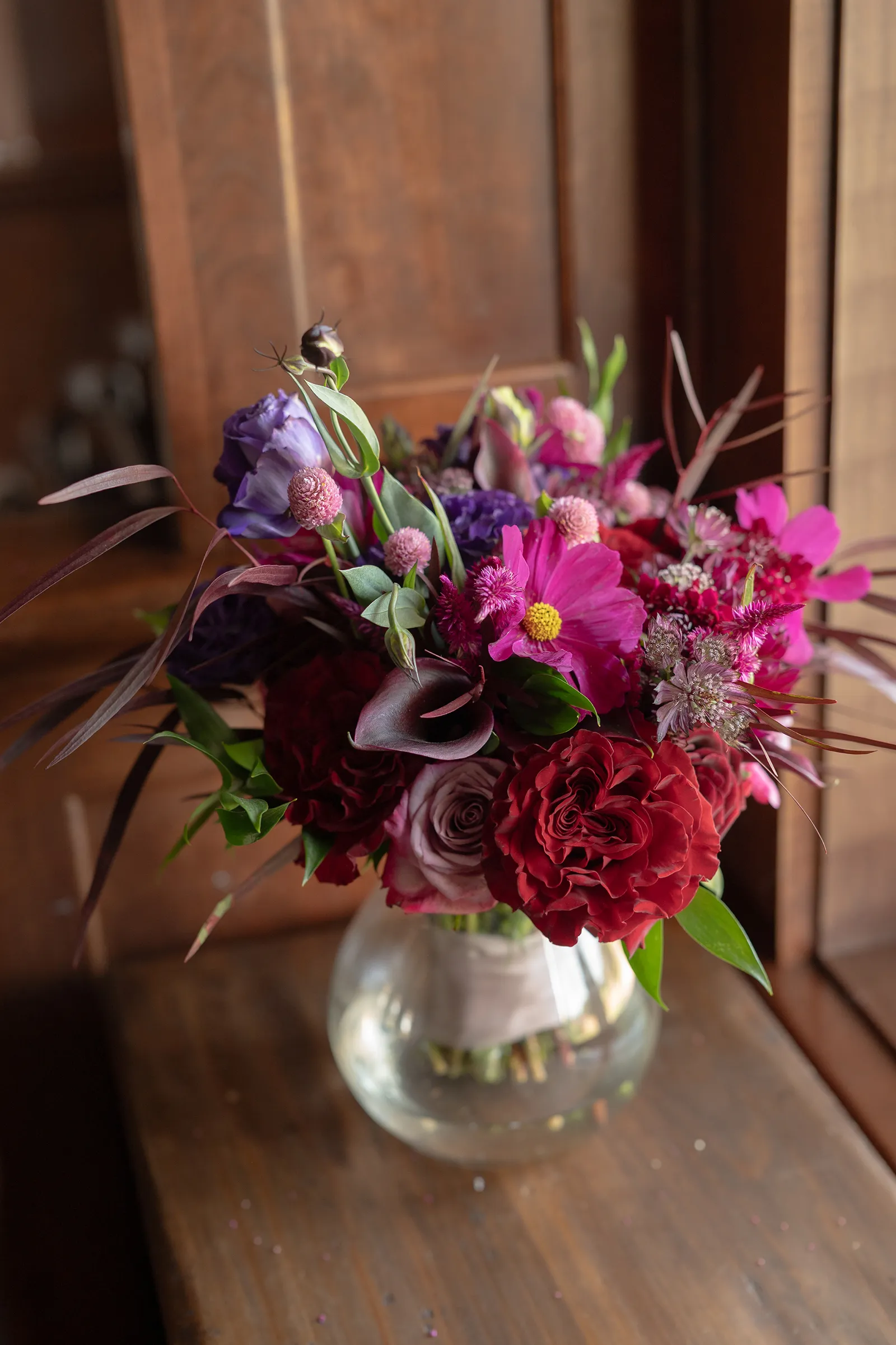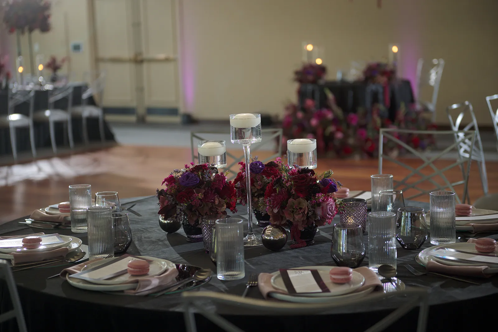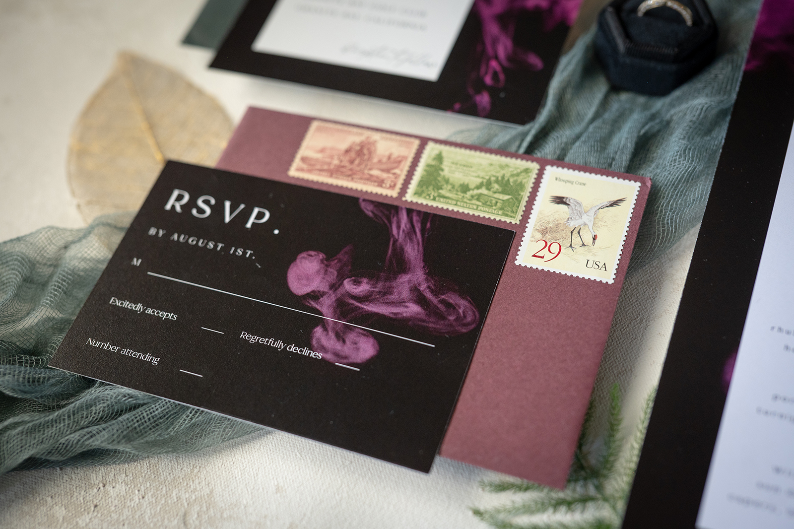 Moody, dark details can create a super romantic wedding. In the Mood for Love features lots of dark reds, pinks, and purples, a fog machine, and a stunning floral curtain…like STUN-NING. Check out all these pretty details from In the Mood for Love featured in the Winter/Spring 2024 issue. We hope it inspires you for your wedding!