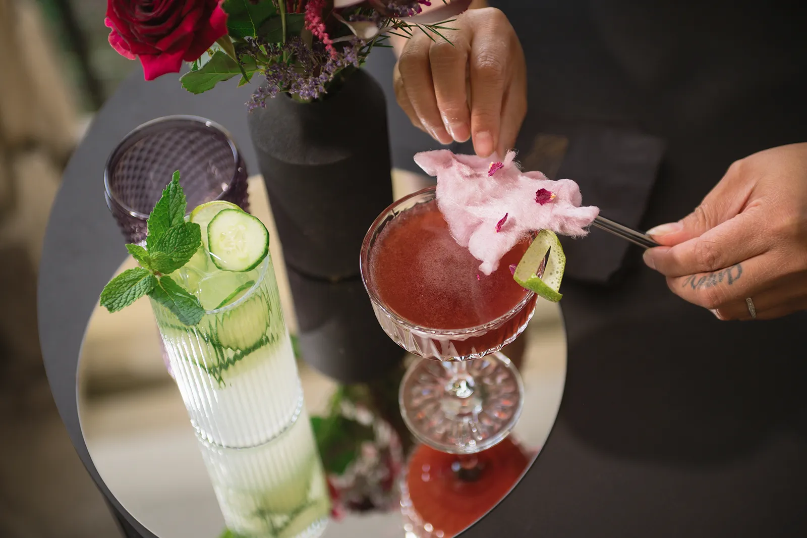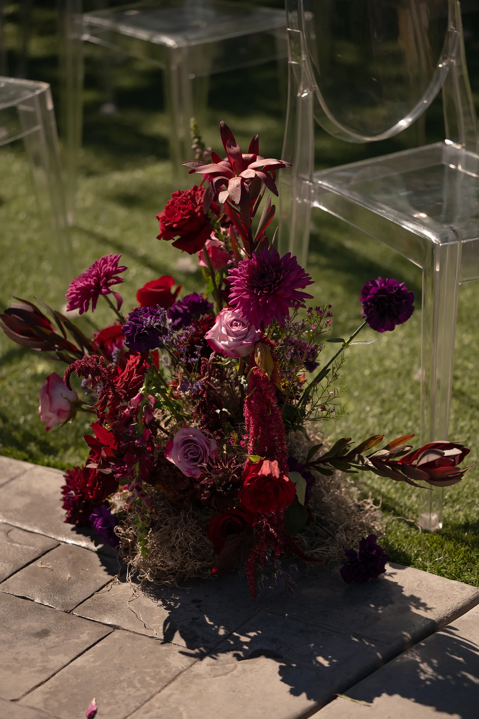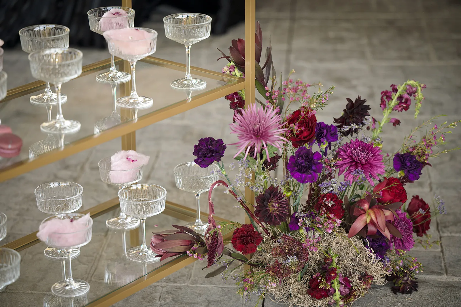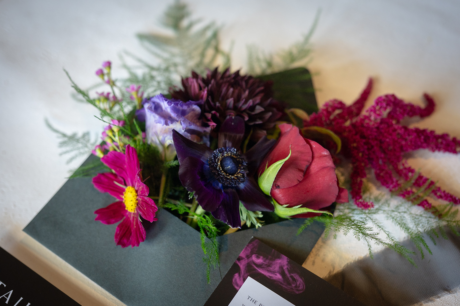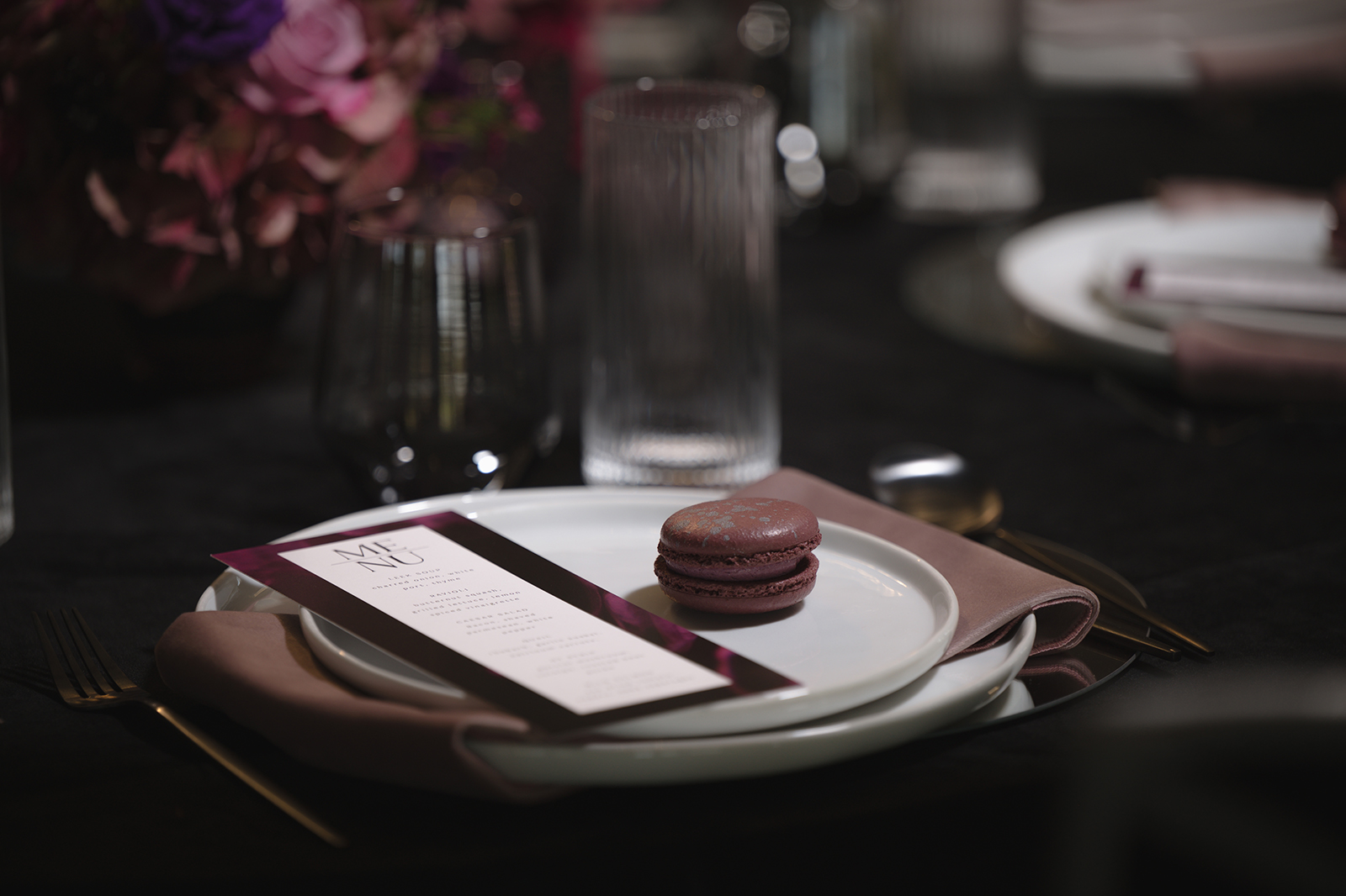 Moody, dark details can create a super romantic wedding. In the Mood for Love features lots of dark reds, pinks, and purples, a fog machine, and a stunning floral curtain…like STUN-NING. Check out all these pretty details from In the Mood for Love featured in the Winter/Spring 2024 issue. We hope it inspires you for your wedding!