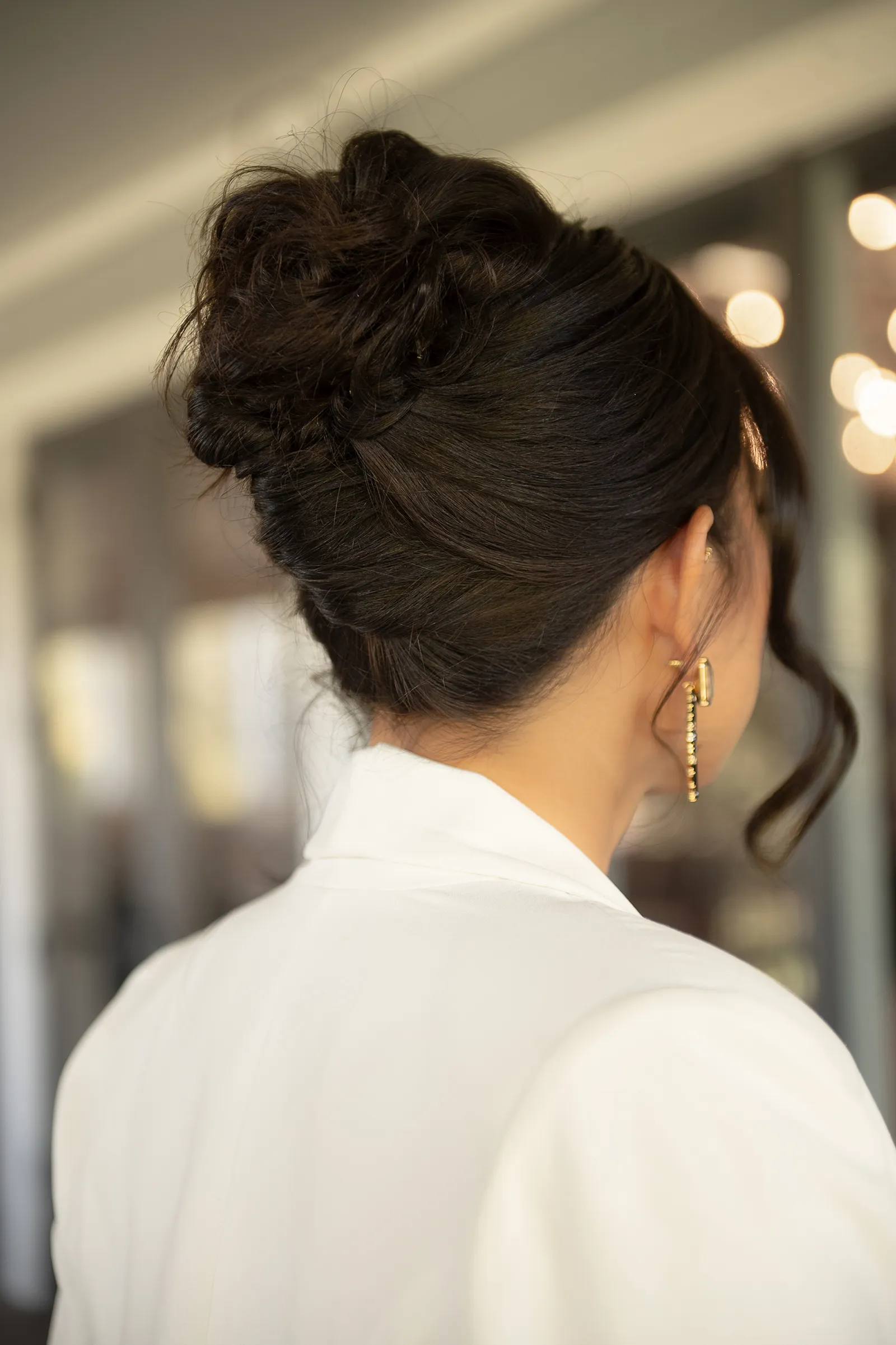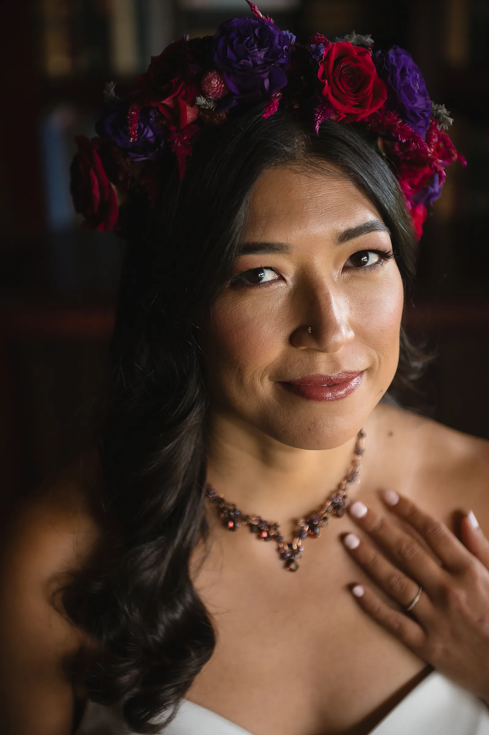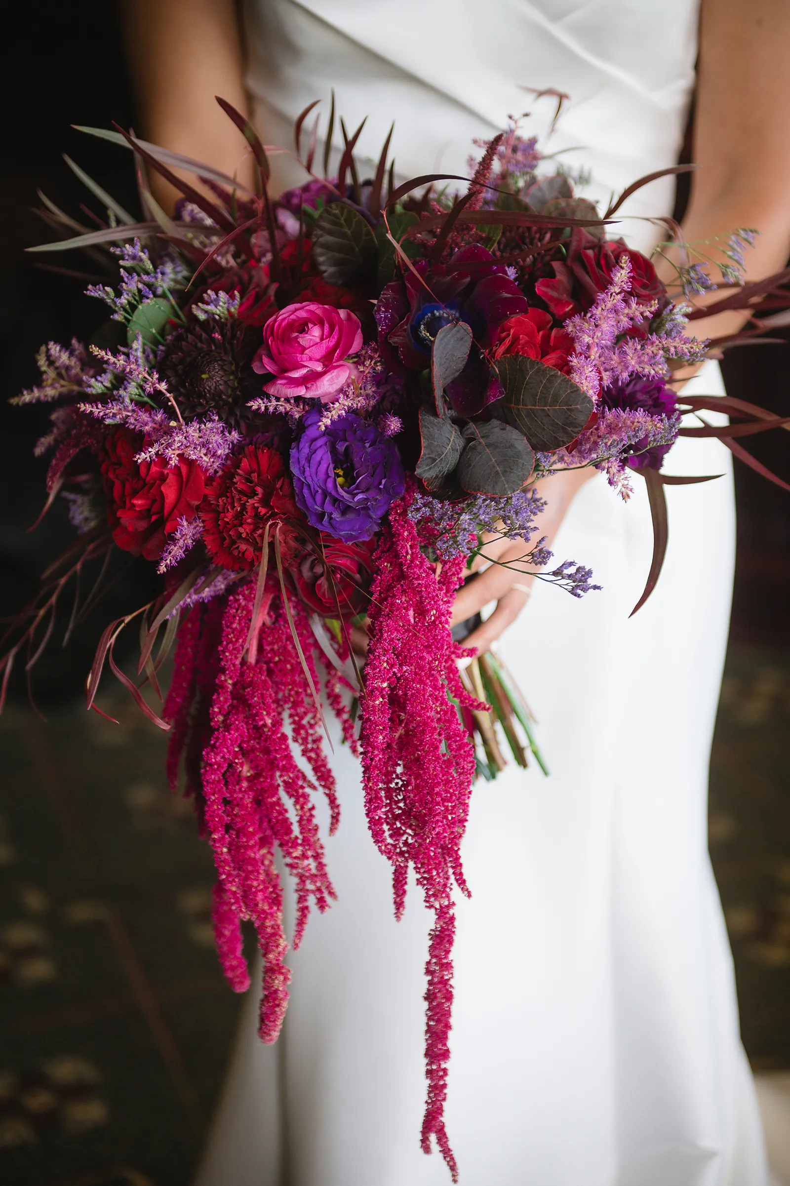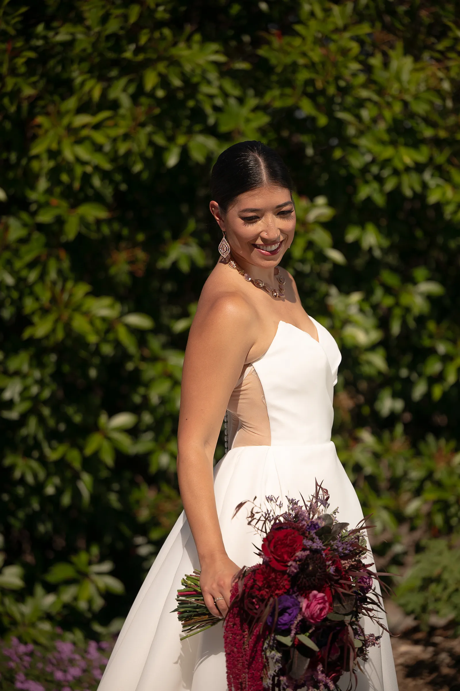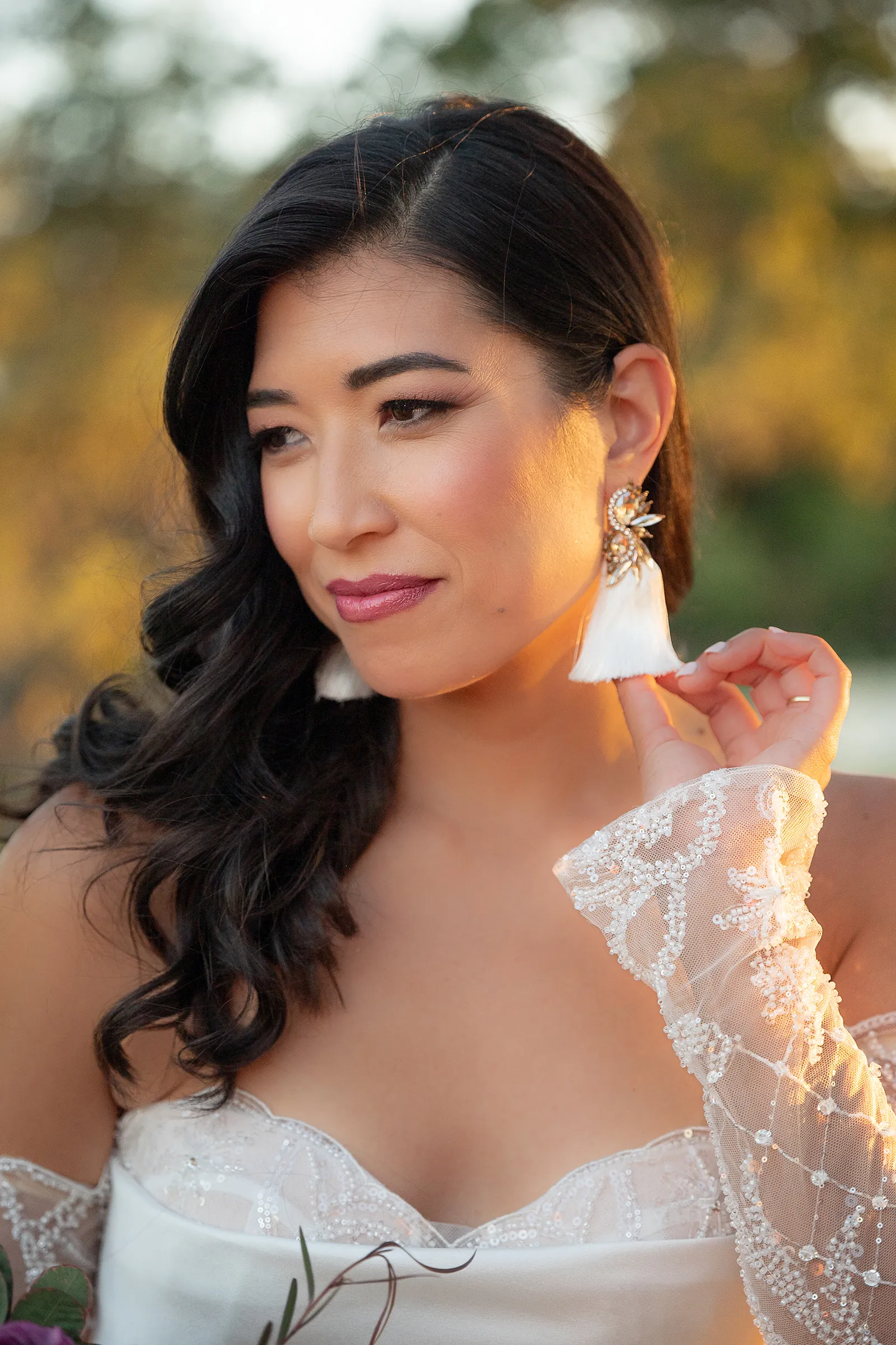 L: I loved the colors. They were much moodier than the colors we had at our wedding. So it was so much fun to have different colors, more intense makeup, different hairstyles, and different dresses than I would have chosen. The venue was gorgeous and can easily see how it would make a great place for weddings. The food set up and display of food/drink and of course the beyond gorgeous flowers were all amazing! I enjoy hosting parties/dinners and loved the set up for this wedding. I could see all of this being at a real wedding!