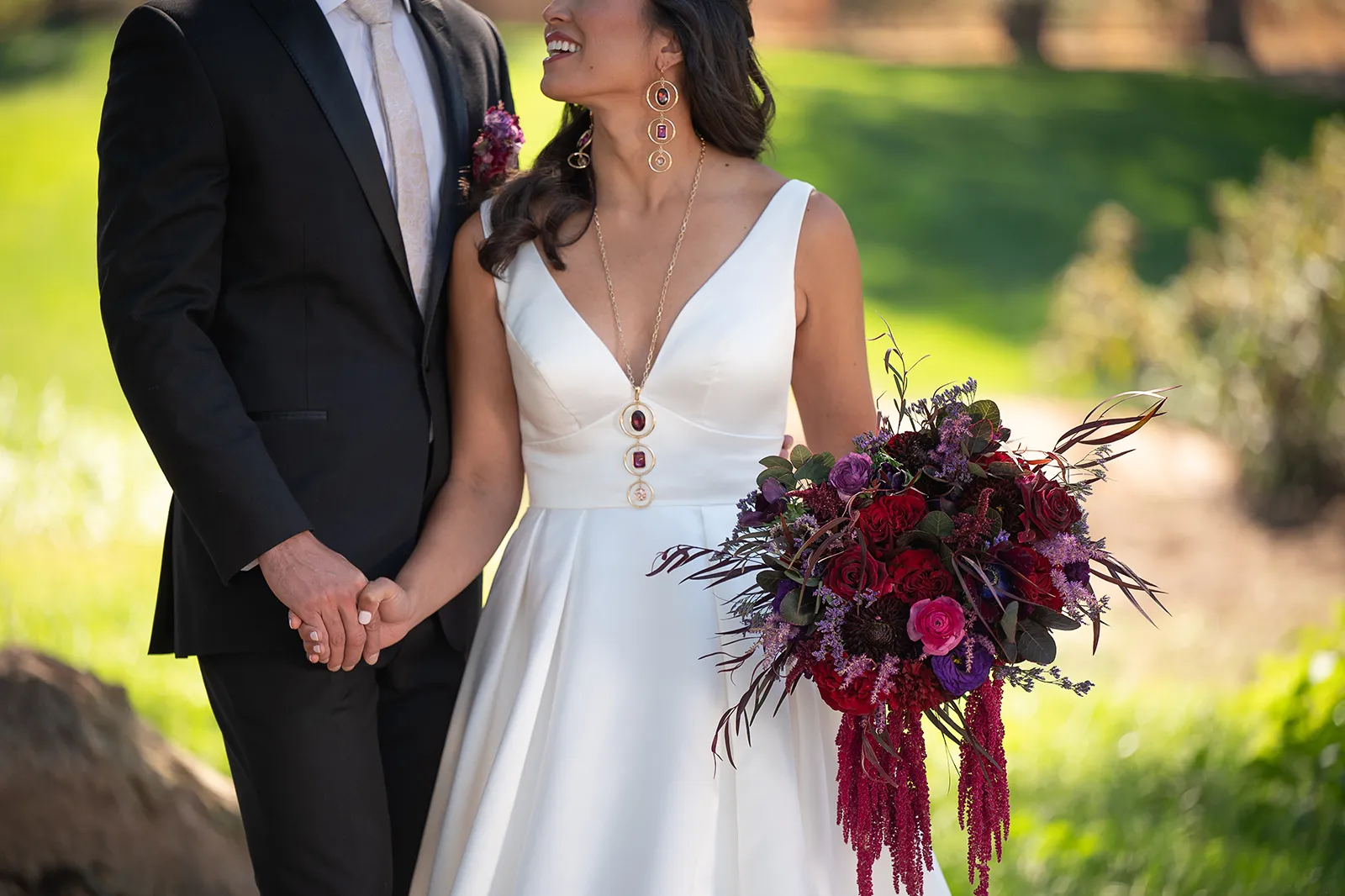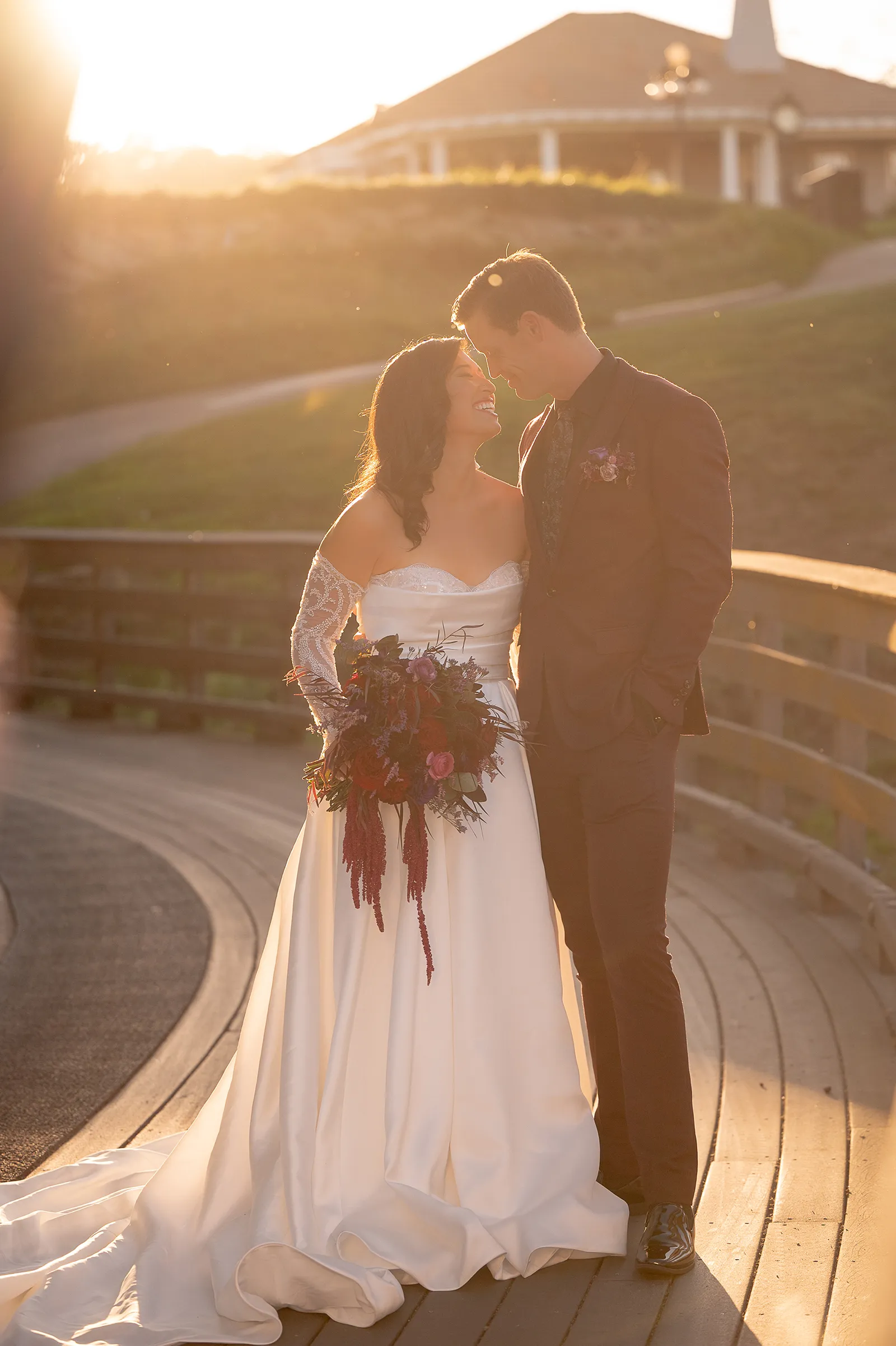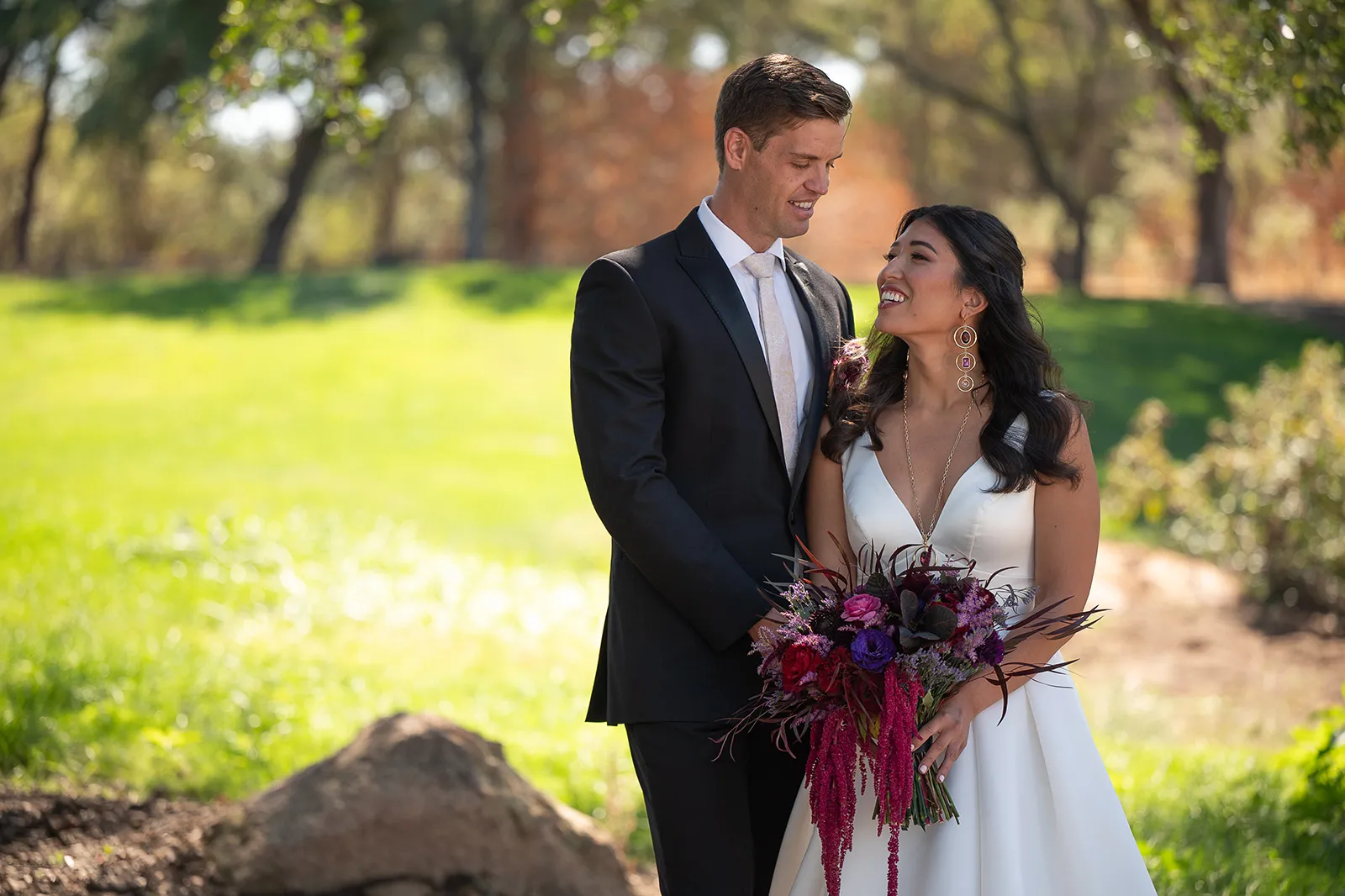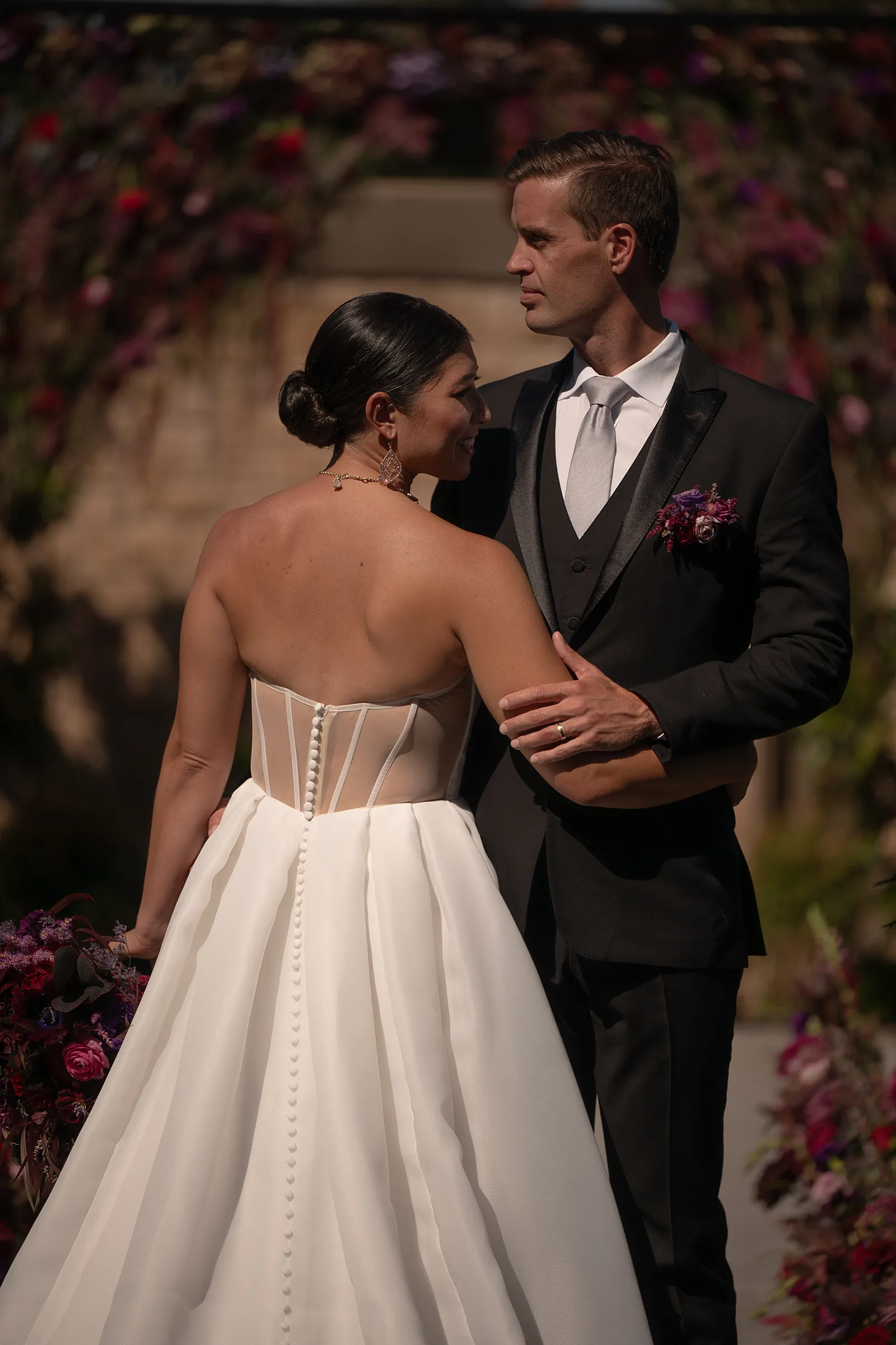 On Lindsay: Gown from De La Rosa’s Bridal & Tuxedo; Jewelry from Macy’s; Floral Crown by Strelitzia Flower Company. On Andrew: Suit, Shirt and Shoes from Tuxedo Den; Tie from Macy’s