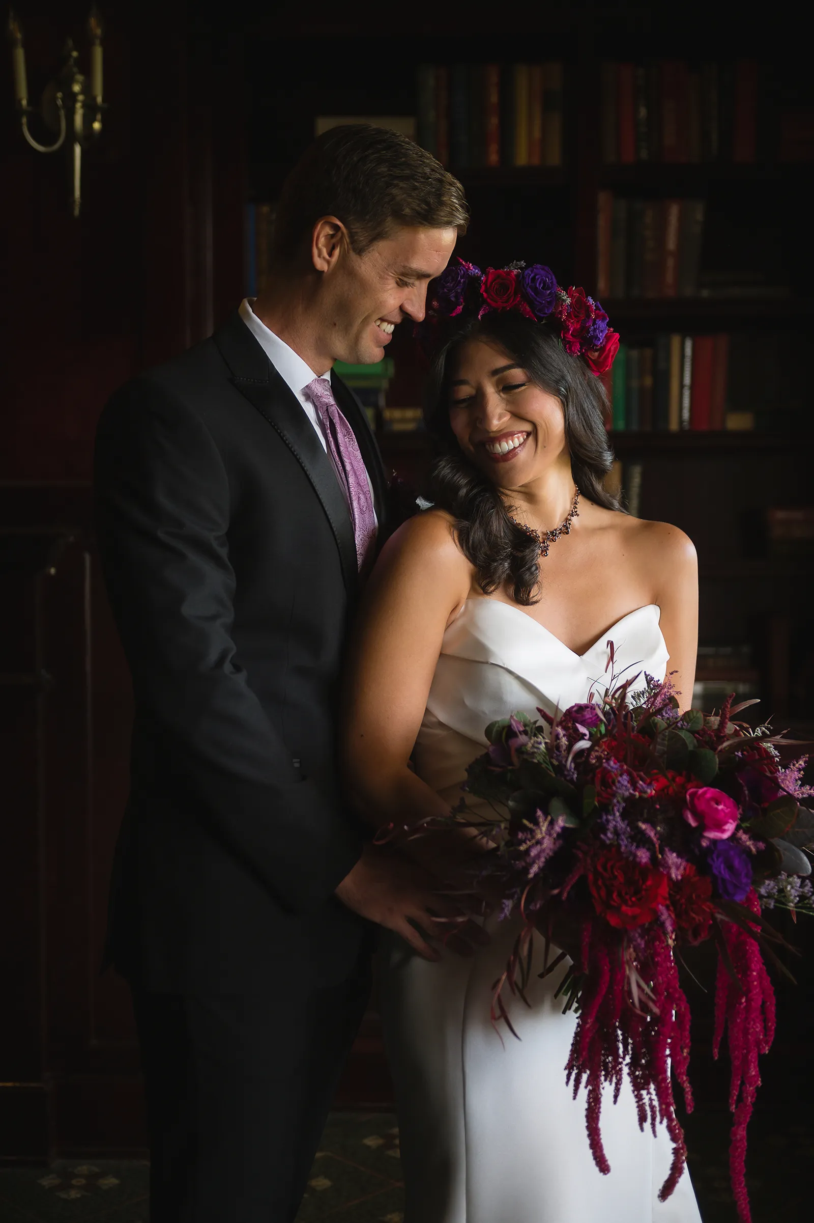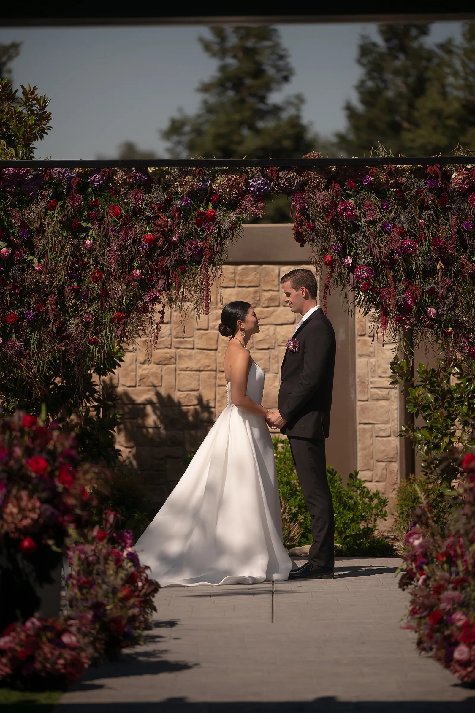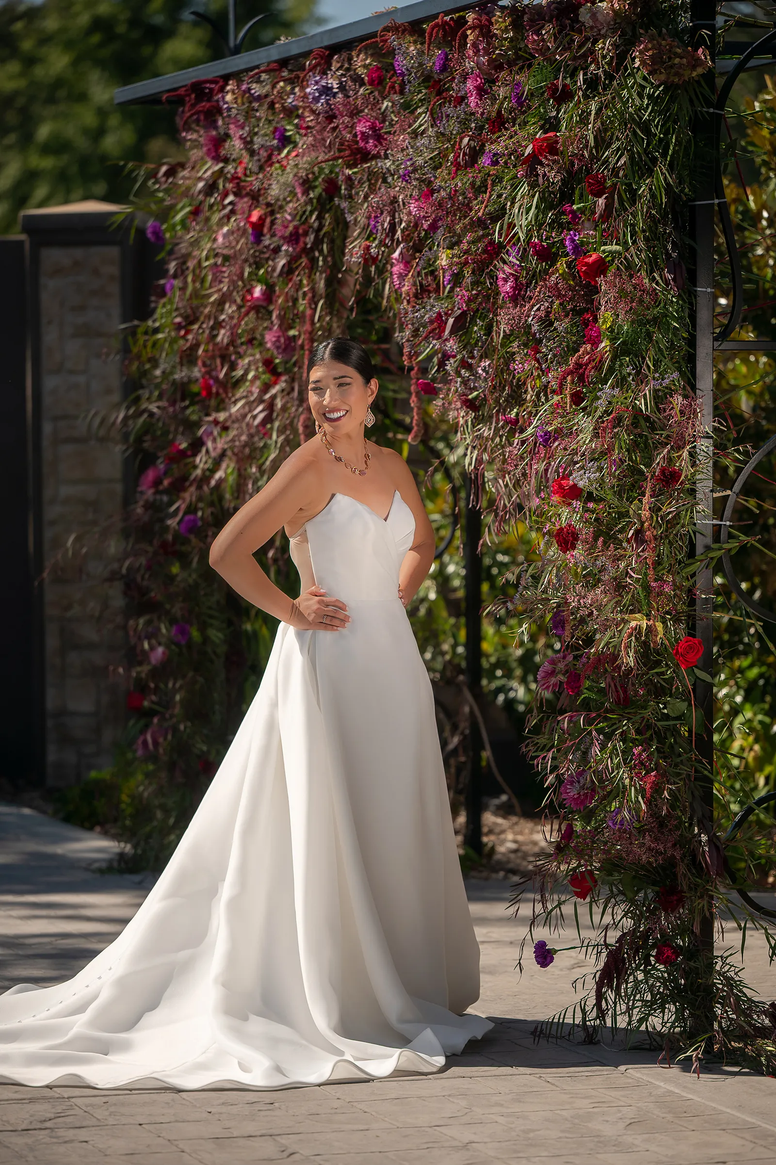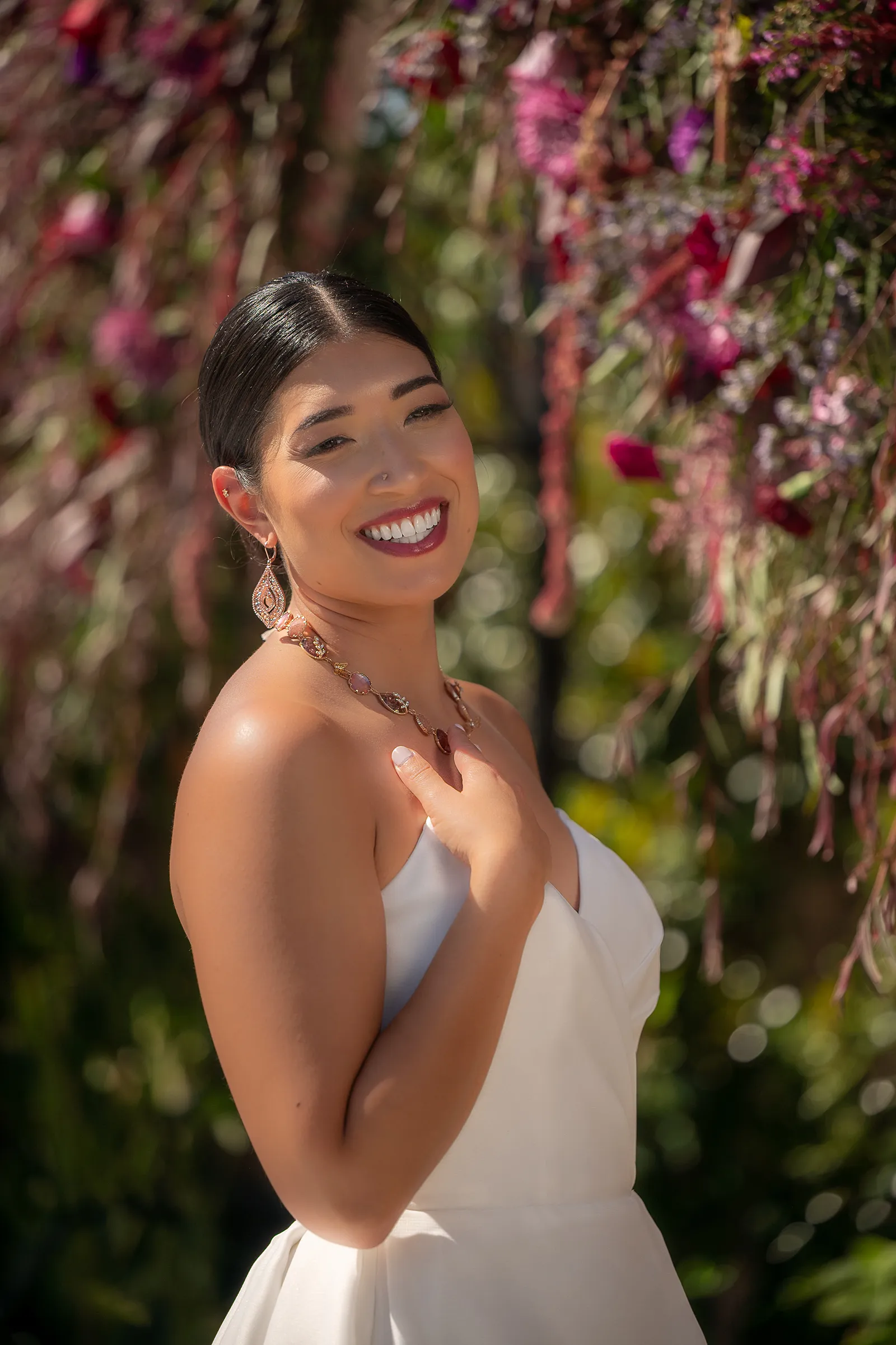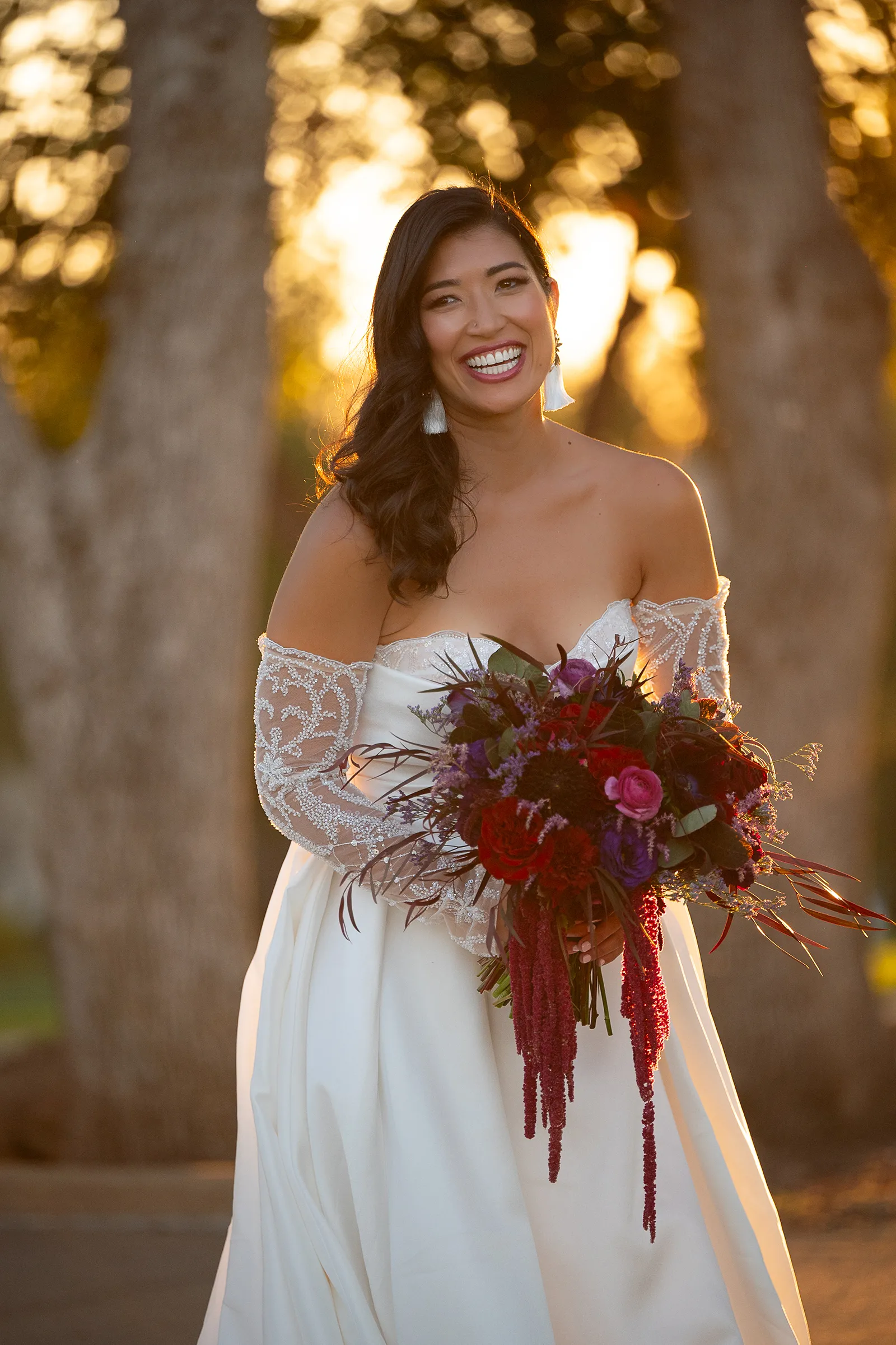 On Lindsay: Gown from De La Rosa’s Bridal & Tuxedo; Jewelry from Macy’s; Floral Crown by Strelitzia Flower Company. On Andrew: Suit, Shirt and Shoes from Tuxedo Den; Tie from Macy’s