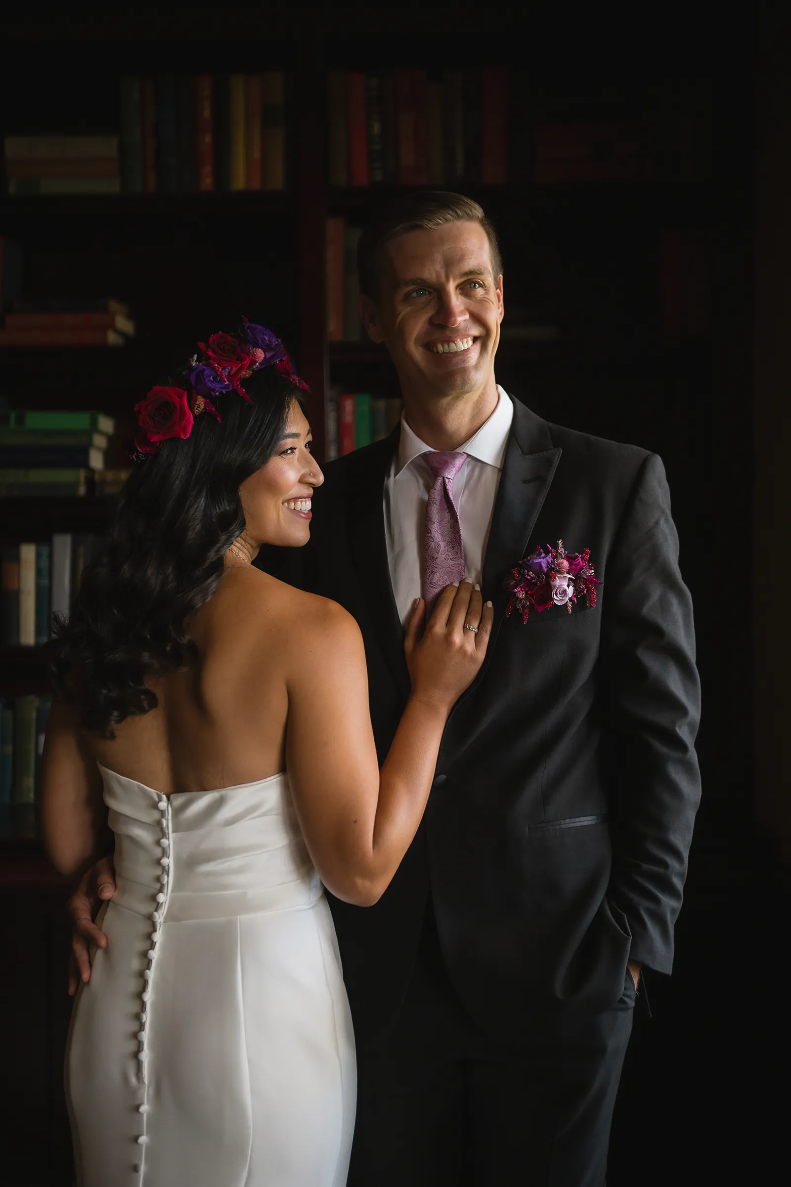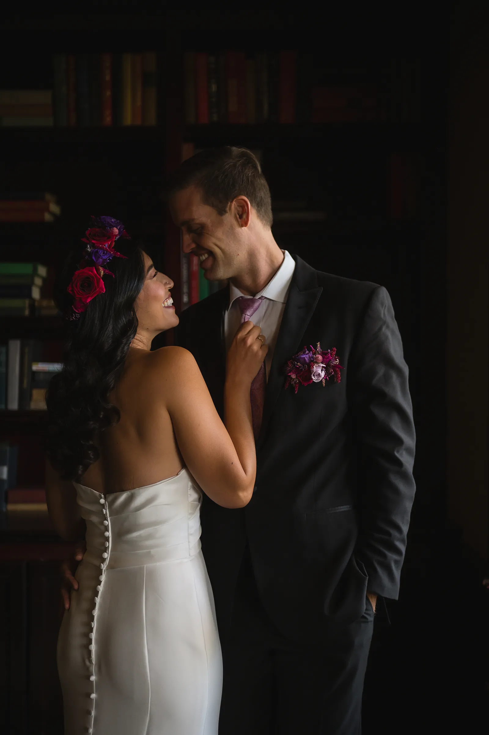Lindsay and Andrew were so much fun to work with during our In the Mood for Love styled shoot. They brought tons of fun energy that perfectly balanced the moody theme of the shoot. Scroll down to see them in all their looks and read about their modeling experience and love story. Did you know they met overseas?! Yeah, you’ll want to read about their proposal…ah, sweet, sweet romance.