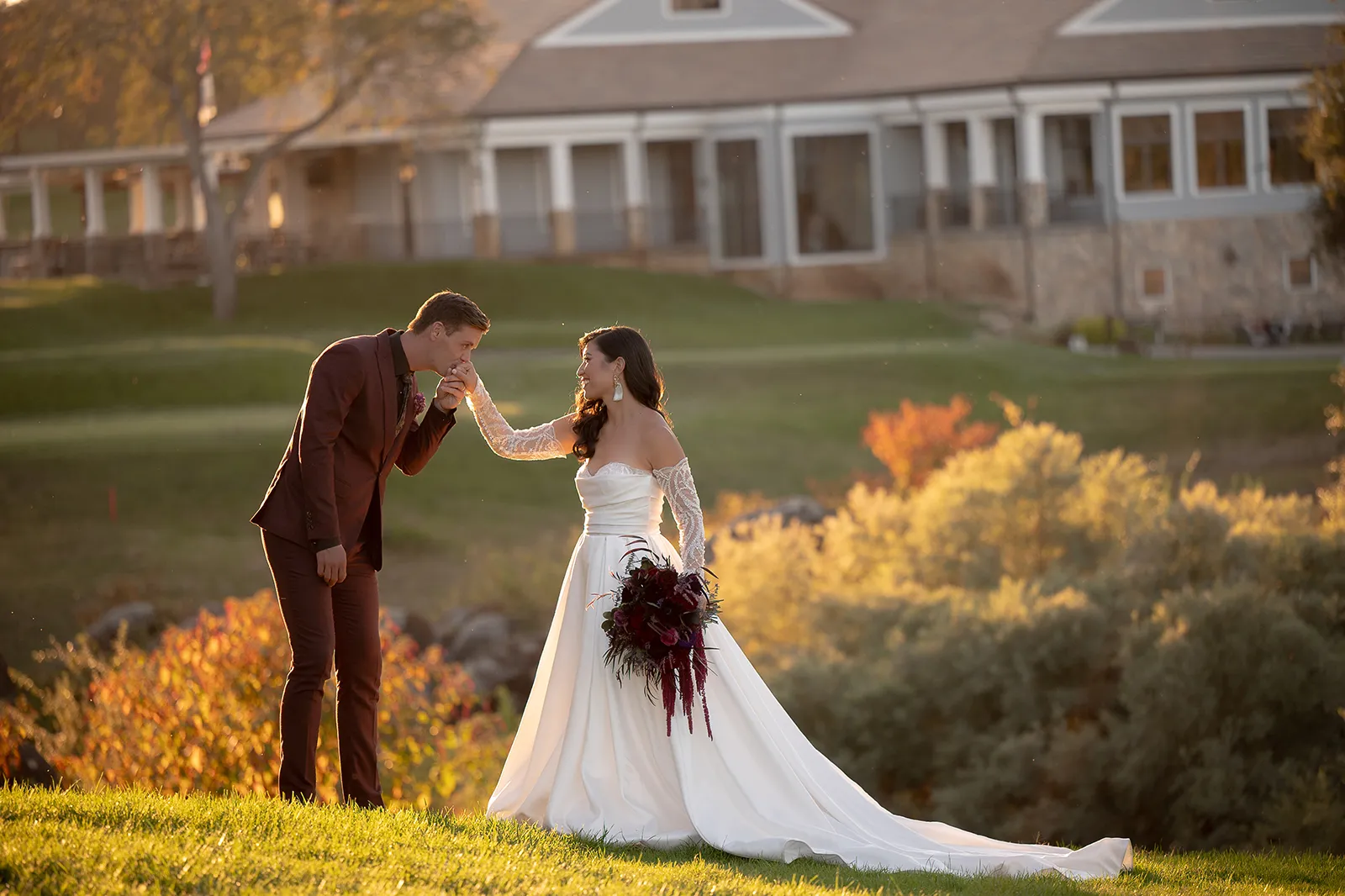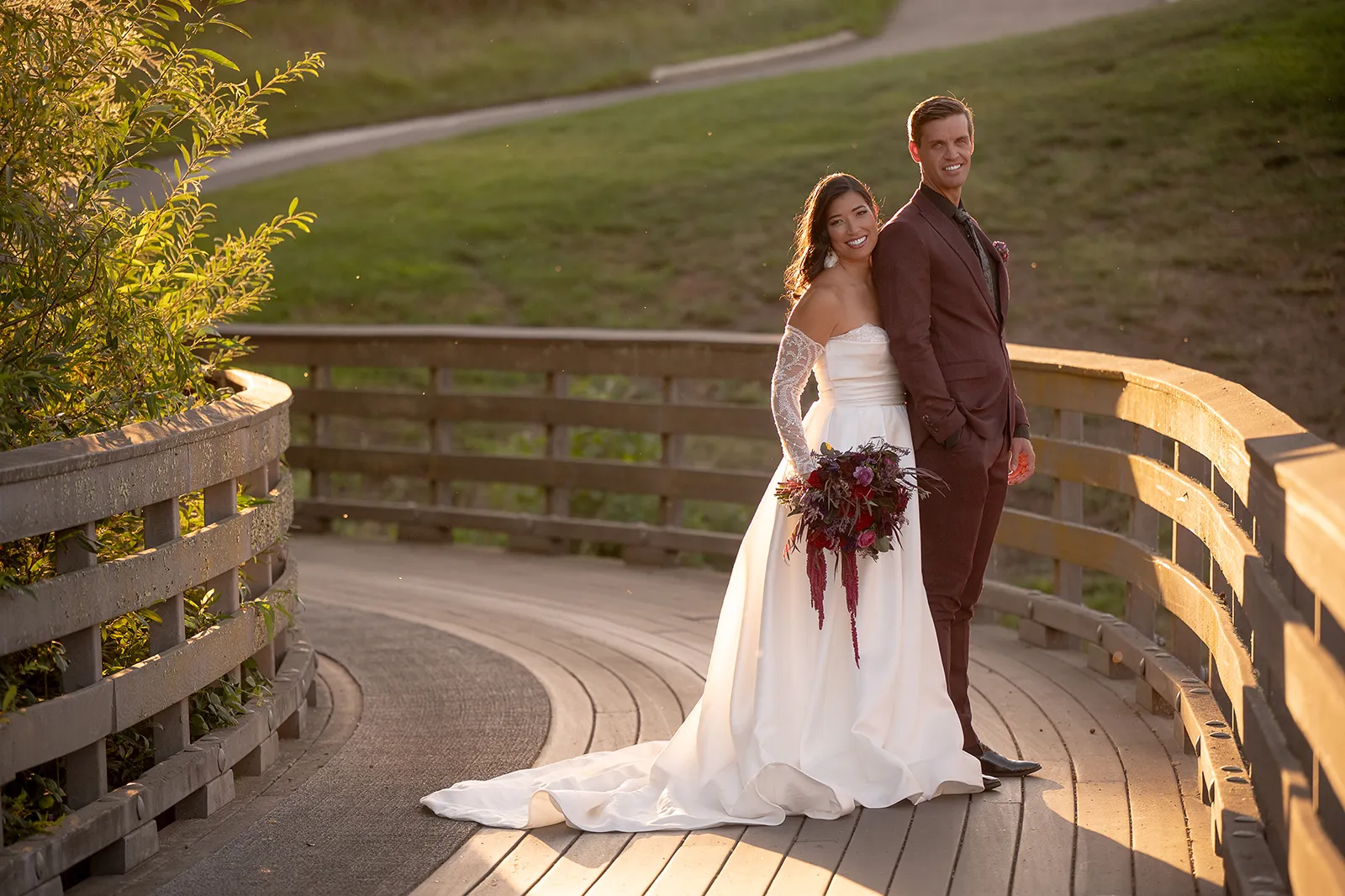 On Lindsay: Gown from De La Rosa’s Bridal & Tuxedo; Jewelry from Macy’s. On Andrew: Suit, Shirt and Shoes from Tuxedo Den; Tie from Macy’s
