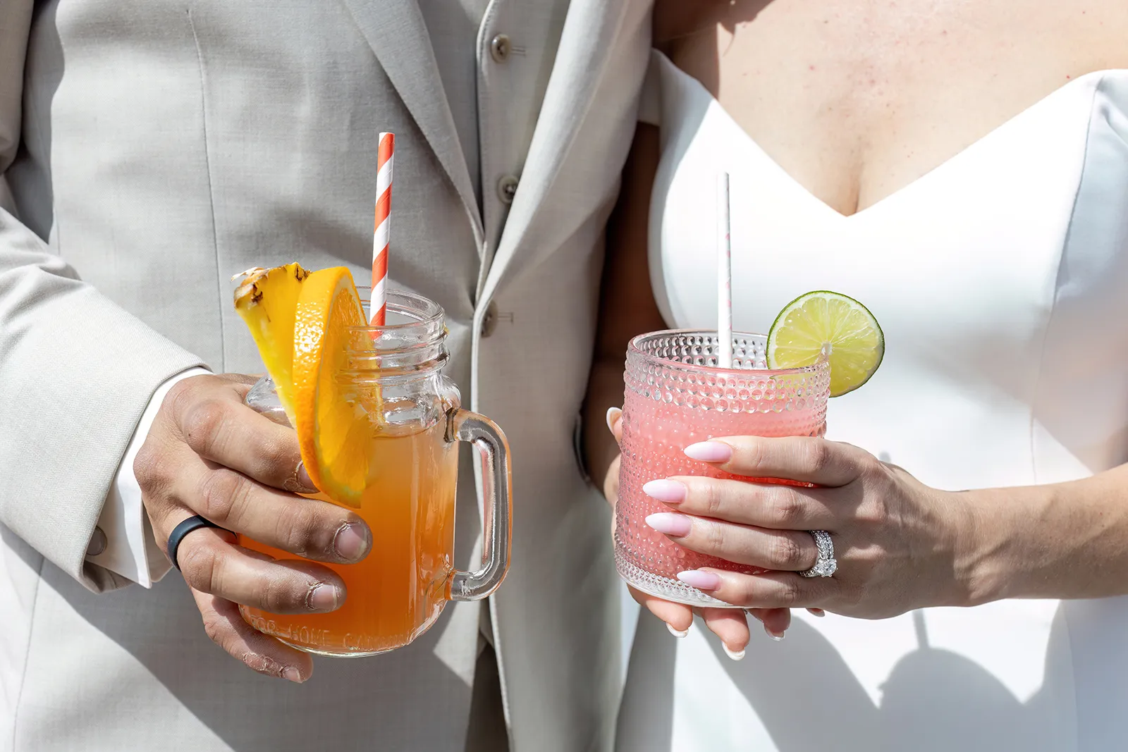 On Anthony: Jacket from Macy’s; Shirt from Tuxedo Den; Groom’s Own Pants