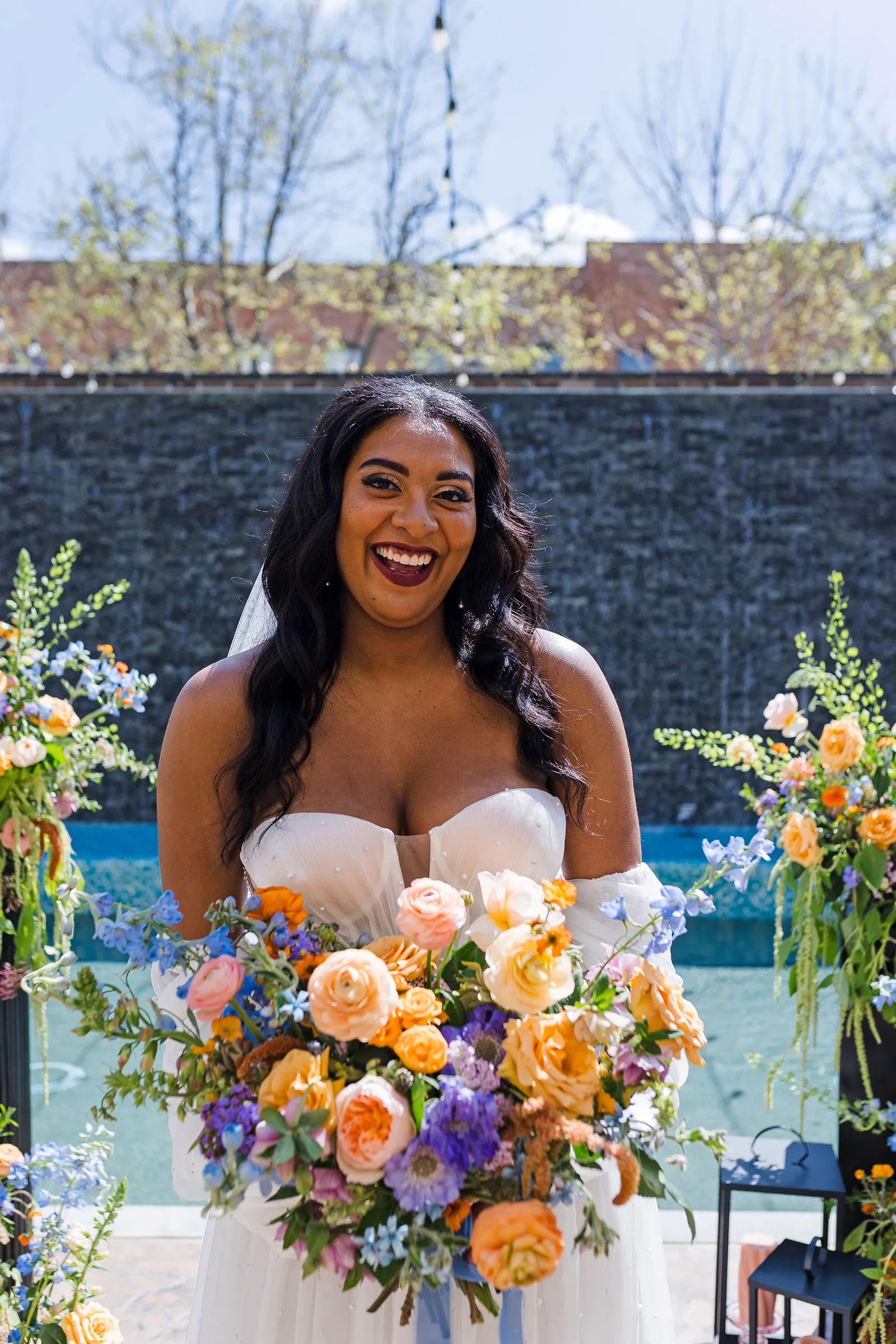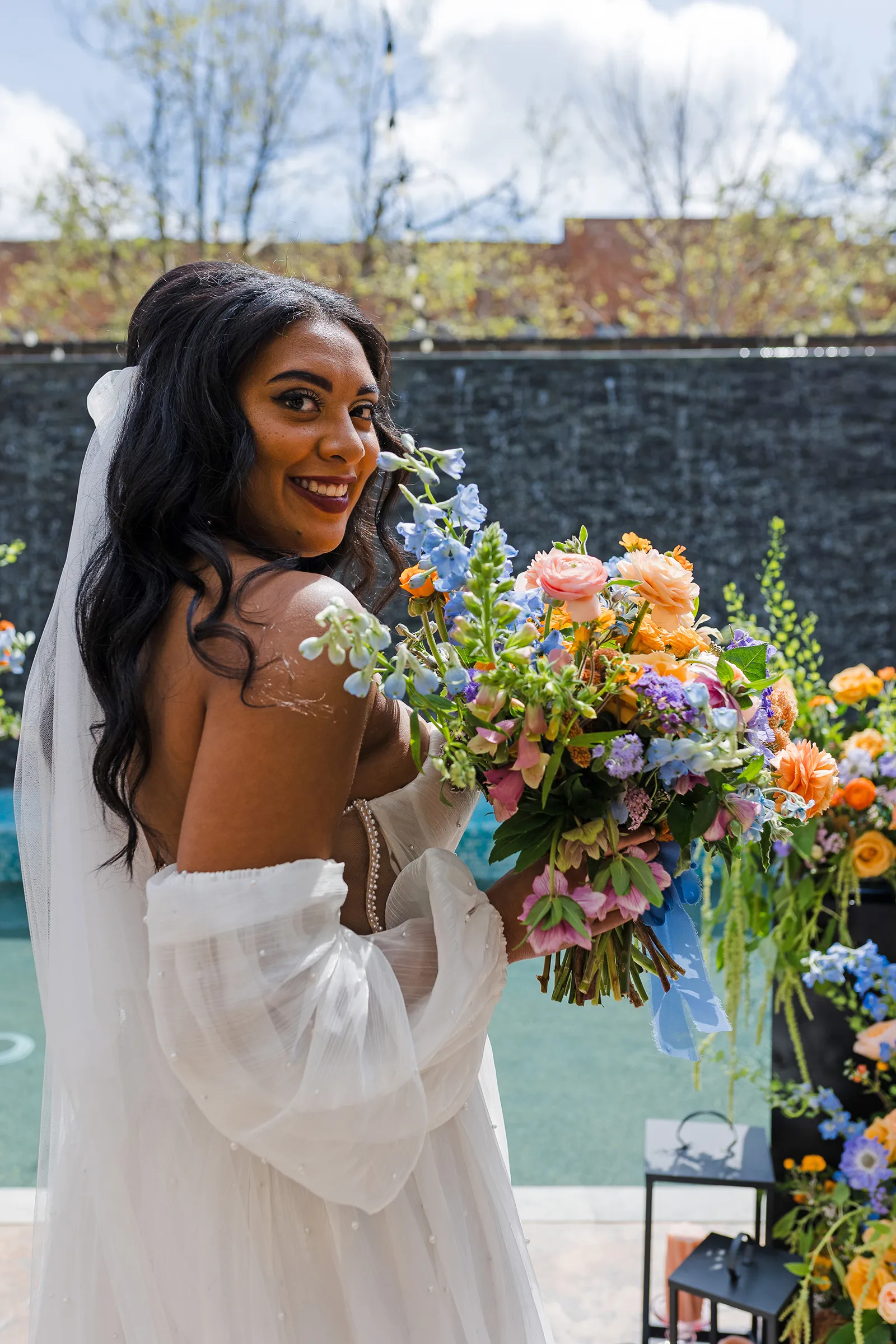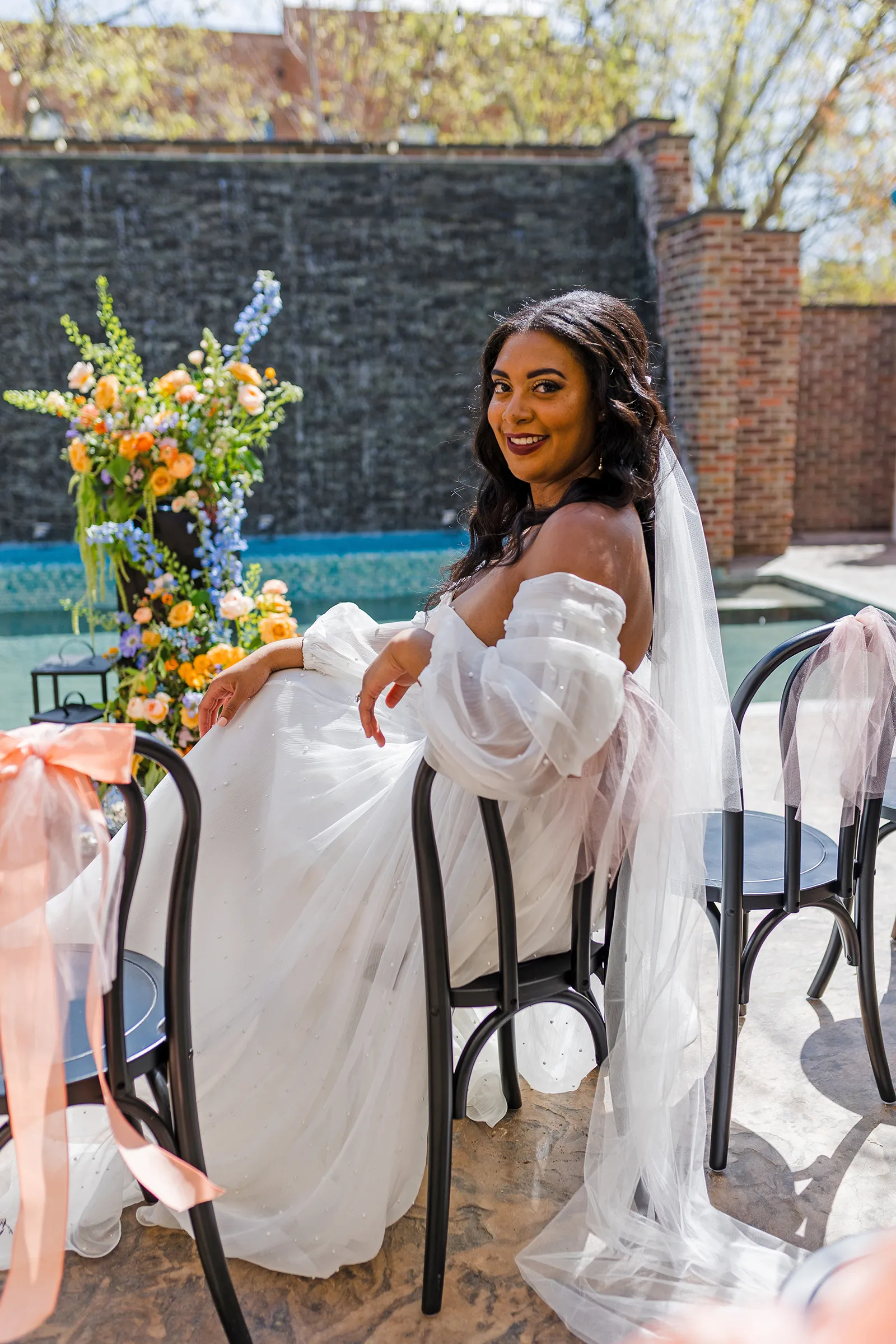 On Brooke: Veil and Earrings by Blair Nadeau Bridal Adornments; Gown from Ellis Blake Bridal