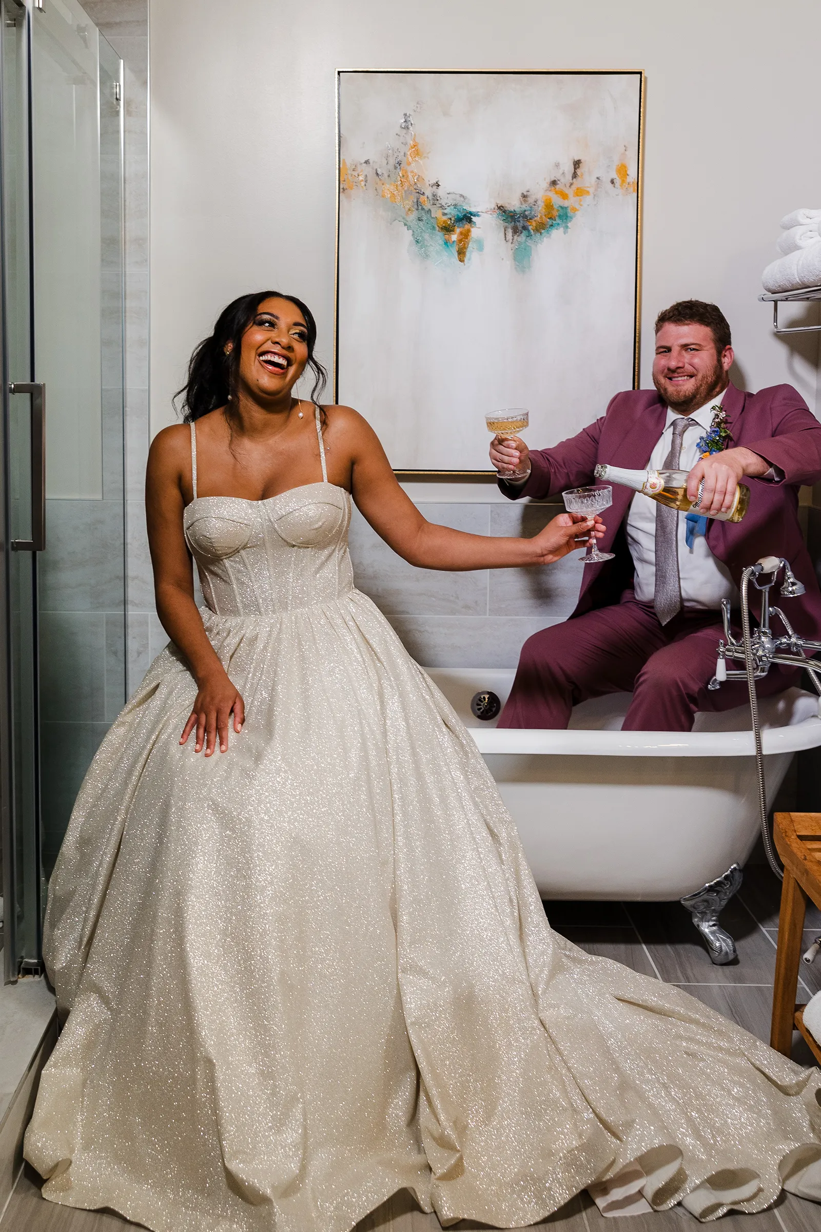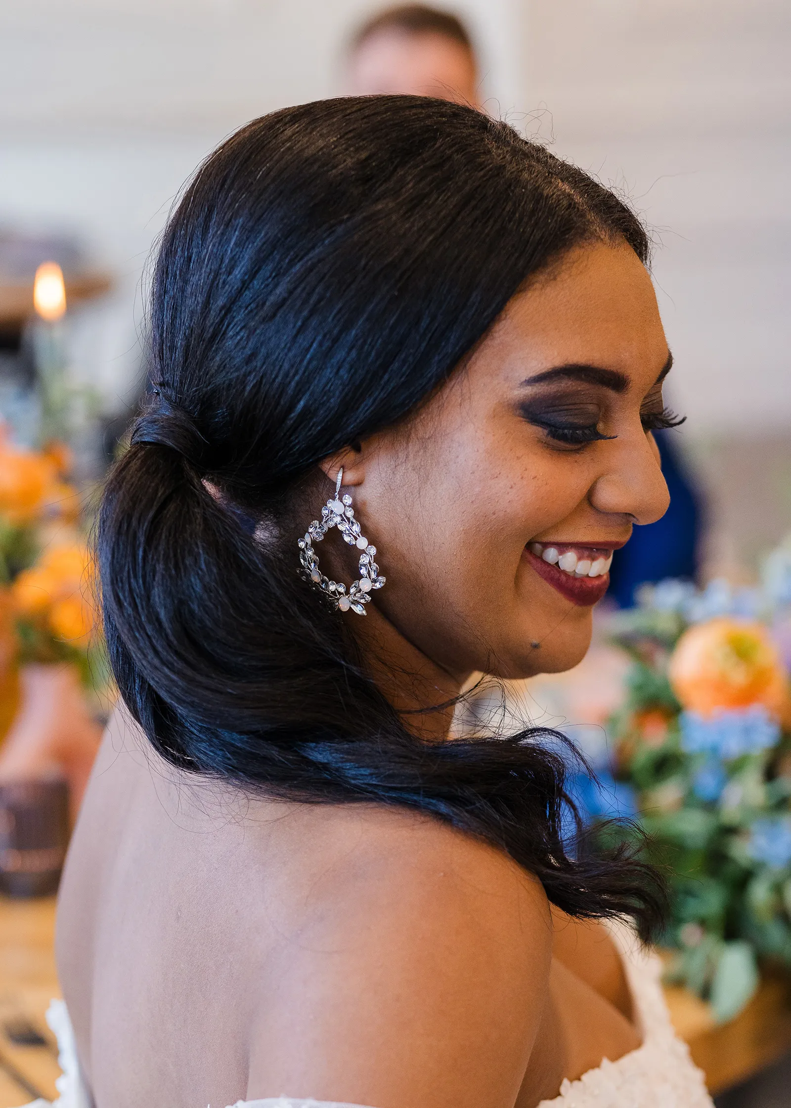 On Brooke: Earrings from Mariell; Gown from The Bridal Box