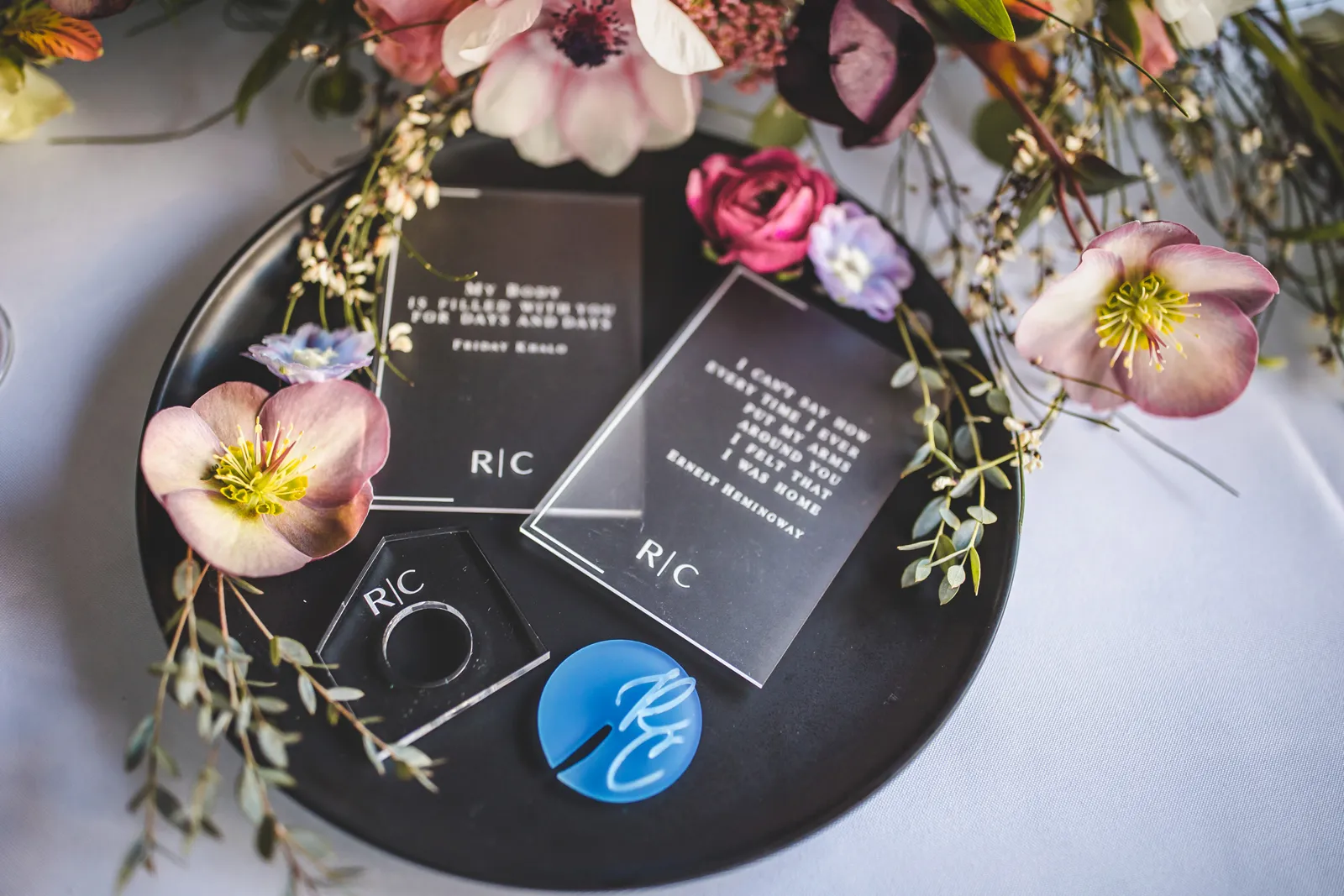 We hope you’re ready for a ton of inspiration in our new Summer/Fall #30 Style Files! From flower arrangements, mobile bars and gowns to paperie and venues, we know you’re bound to find some #weddinginspo in our amazing Style Files. We cannot wait for you to see this Submitted Styled Shoot, complete with gorgeous details; denim jackets, classy cocktails, lots of laughs and more. Keep scrolling for chic gowns and veils – courtesy of Onyx Bridal, along with modern and romantic florals (thanks Strelitzia Flower Company!) and gorgeous photos from the talented KABOO Photography. Happy Sunday, and happy reading!
