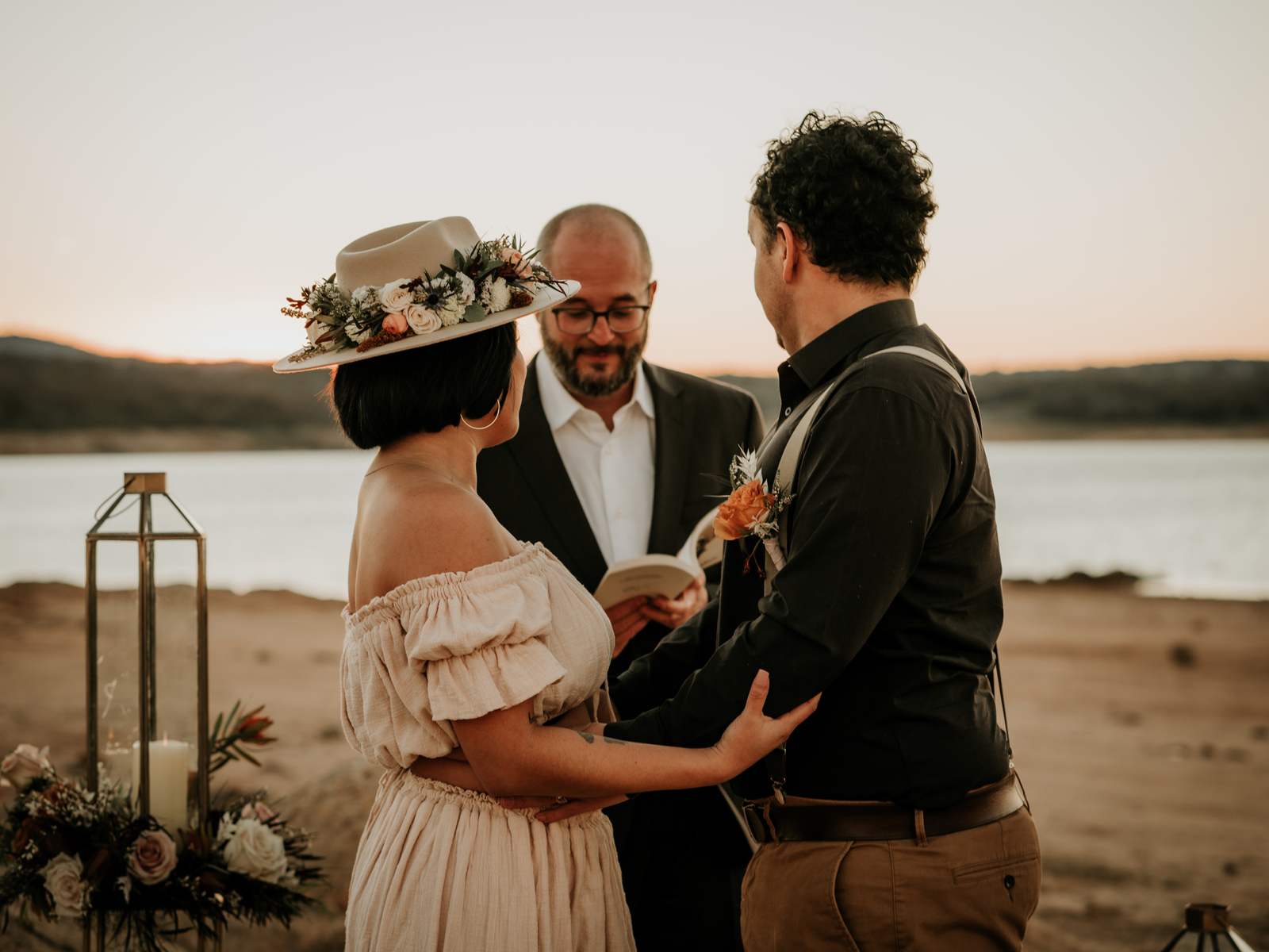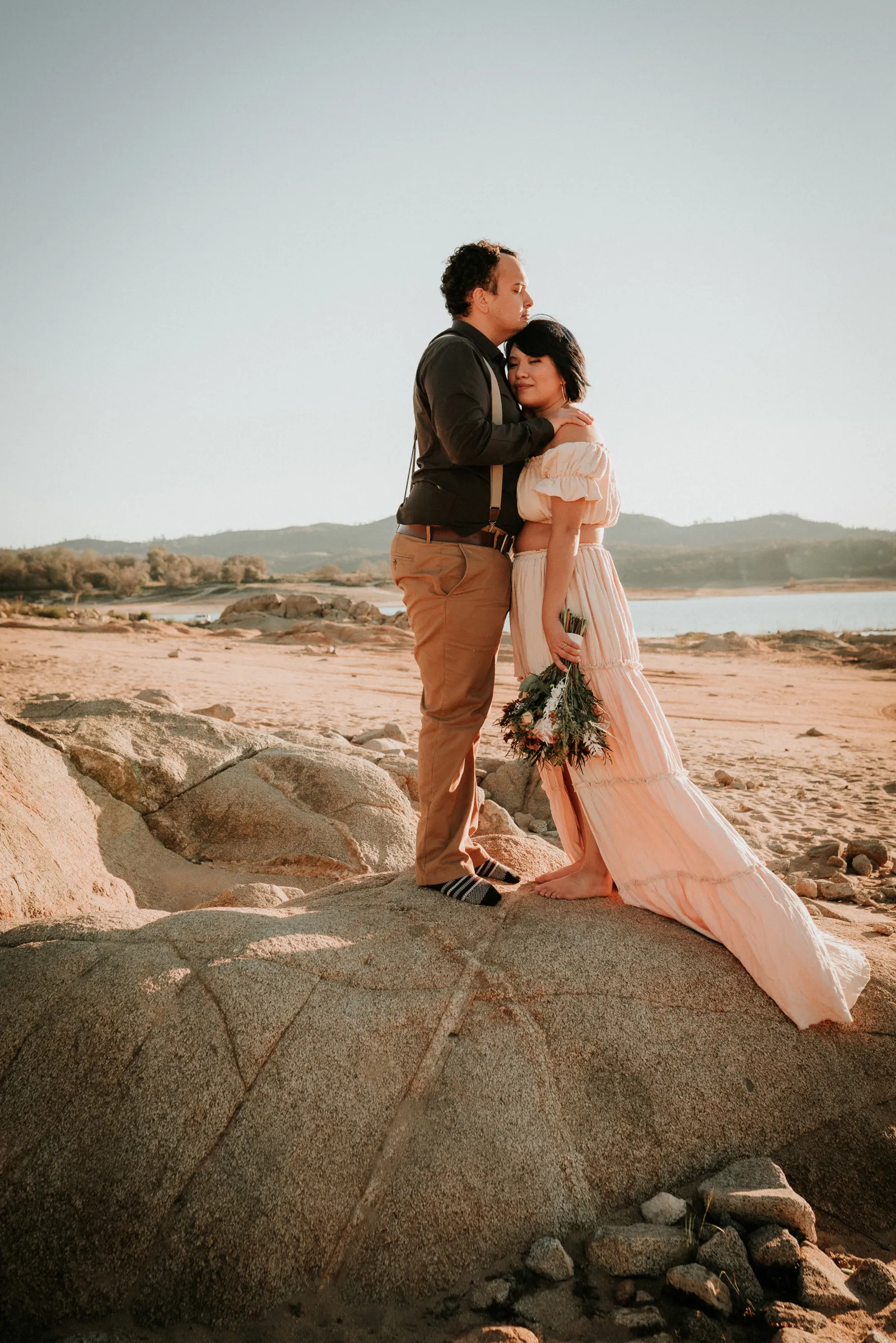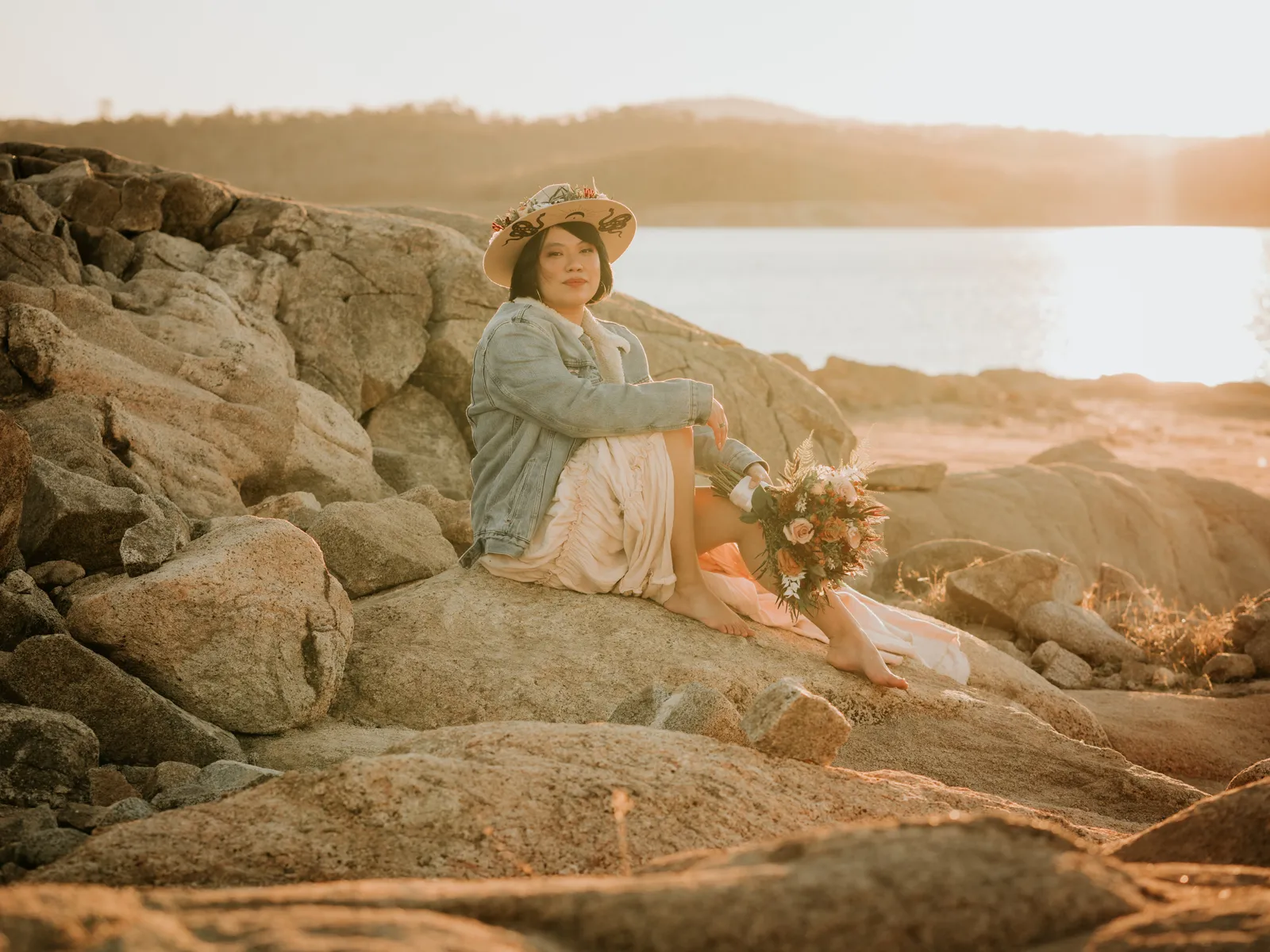 We love weddings, all kinds of weddings: big weddings, small weddings and everything in between! Since day one here at Real Weddings, we’ve always believed that it’s your wedding, and you should do whatever you want; to create the wedding of your dreams, how ever you define that for you and your beloved! If that means you want to elope, then you go and elope! And here to inspire you is a beautifully intimate sunrise (oh the dreamy morning glow!) elopement styled shoot at Oak Point at Folsom Lake! Enjoy dear readers!