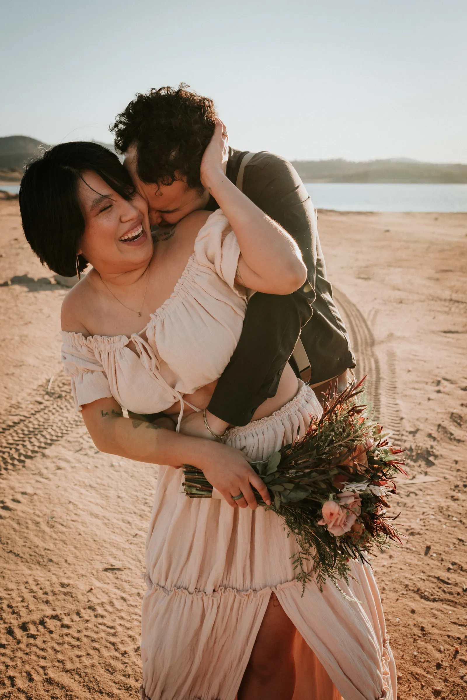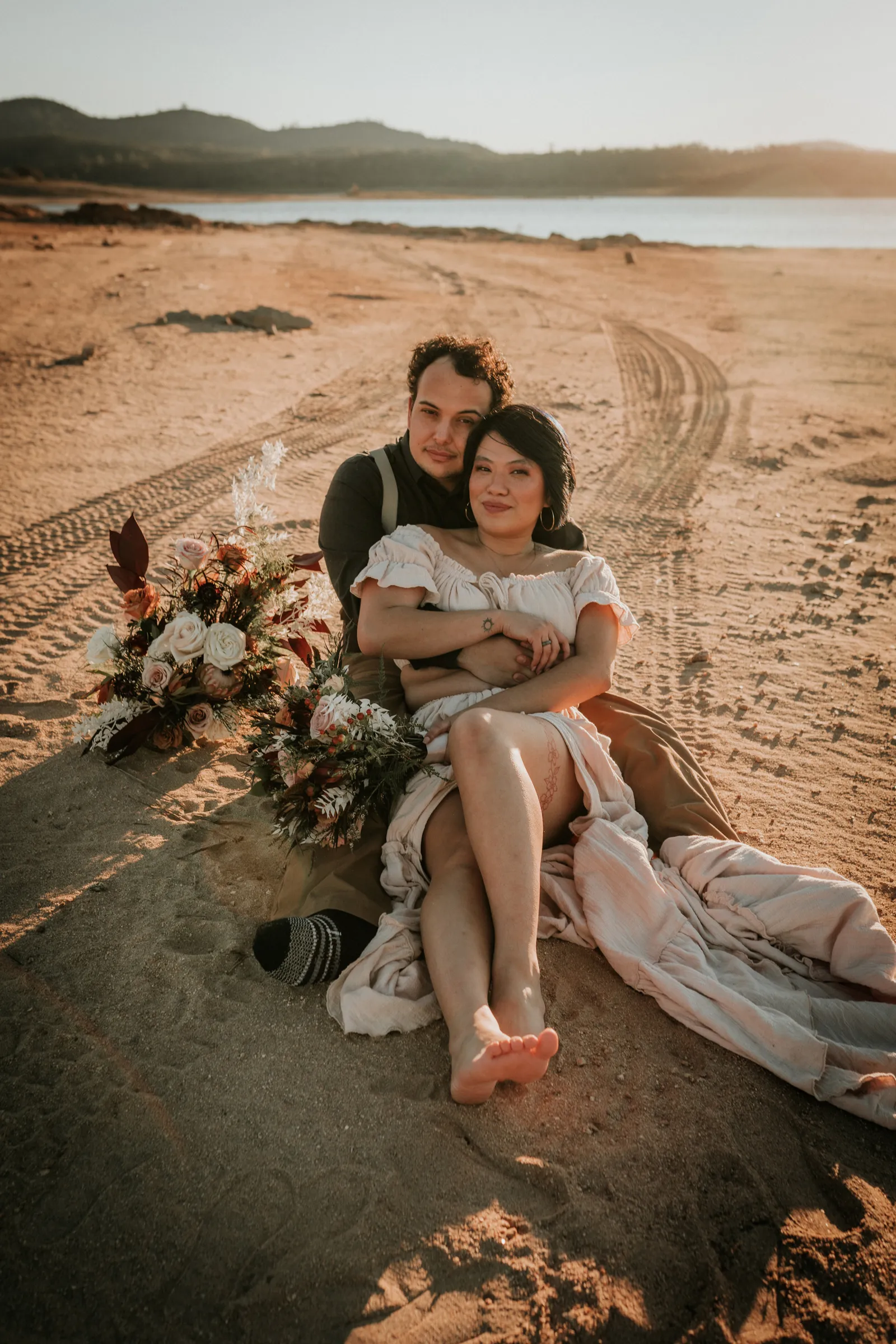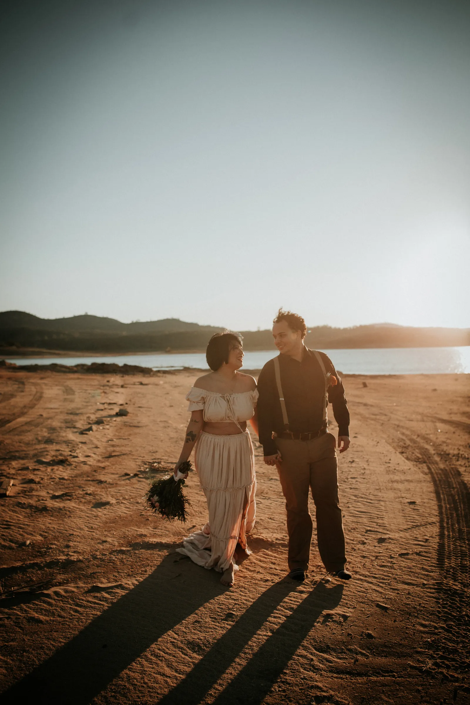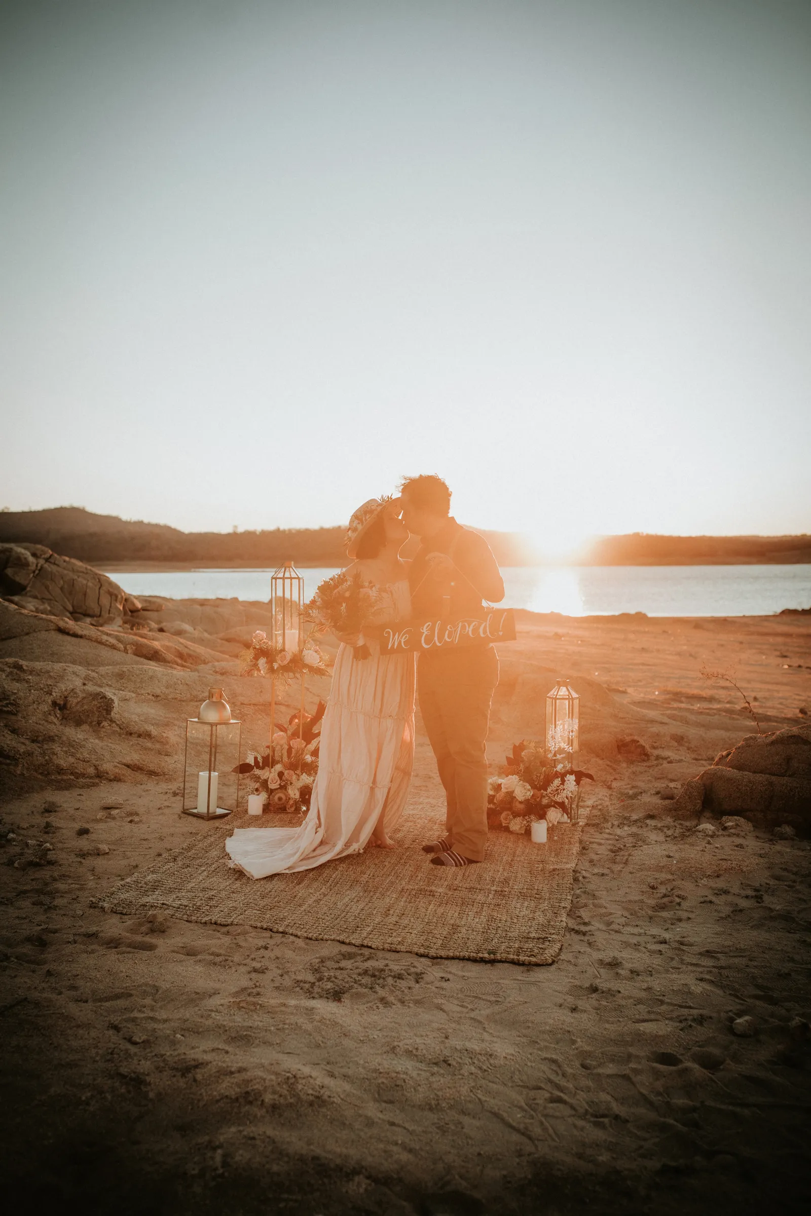 We love weddings, all kinds of weddings: big weddings, small weddings and everything in between! Since day one here at Real Weddings, we’ve always believed that it’s your wedding, and you should do whatever you want; to create the wedding of your dreams, how ever you define that for you and your beloved! If that means you want to elope, then you go and elope! And here to inspire you is a beautifully intimate sunrise (oh the dreamy morning glow!) elopement styled shoot at Oak Point at Folsom Lake! Enjoy dear readers!