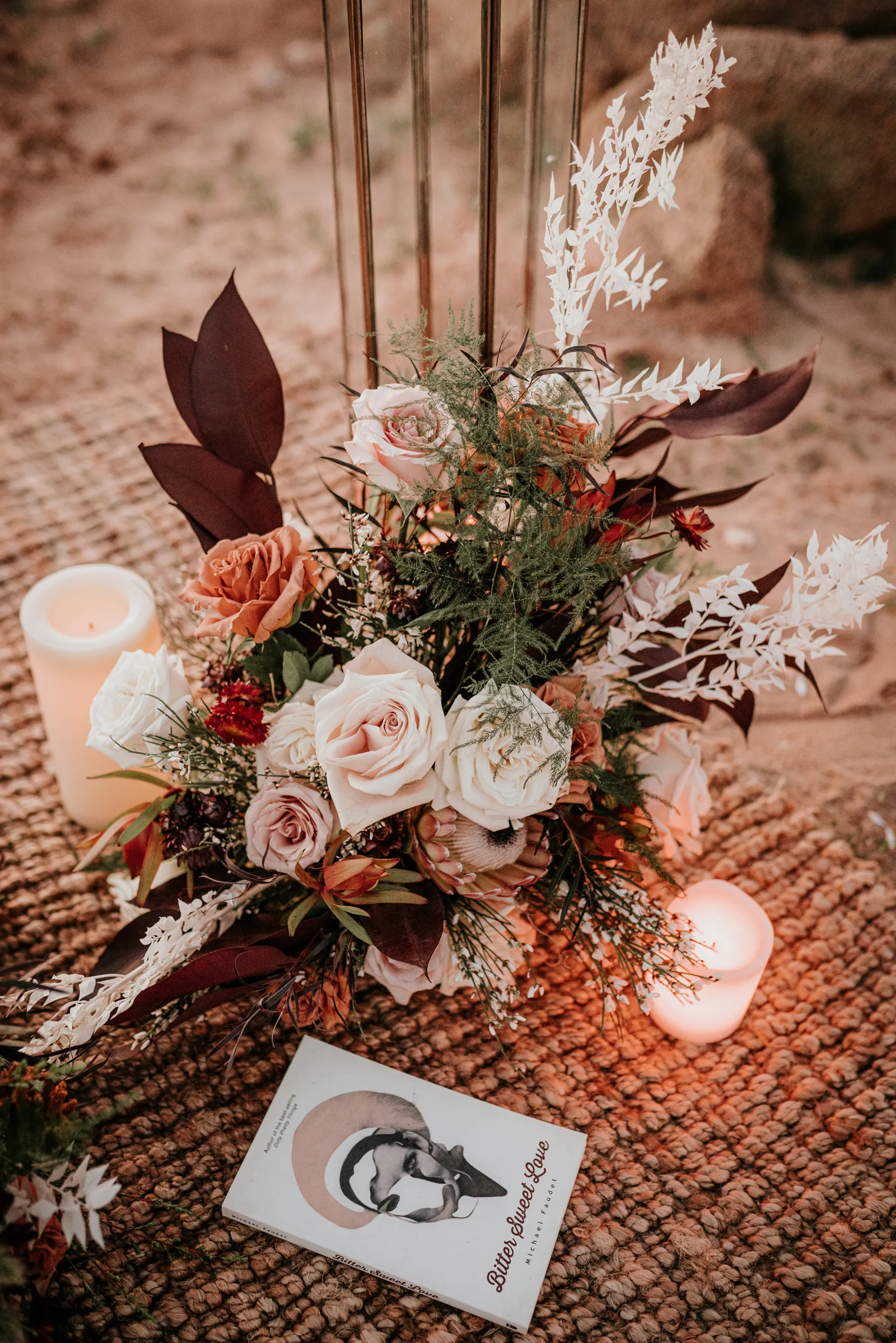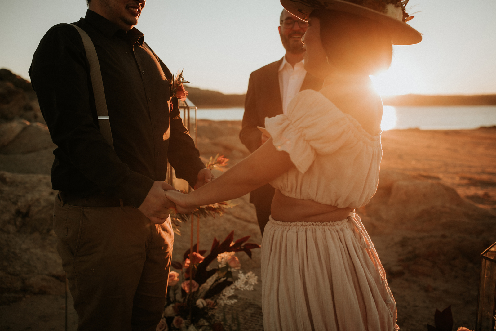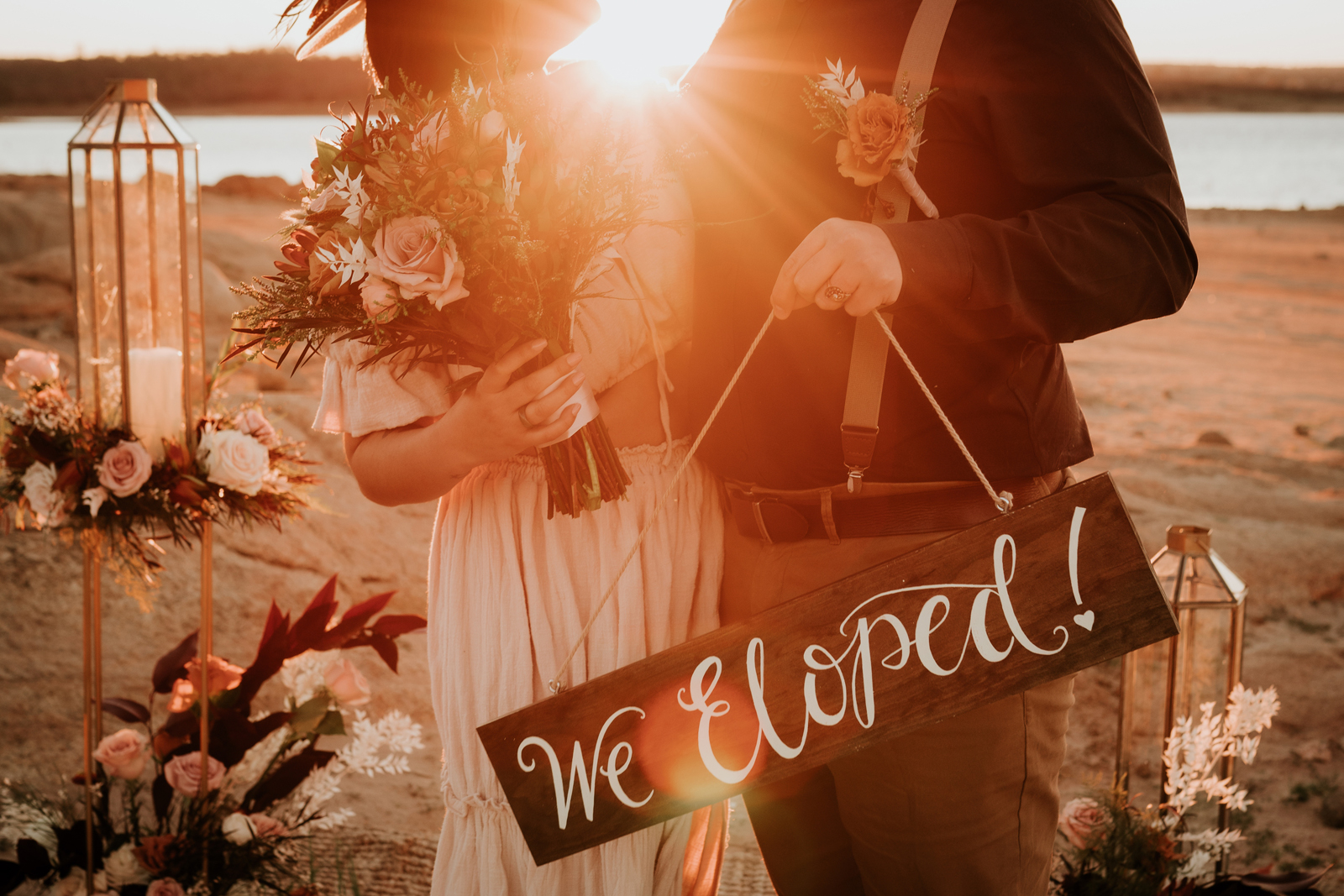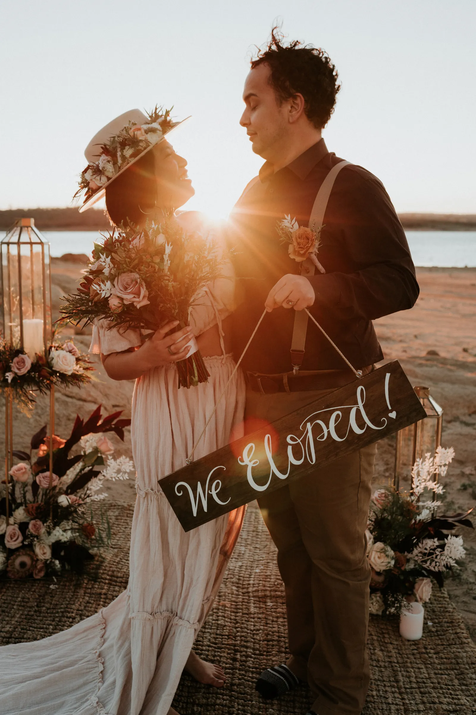 “We wanted to show a sunrise elopement—I also wanted to show couples that they could have a beautiful floral packed ceremony space, without the big wedding! People have this image in their head of an elopement being only in the court house, or Vegas but an elopement can be anything you want it to be!”