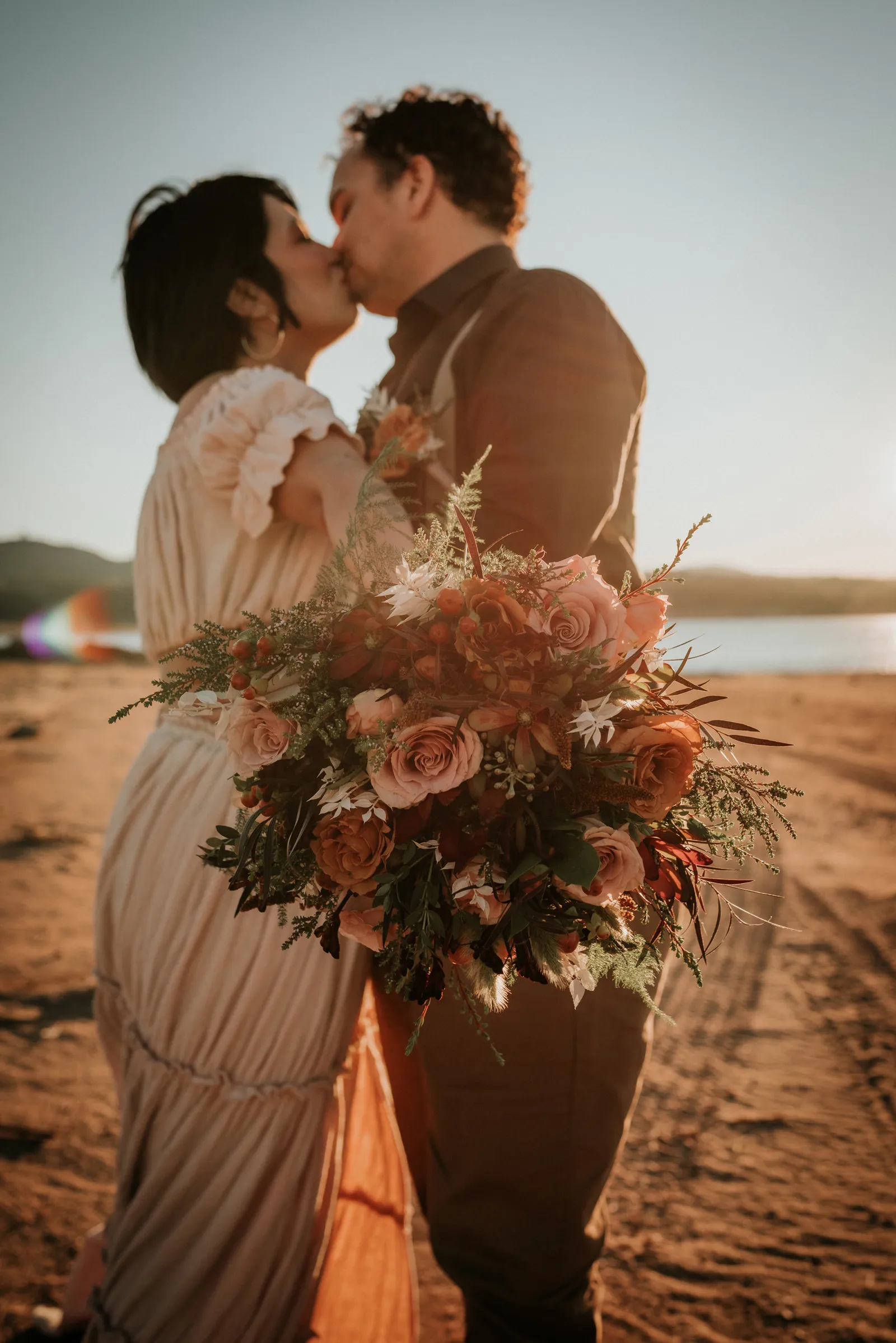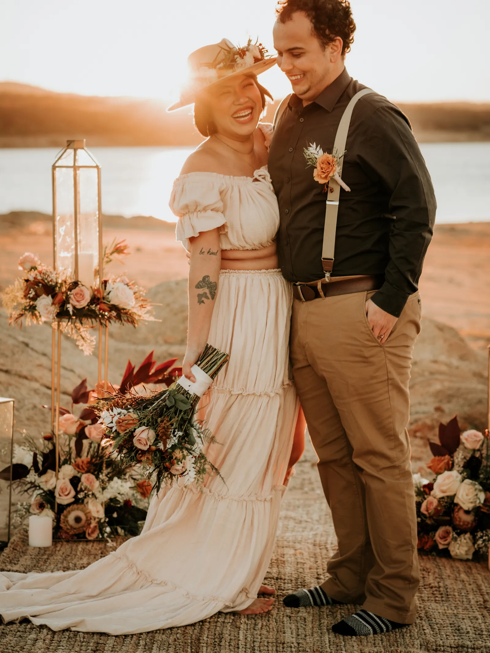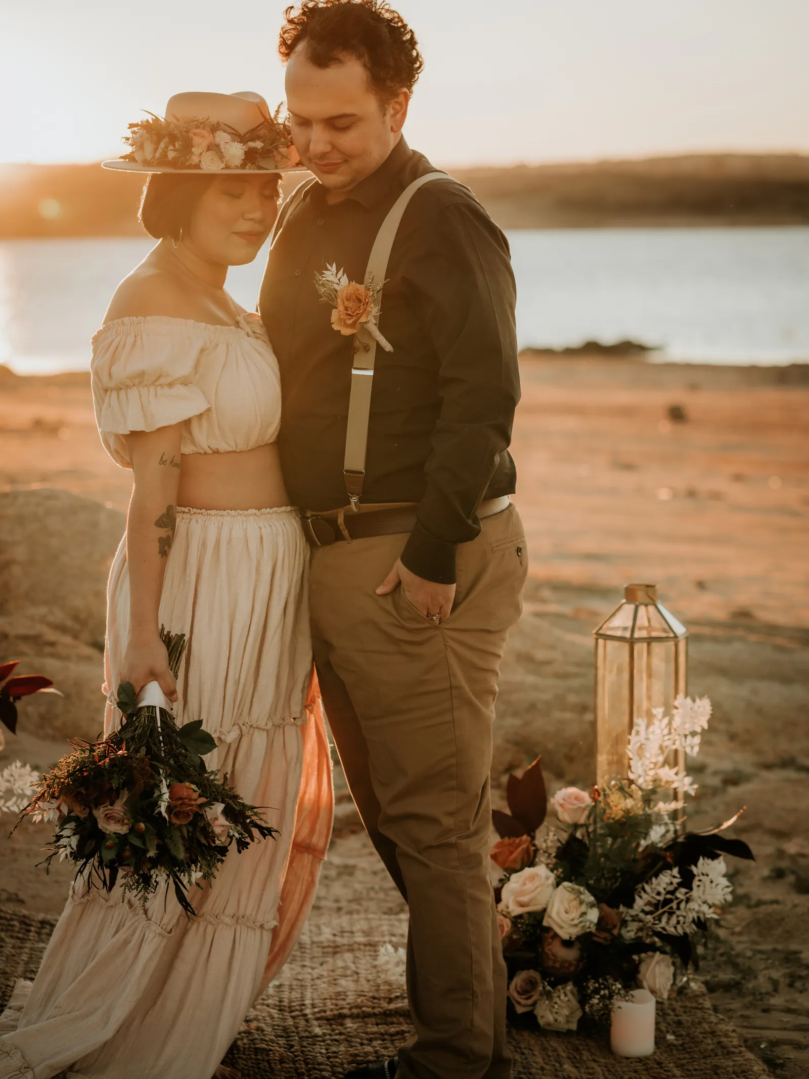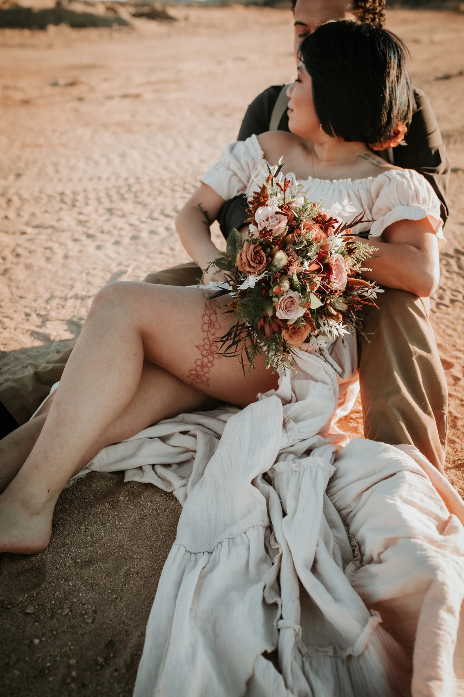 “We wanted to show a sunrise elopement—I also wanted to show couples that they could have a beautiful floral packed ceremony space, without the big wedding! People have this image in their head of an elopement being only in the court house, or Vegas but an elopement can be anything you want it to be!”