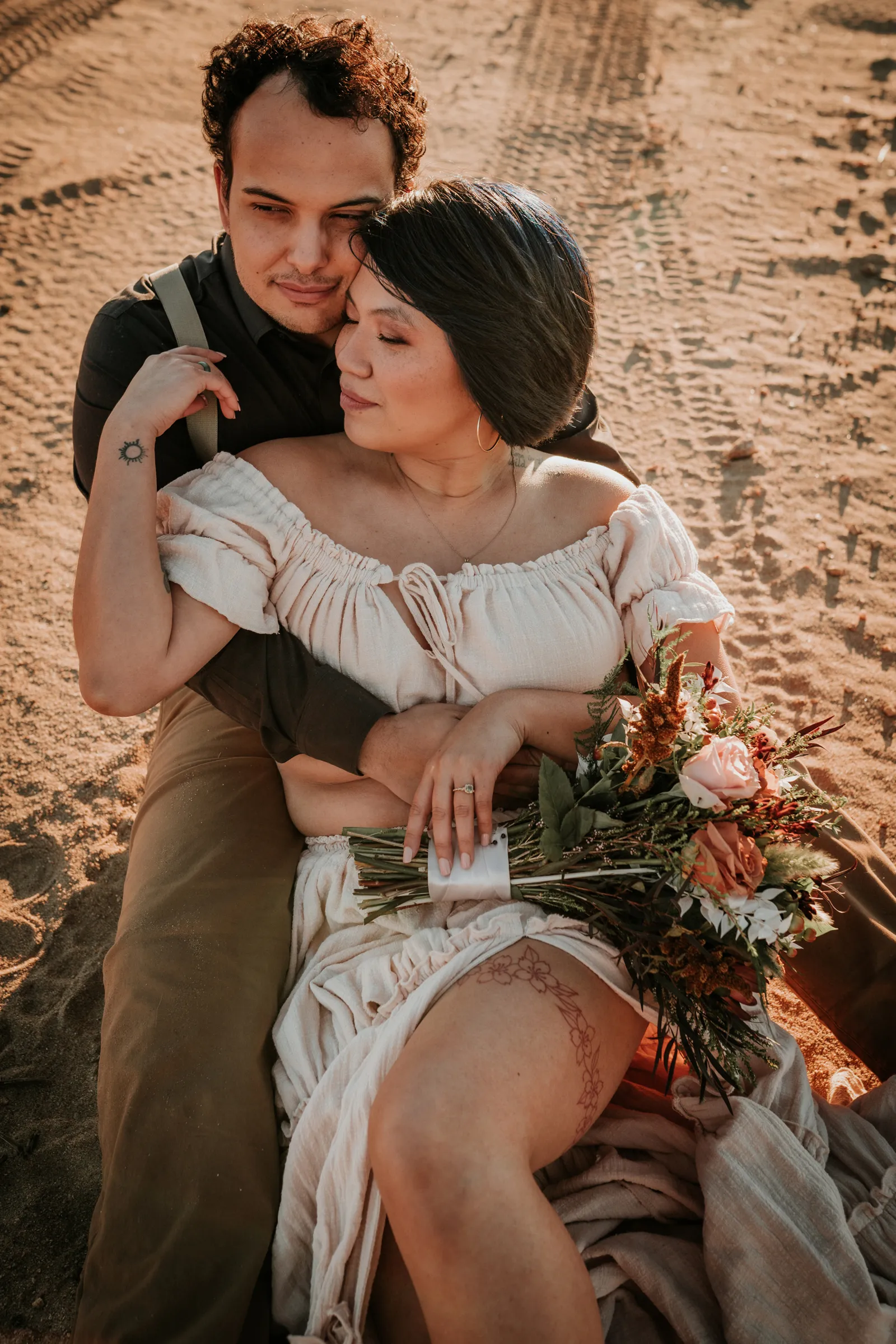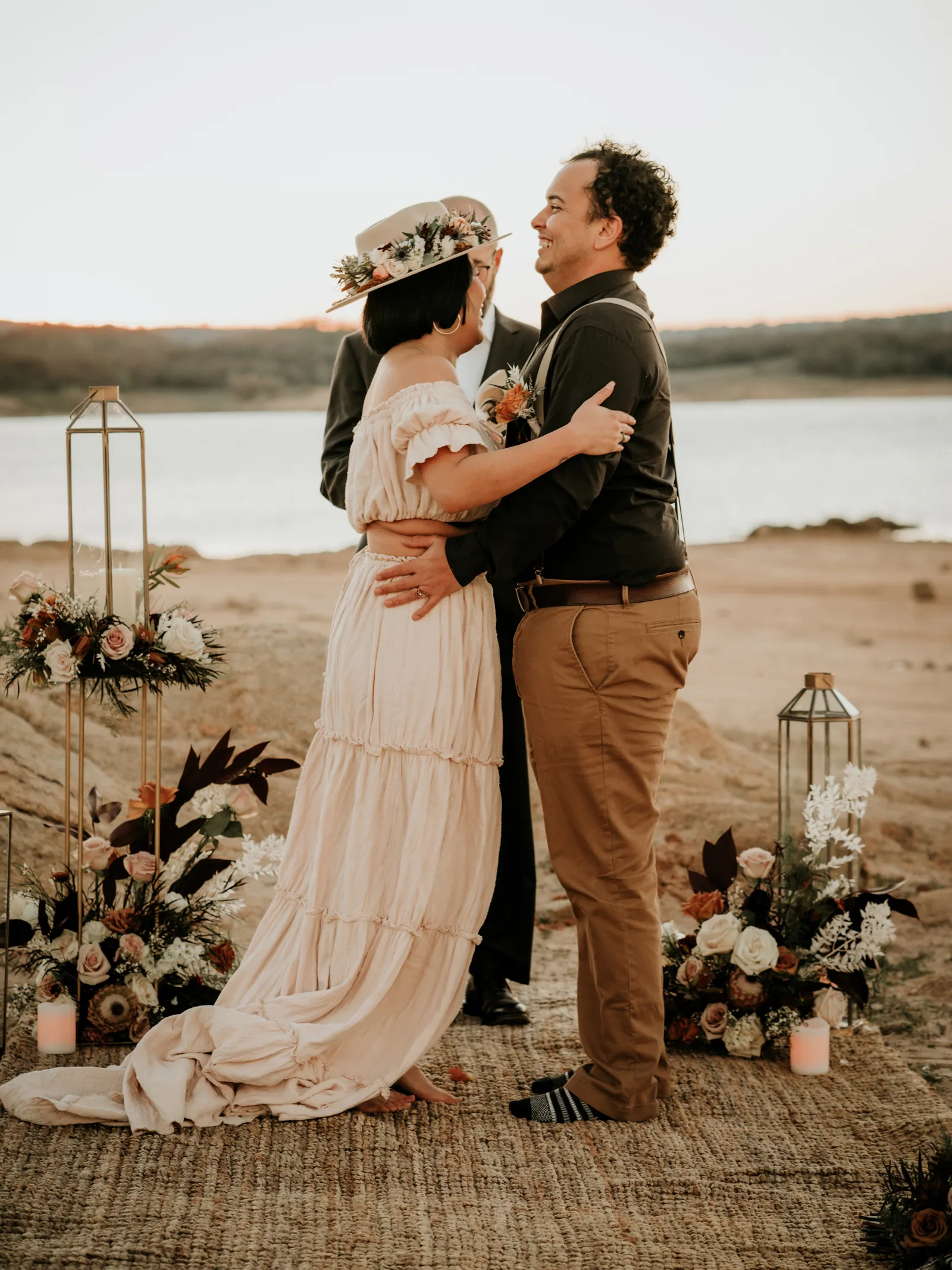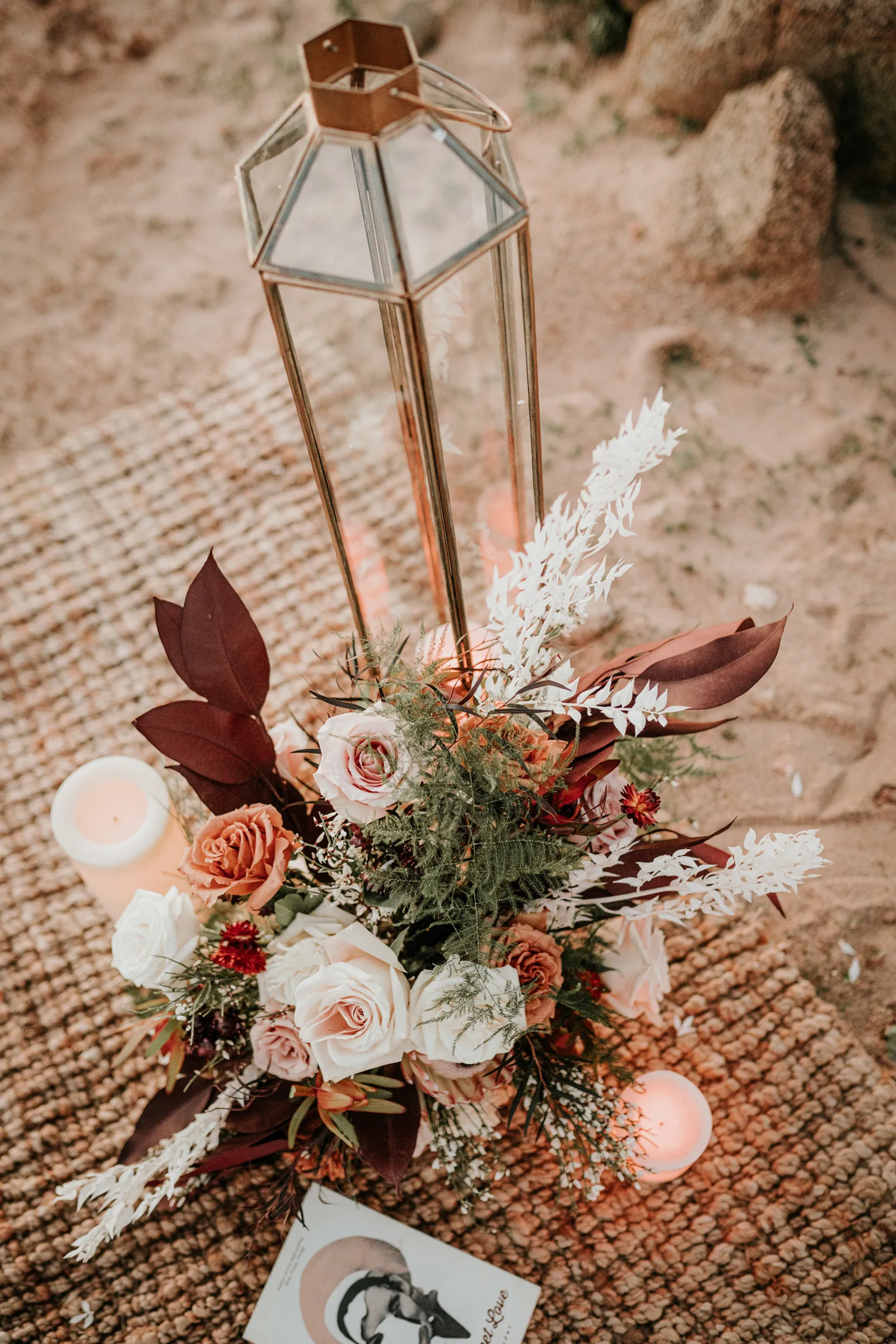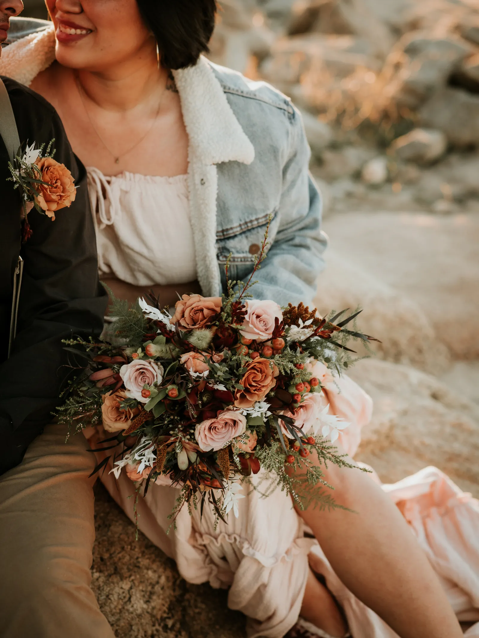 “We wanted to show a sunrise elopement—I also wanted to show couples that they could have a beautiful floral packed ceremony space, without the big wedding! People have this image in their head of an elopement being only in the court house, or Vegas but an elopement can be anything you want it to be!”