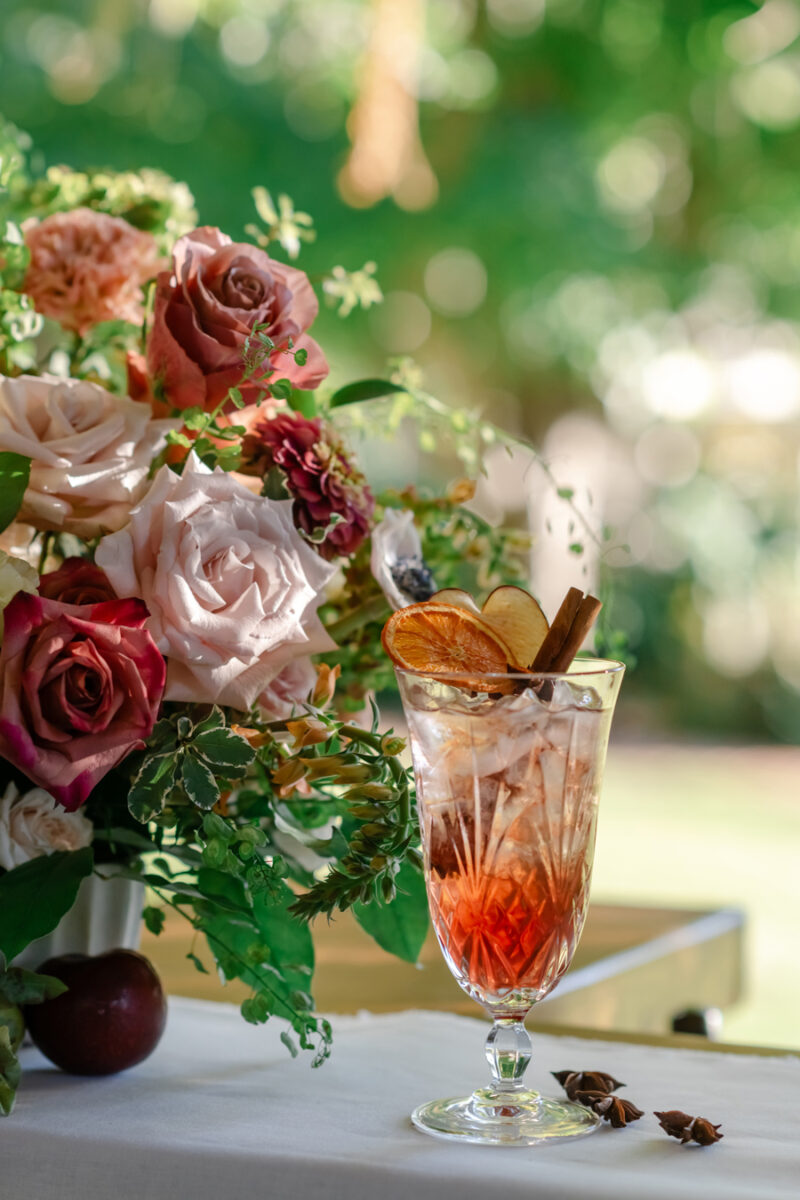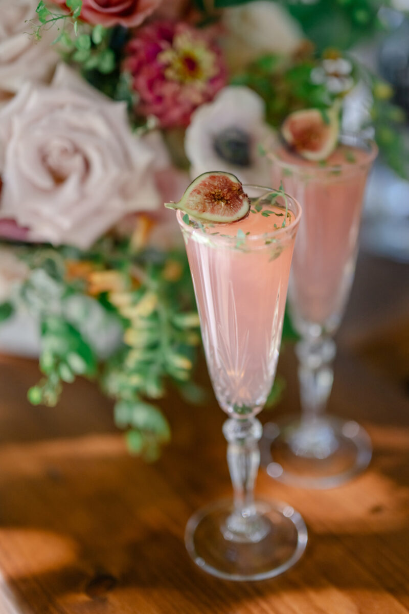 For our shoot, they mixed up two irresistible favorites: a cozy-meets-festive Cranberry Cider Margarita (hello fall romance!) and the delicately elegant Fig & Thyme Gin Fizz (basically a toast in cocktail form). One is bold and bright, the other soft and sophisticated—together they’re basically the perfect wedding couple.