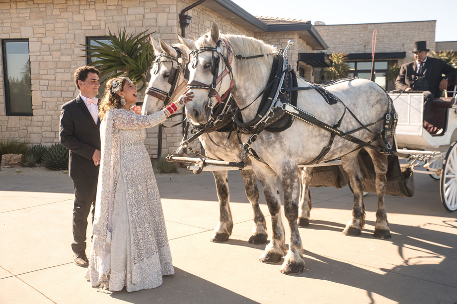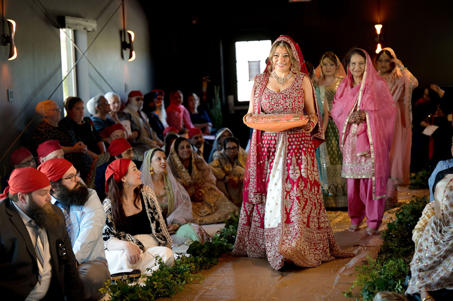The couple celebrated the day with a Sikh ceremony, followed by vegetarian lunch reception. Then in the afternoon they had an intimate Amish ceremony followed by a Western-style reception with dinner and dancing. Kiran says, “It was a true reflection of our journey and our families coming together.”