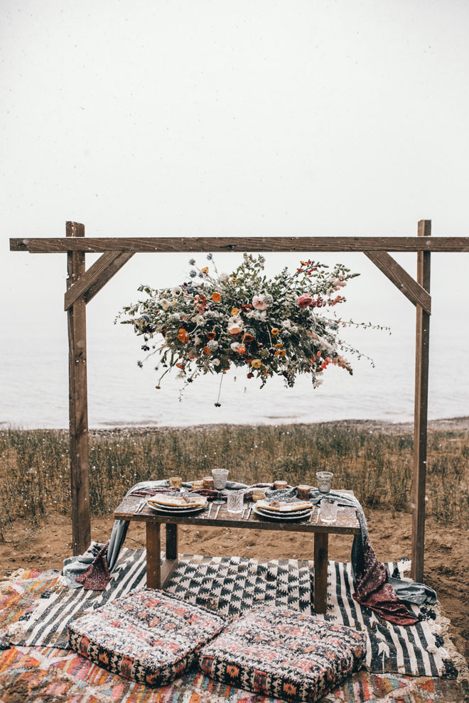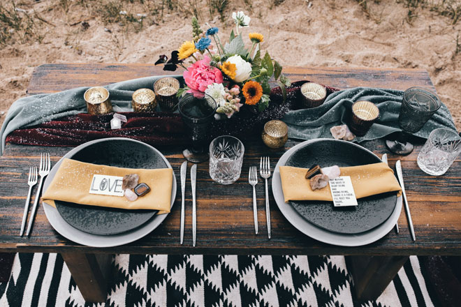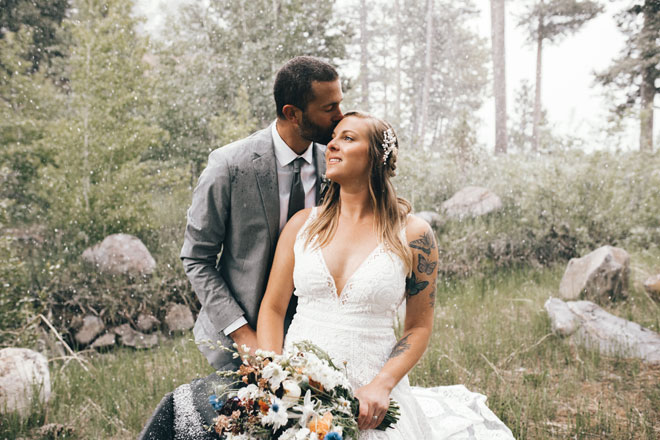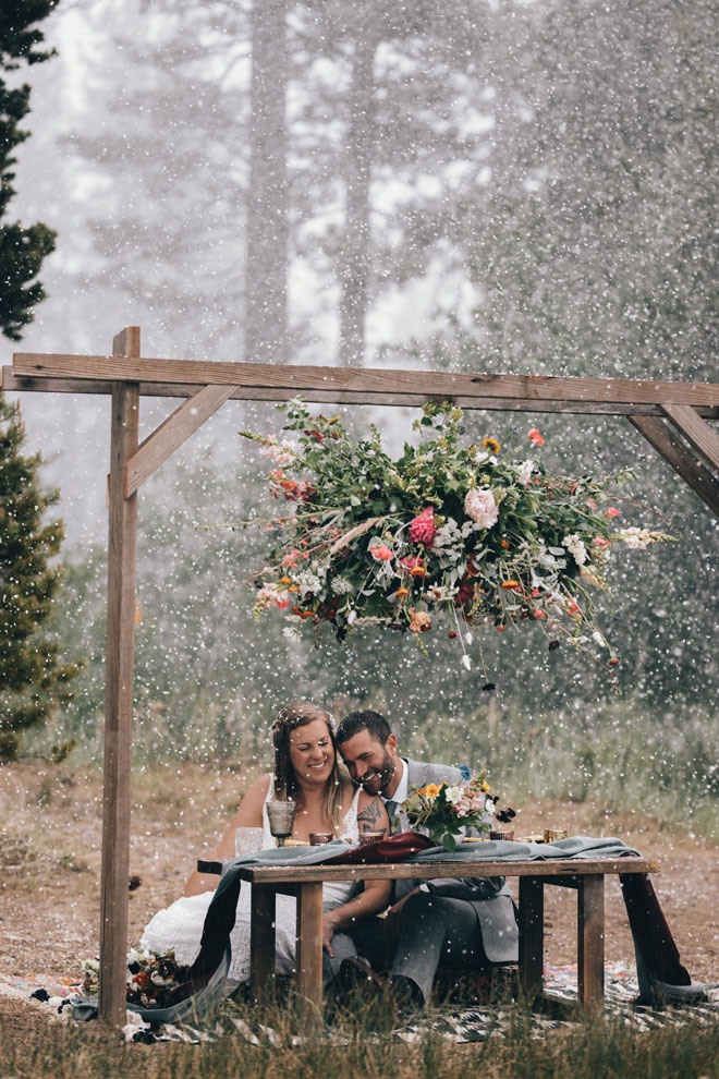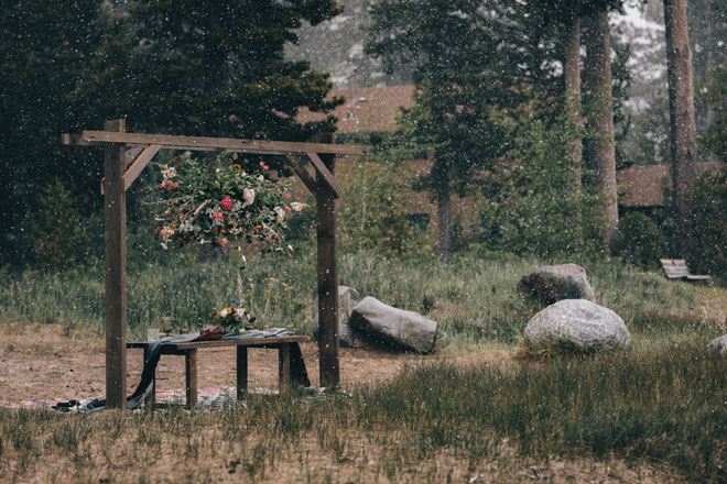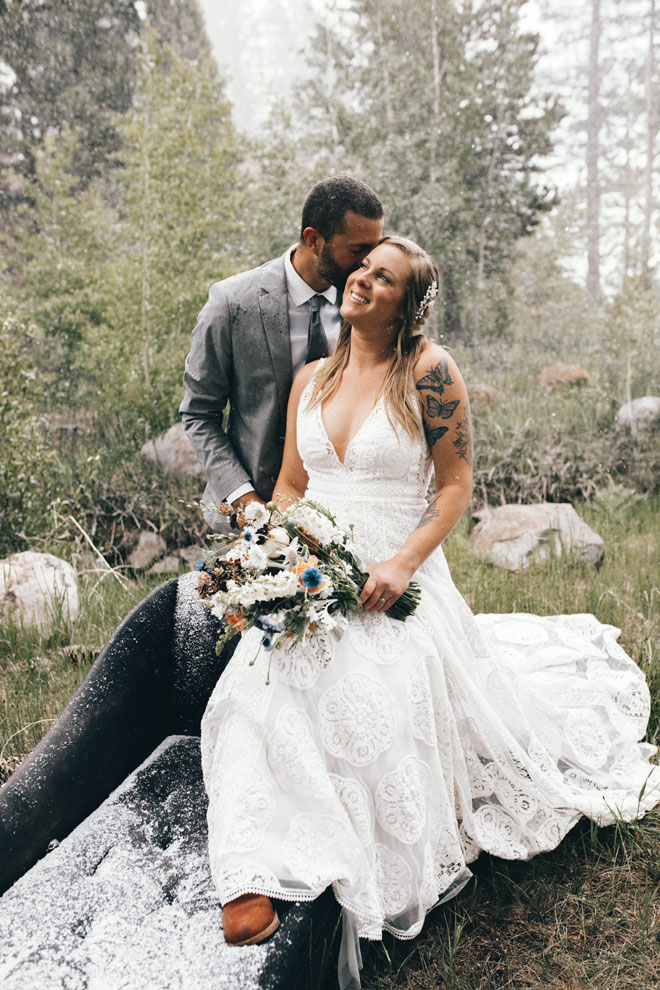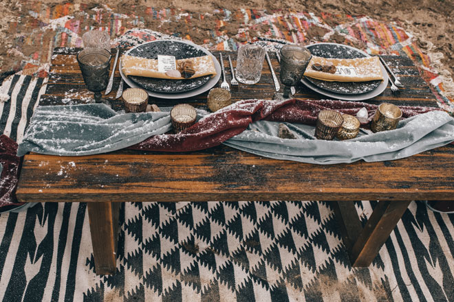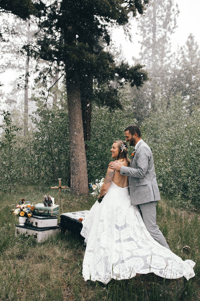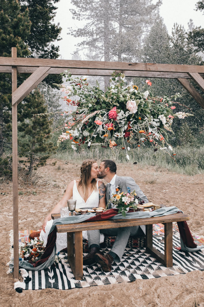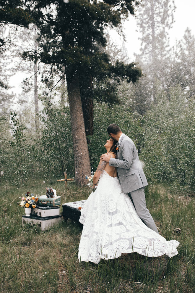 Snow at the beach?! Well that must mean Lake Tahoe! How lucky are we to live so close to an extraordinary locale and even more lucky to feast our eyes on this beautiful elopement-style inspiration. Antique meets trendy meets snow meets beach meets forest…this shoot has it all! Keep scrolling for more boho wedding inspiration!