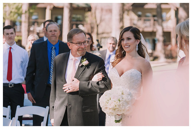 It didn’t take us long to find a venue as we knew that we wanted to get married in Lake Tahoe. Austin and I have spent a lot of time up there, and really felt that we wanted it to continue to hold a special place in our lives. We toured many venues, but as soon as I walked into the ballroom at the Hyatt Regency Lake Tahoe Resort, Spa and Casino, tears filled my eyes. The Hyatt was everything that we had always dreamed of! We did all of the planning ourselves over the next 17 months. We did, however, use Alluring Events & Design for their day-of coordination package and it was one of the best decisions we made.