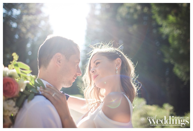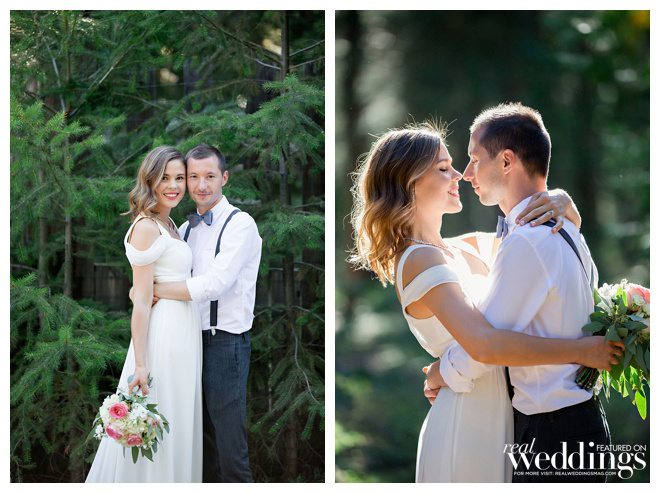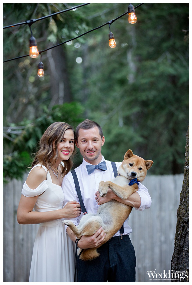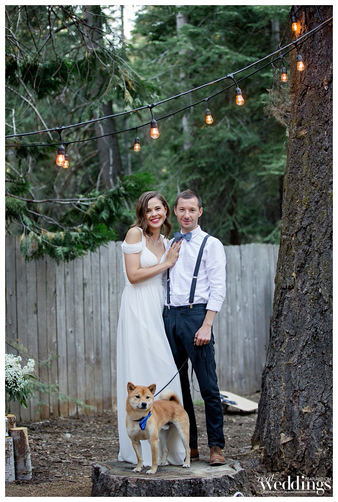 Tell us a little about you and your beloved: We have known each other for quite a while before dating, we’ve met through friends we had in common. We knew each other for four years before we started dating and there’s really no super special story to that. In some time we had a feeling that “oh yeah, this is the right person for me and I can see us having a family one day”. We lived together for couple years, first year living together Nick got us our lovely pup, Shiba Inu Archy (which was my dream all my life), and the second year living together on Christmas morning, he proposed. We wanted a very small wedding with our families only to keep it casual and my parents’ house in Tahoe seemed like a perfect location with a nice backyard. So planning wasn’t as chaotic as it sometimes can get with the weddings.