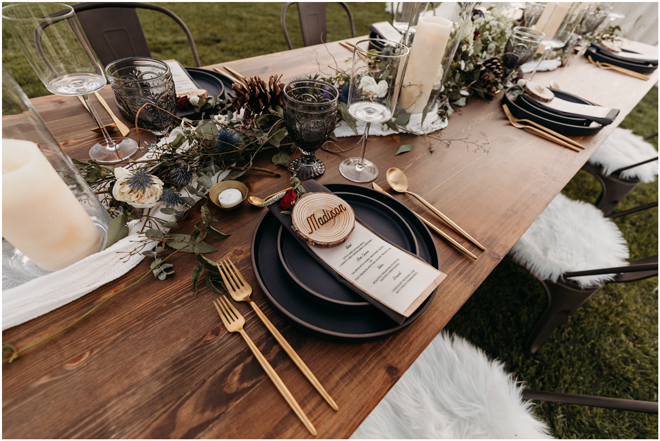 Heading to the mountains and forest for our “The Mountains are Calling” feature was a great treat for our design team…something about the mountain air just clears the mind, settles the spirit and invigorates the soul. And Highlands Ranch Resort provided the perfect backdrop for our design team to create this beautiful styled shoot! Can you just smell that beautiful clean air through these images? We certainly can!