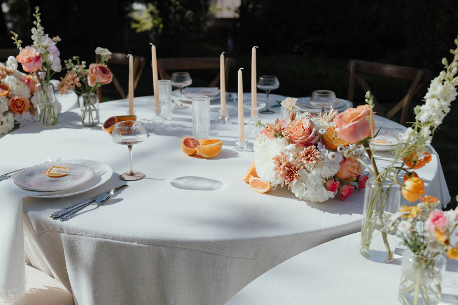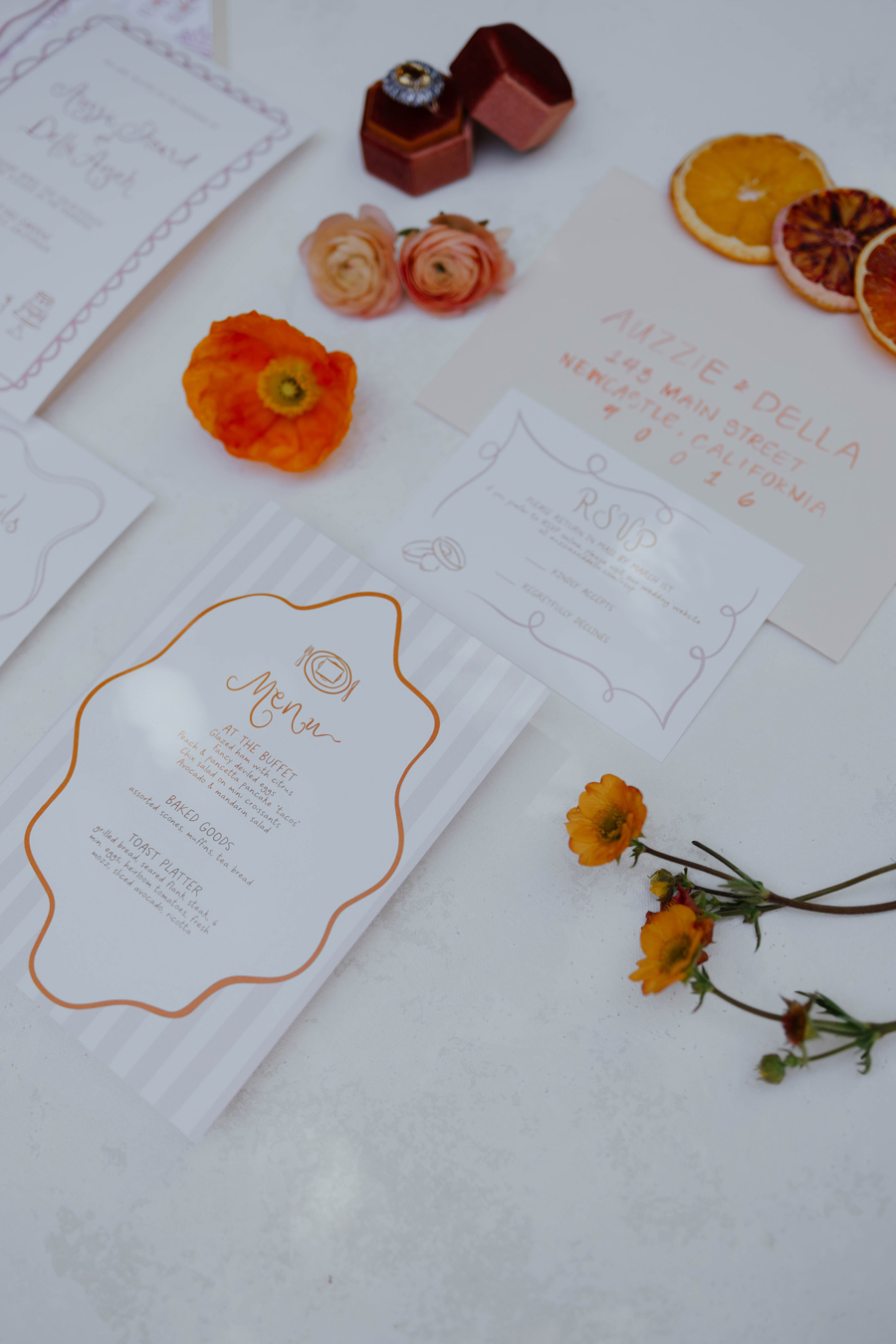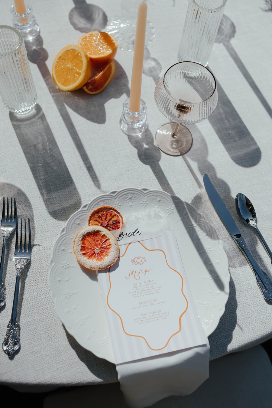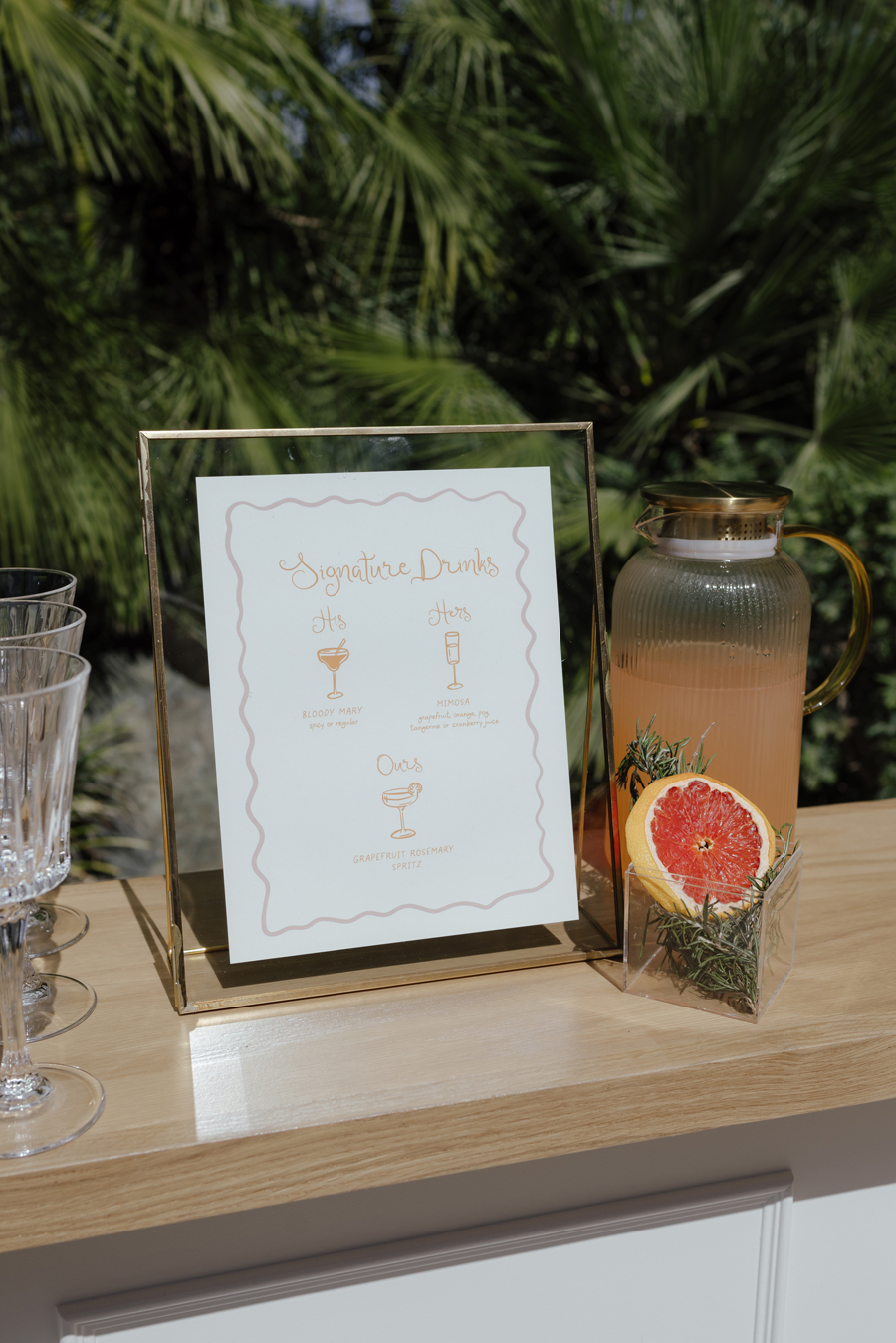 For our “Let’s Do Brunch” shoot, our talented creative team went all out, preparing a feast for the eyes (and yes, for the taste buds too). Think: swoon-worthy cakes, mouthwatering brunch bites, chic tablescapes, bold and blooming florals, a large Vitamin-C dose of citrus, a dreamy ceremony backdrop, playful paperie, stylish signage, and—because no brunch is complete without a buzz—espresso martinis…just to name a few of the oh so tasty details!