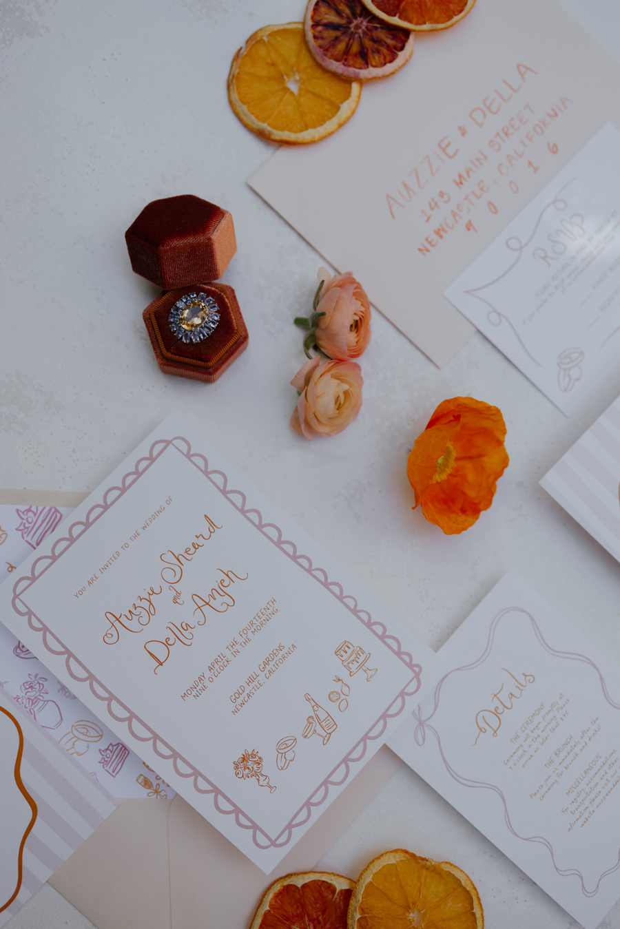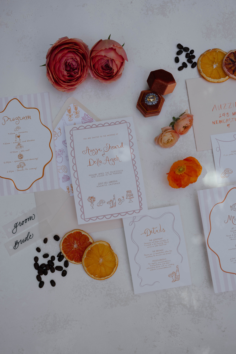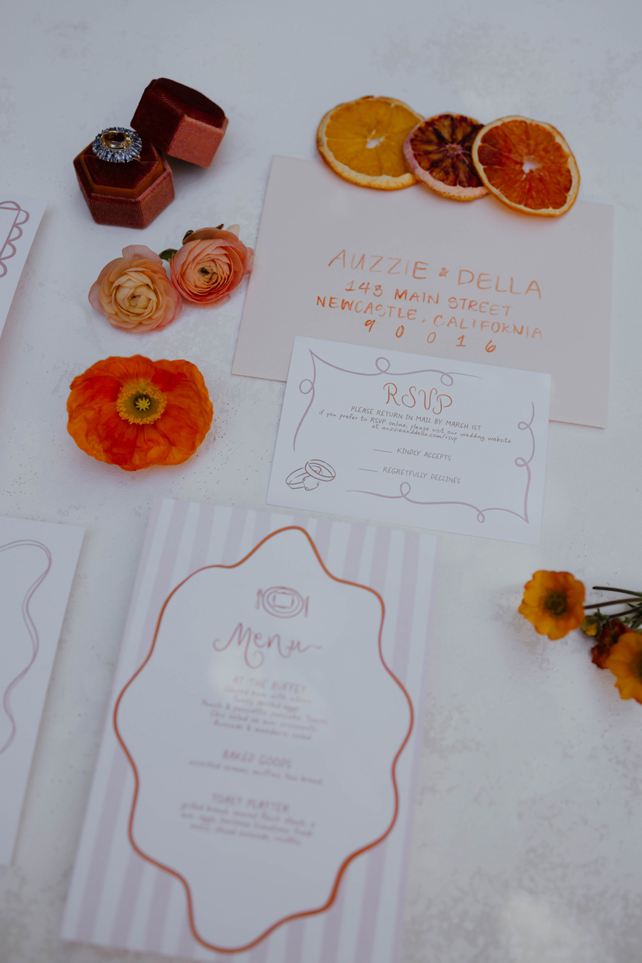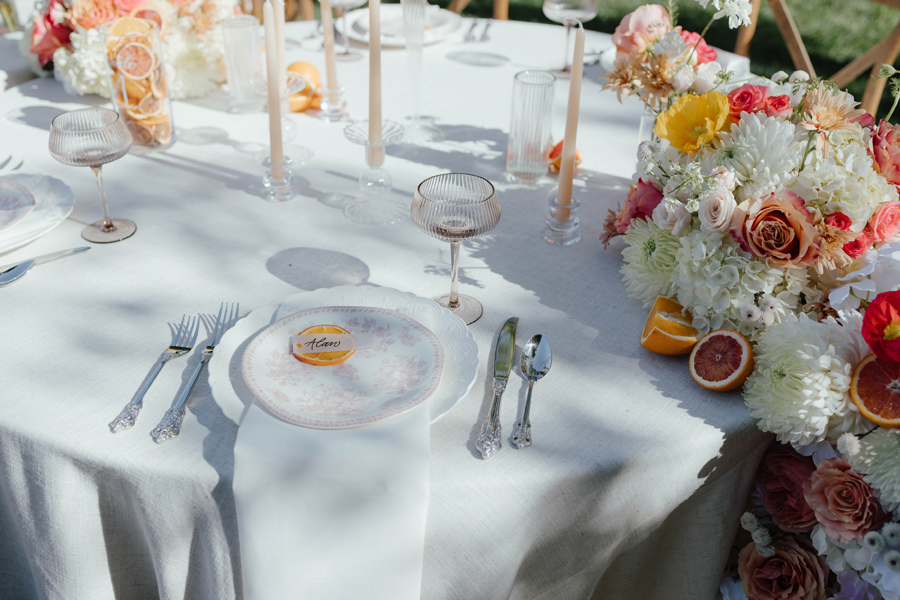 For our “Let’s Do Brunch” shoot, our talented creative team went all out, preparing a feast for the eyes (and yes, for the taste buds too). Think: swoon-worthy cakes, mouthwatering brunch bites, chic tablescapes, bold and blooming florals, a large Vitamin-C dose of citrus, a dreamy ceremony backdrop, playful paperie, stylish signage, and—because no brunch is complete without a buzz—espresso martinis…just to name a few of the oh so tasty details!