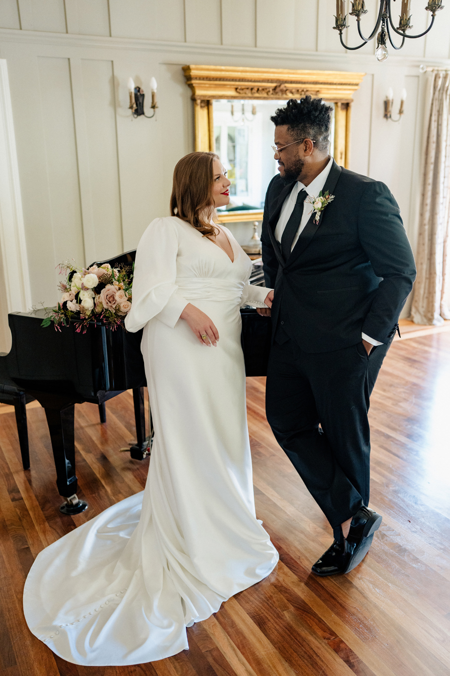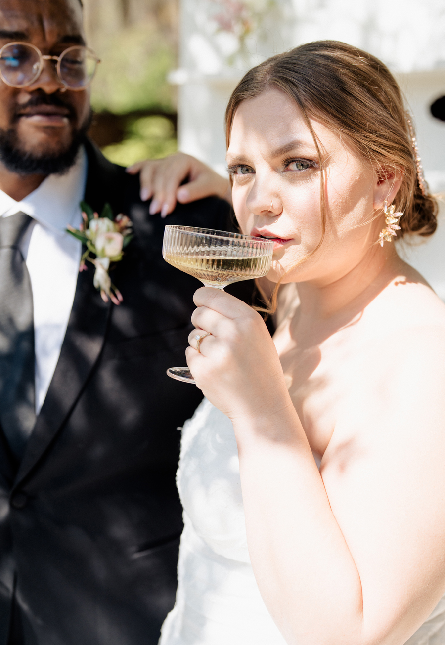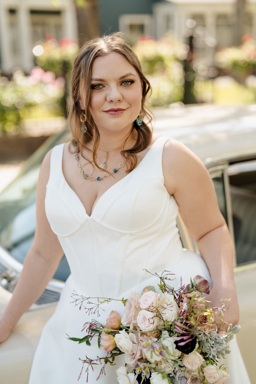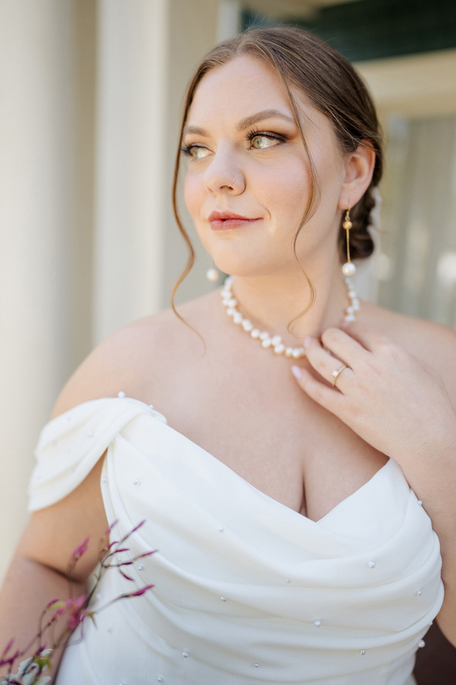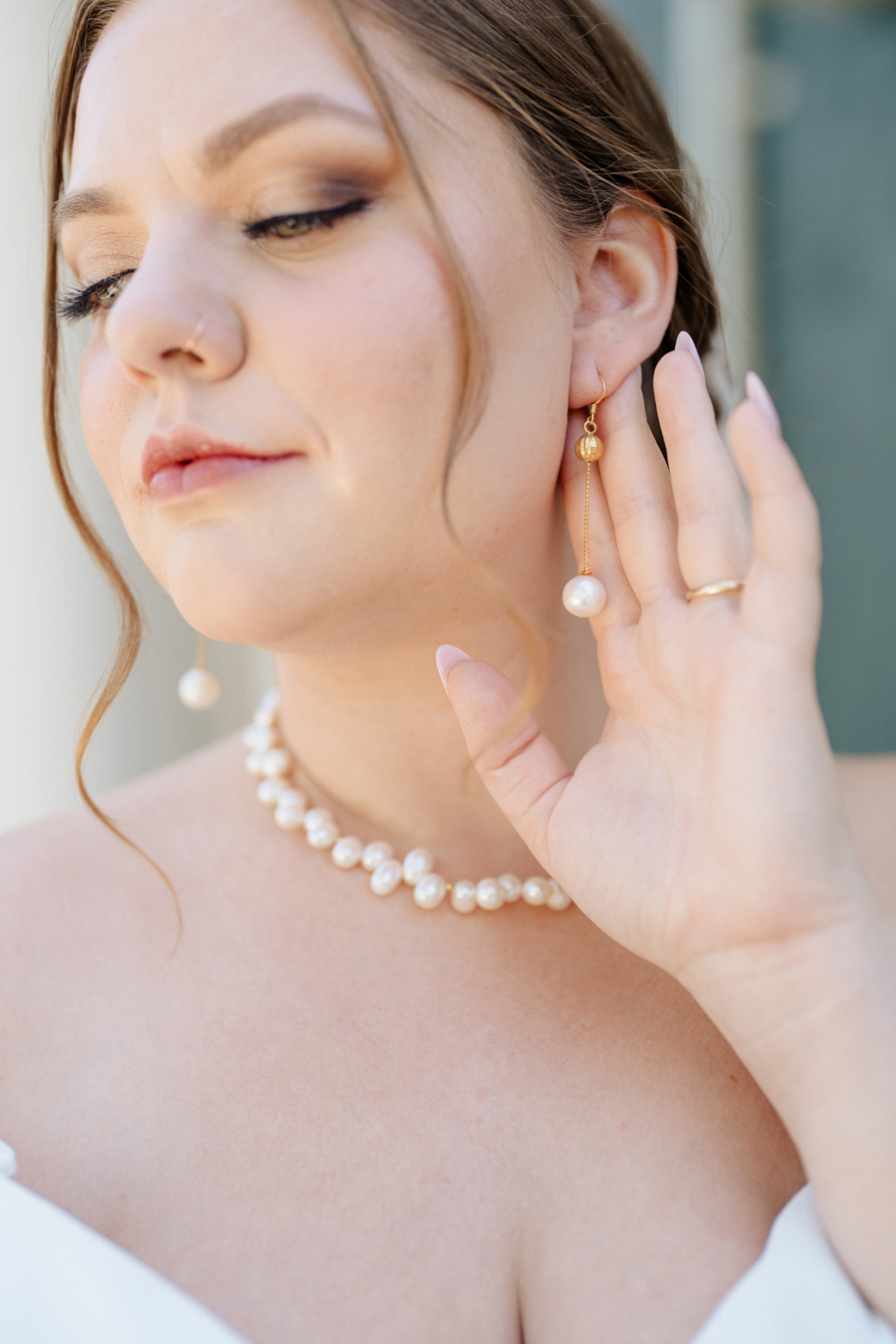On Nicole: Earrings by Renewable Jewels // Ring by Ruby Noir // Gown from Sparkle Bridal Couture