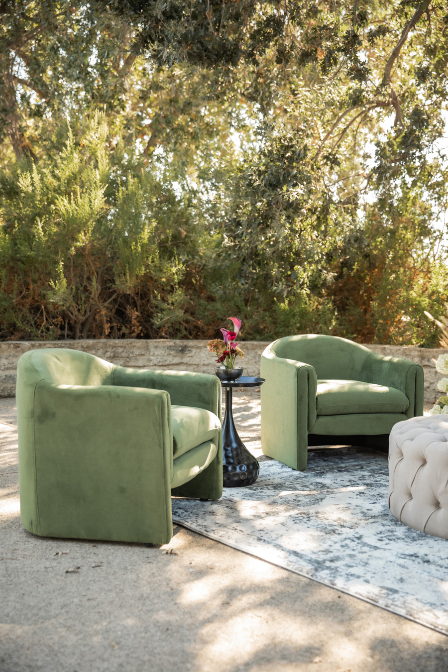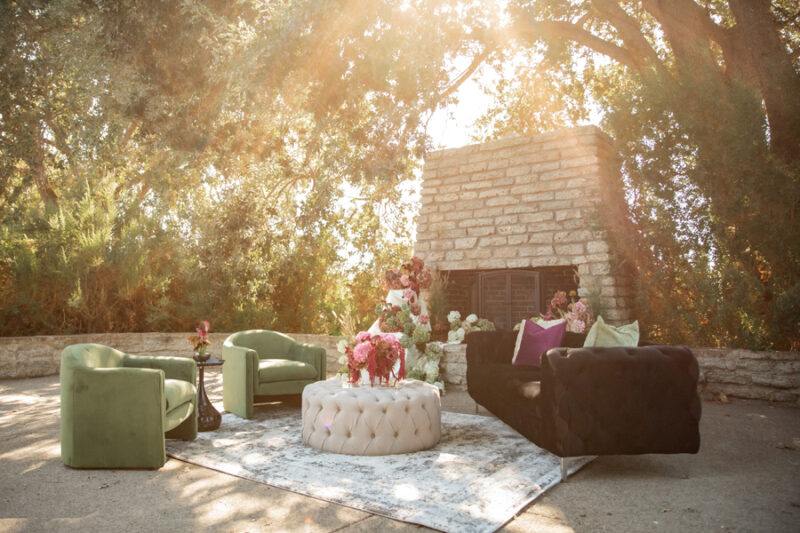 The shoot’s designer, Emily from Barnswallow, curated an emerging color palette that anchored the entire look and feel of the day. Soft hues and textured linens along with lush florals created an inviting atmosphere, while elegant furniture and curated décor pieces brought refined character to each vignette—top it off with delicious treats and gorgeous bespoke paperie and signage, and this shoot was the perfect blend of old-world grace and contemporary design sensibility.