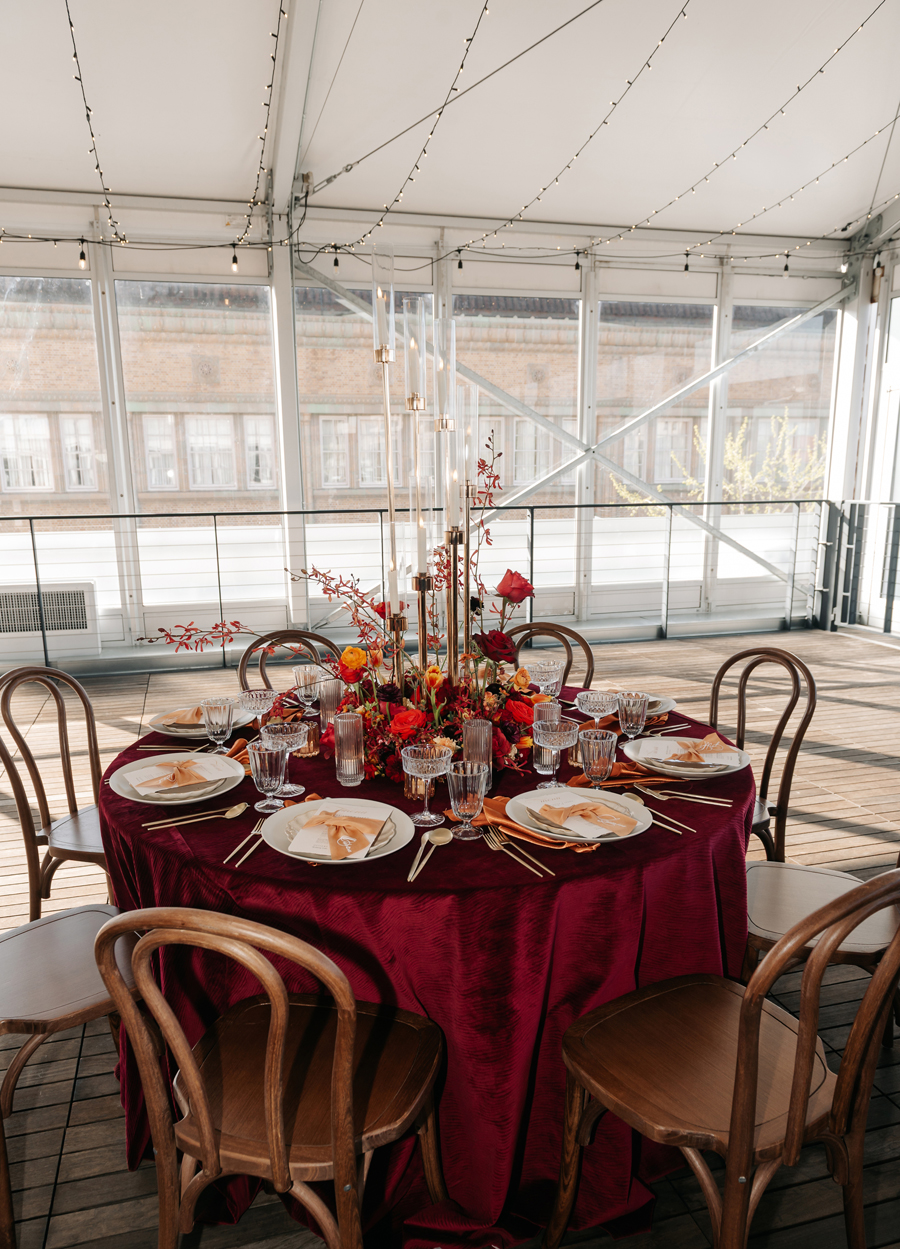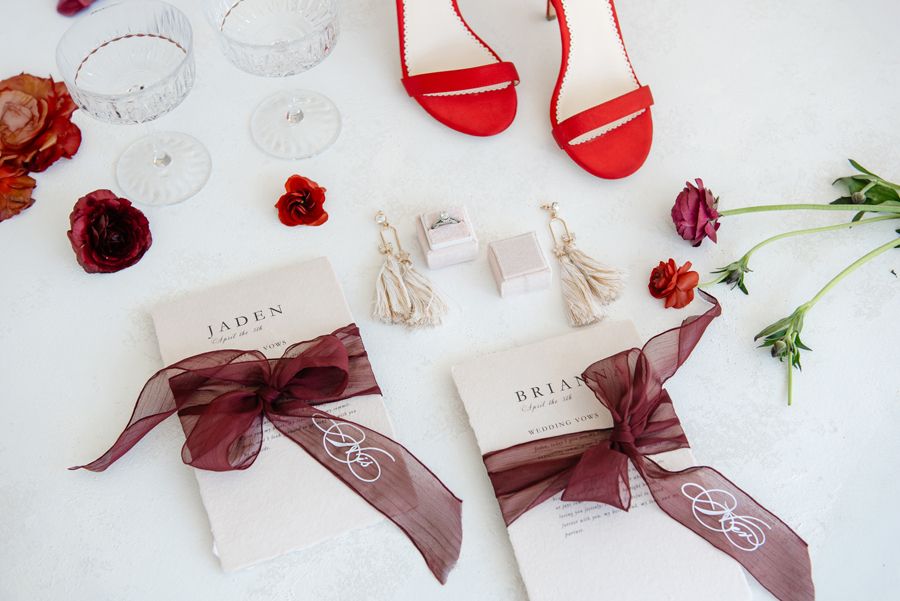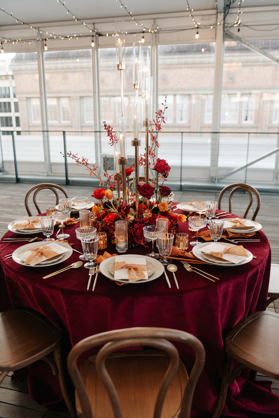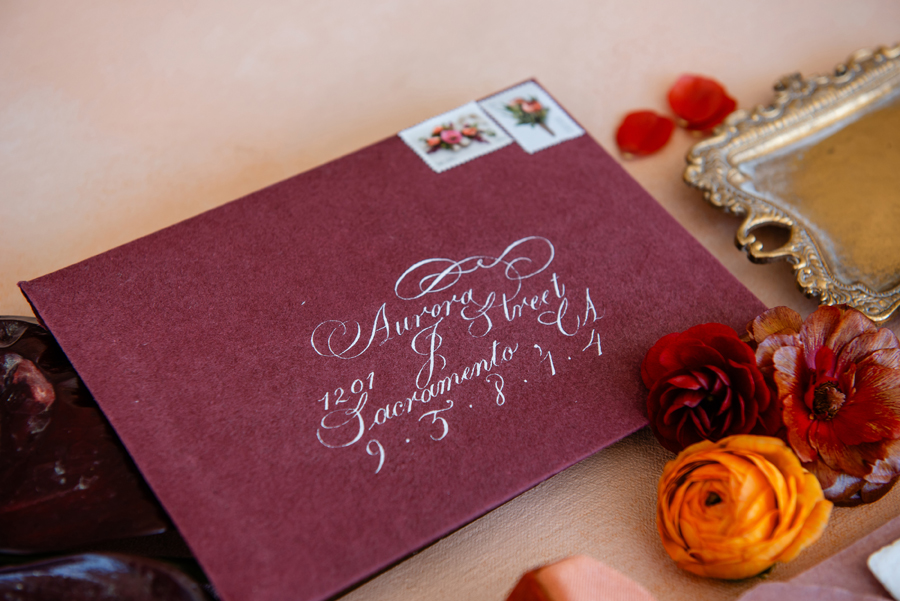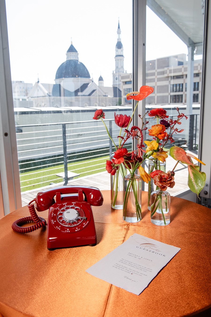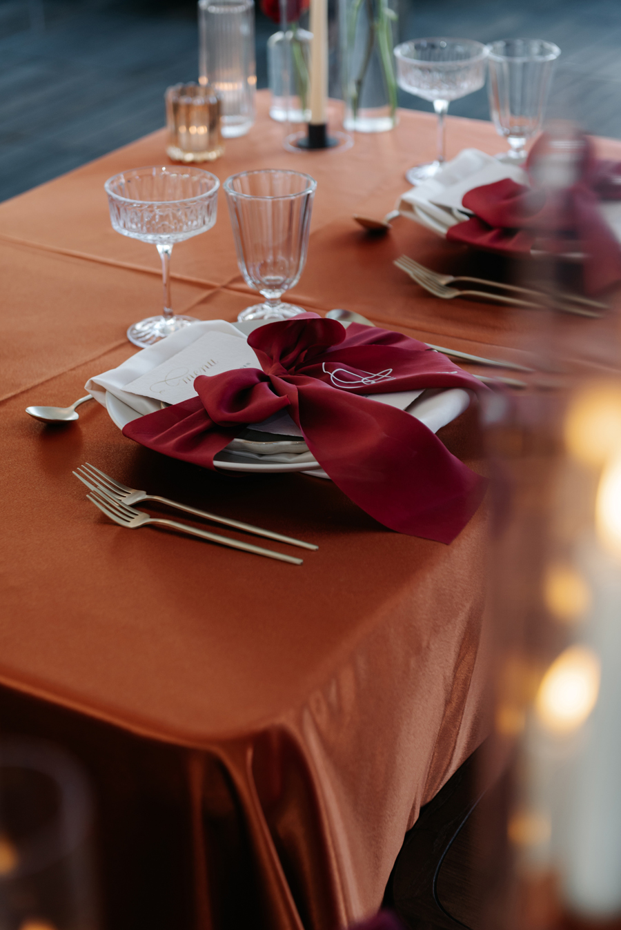 Details. Details. And more details. We cannot get enough of them! And for our “Love on Fire” styled shoot, the details were, well, FIRE! From the deep crimson and burnt orange linens and sweetheart table backdrop (um, hello you gorgeous draping, you!) to the vivid red phone (as our audio guestbook—we love this trend!), the breathtaking custom paperie and calligraphy, the exquisite rentals and the rich fall-influenced palette of lush florals, along with the scrumptious curated cuisine (did you say filet mignon and diver scallops?! Yes, please!), delicious curated cocktails, and ending with enticing ice cream (we were all screaming for the ice cream!) and affogatos, our talented creative team understood the assignment, 💯! Feast your eyes on all of these delicious details!