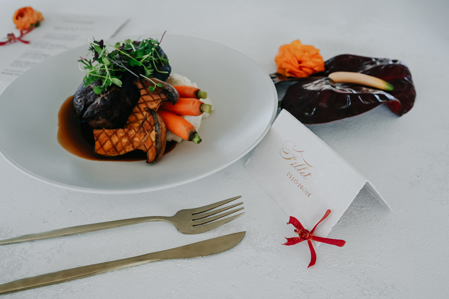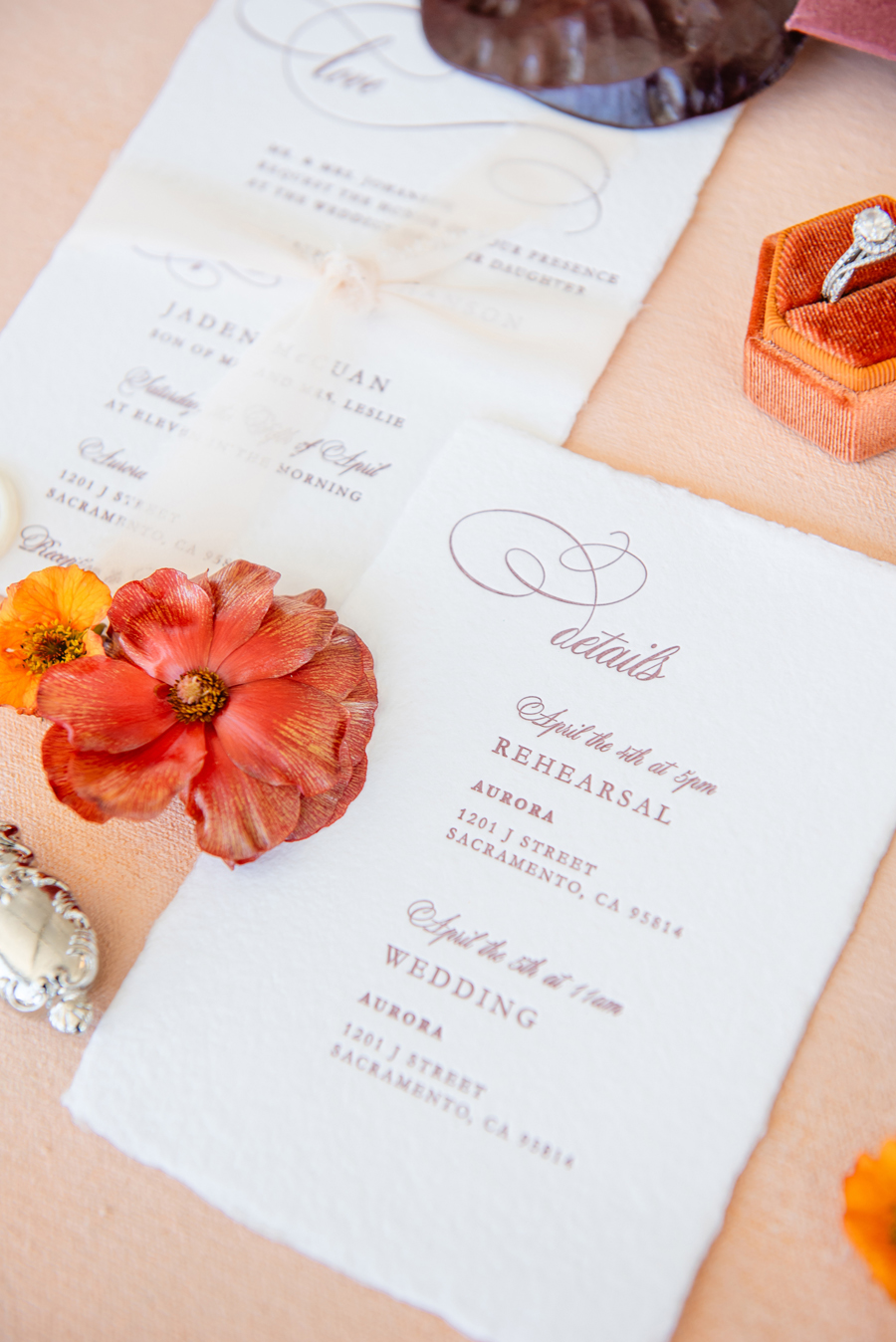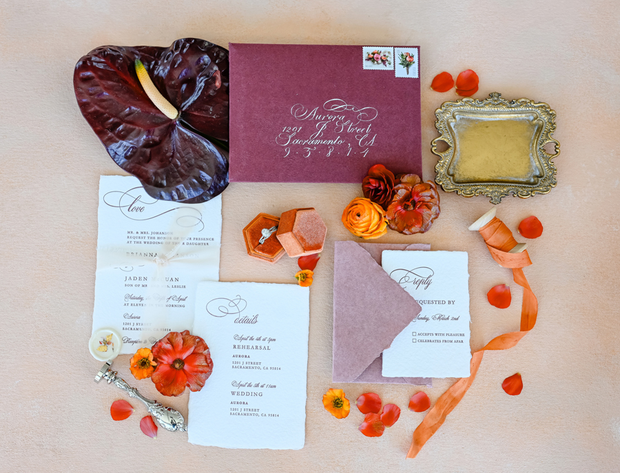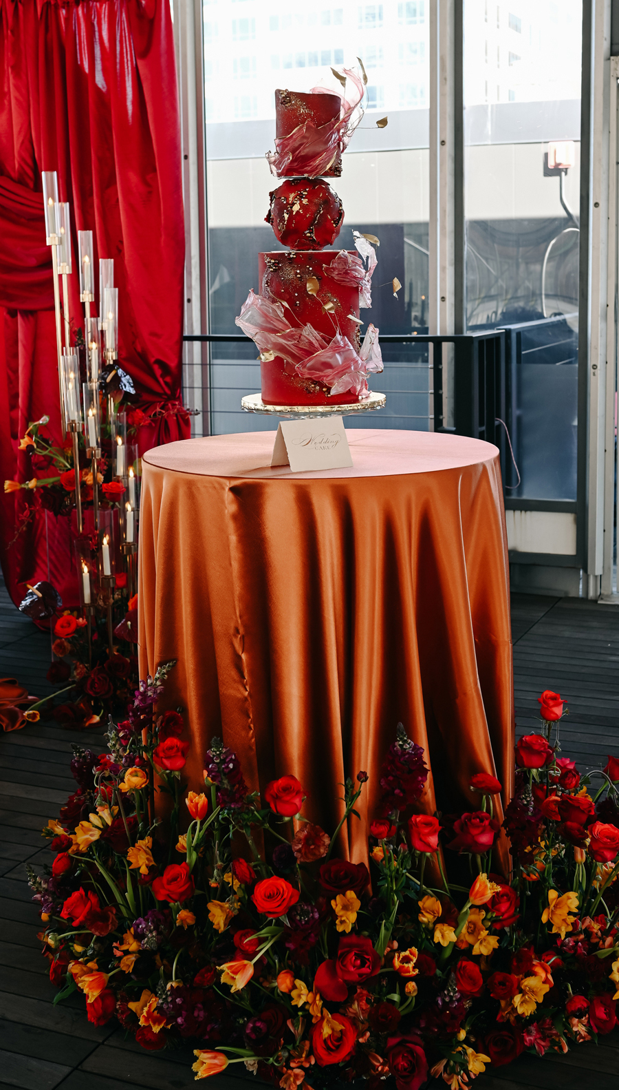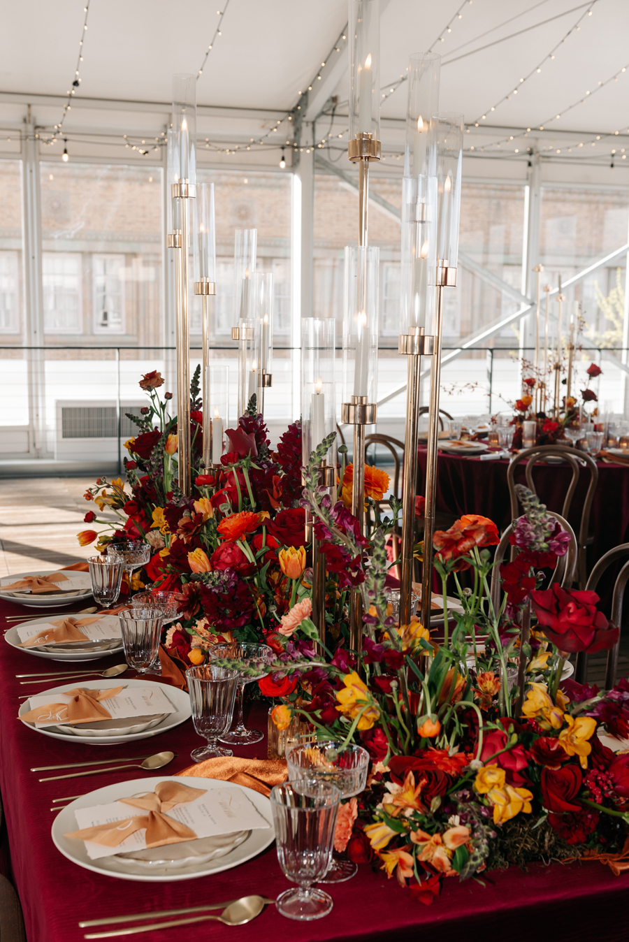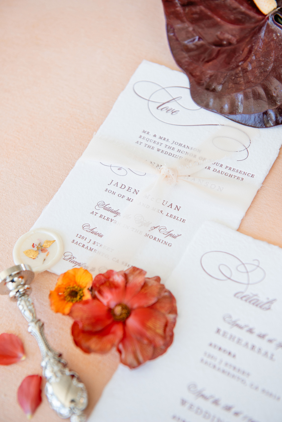 Details. Details. And more details. We cannot get enough of them! And for our “Love on Fire” styled shoot, the details were, well, FIRE! From the deep crimson and burnt orange linens and sweetheart table backdrop (um, hello you gorgeous draping, you!) to the vivid red phone (as our audio guestbook—we love this trend!), the breathtaking custom paperie and calligraphy, the exquisite rentals and the rich fall-influenced palette of lush florals, along with the scrumptious curated cuisine (did you say filet mignon and diver scallops?! Yes, please!), delicious curated cocktails, and ending with enticing ice cream (we were all screaming for the ice cream!) and affogatos, our talented creative team understood the assignment, 💯! Feast your eyes on all of these delicious details!