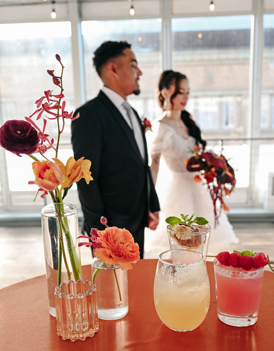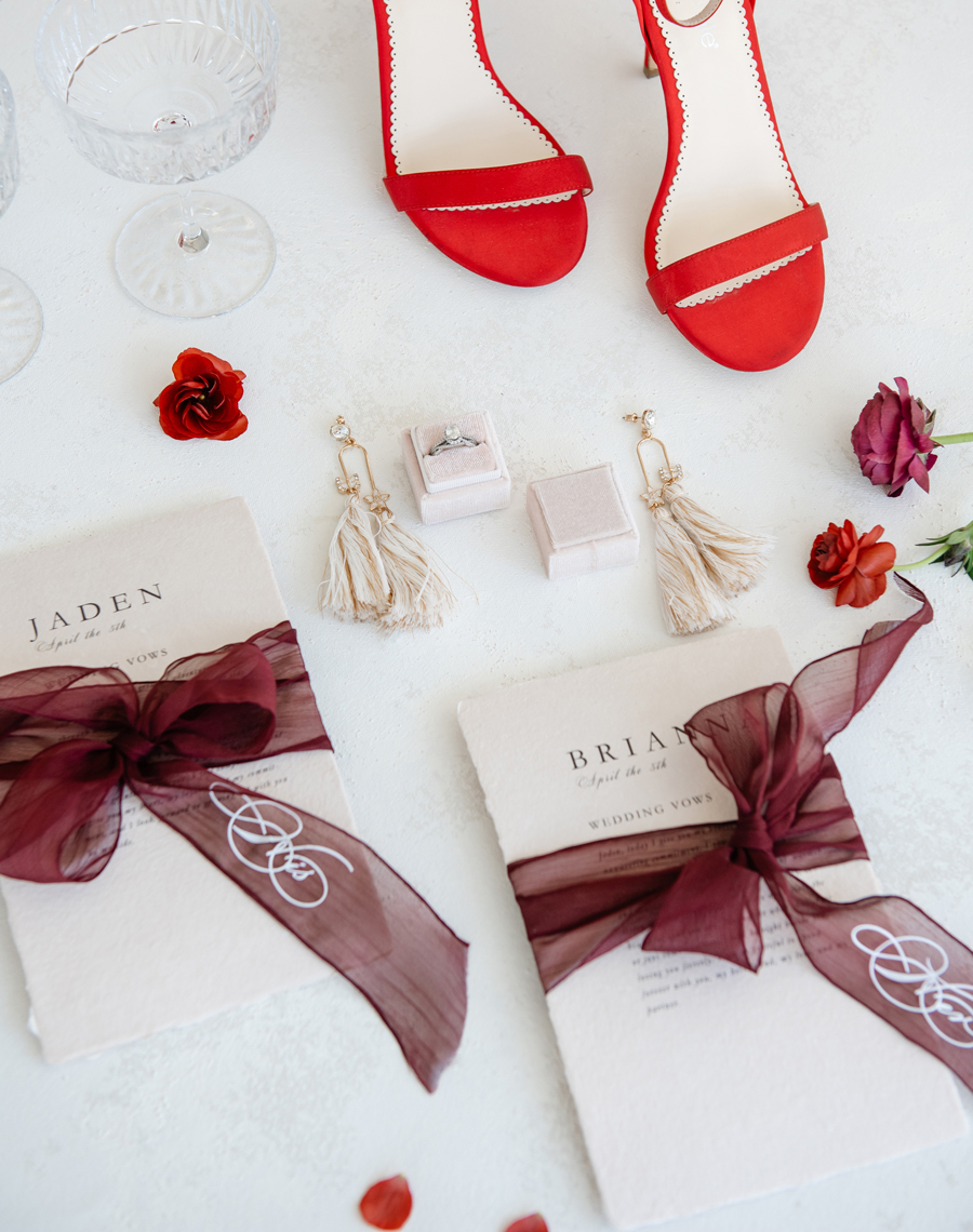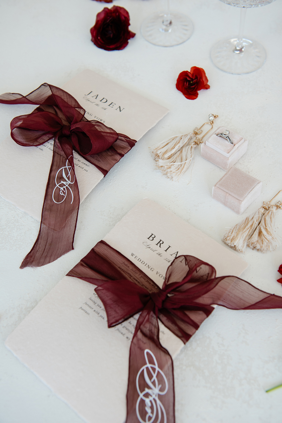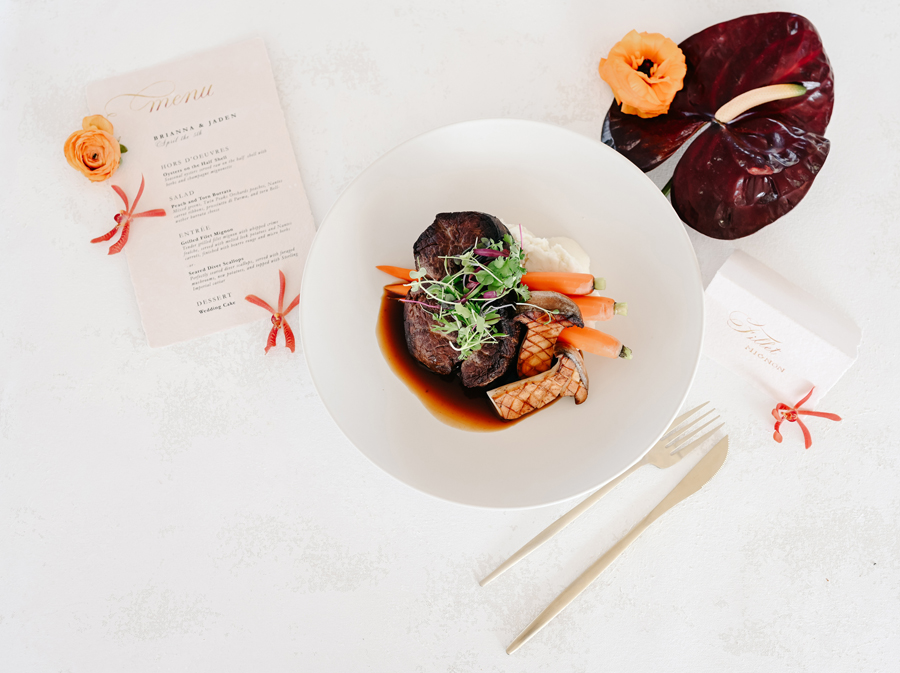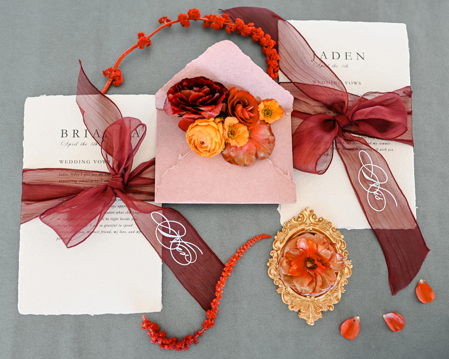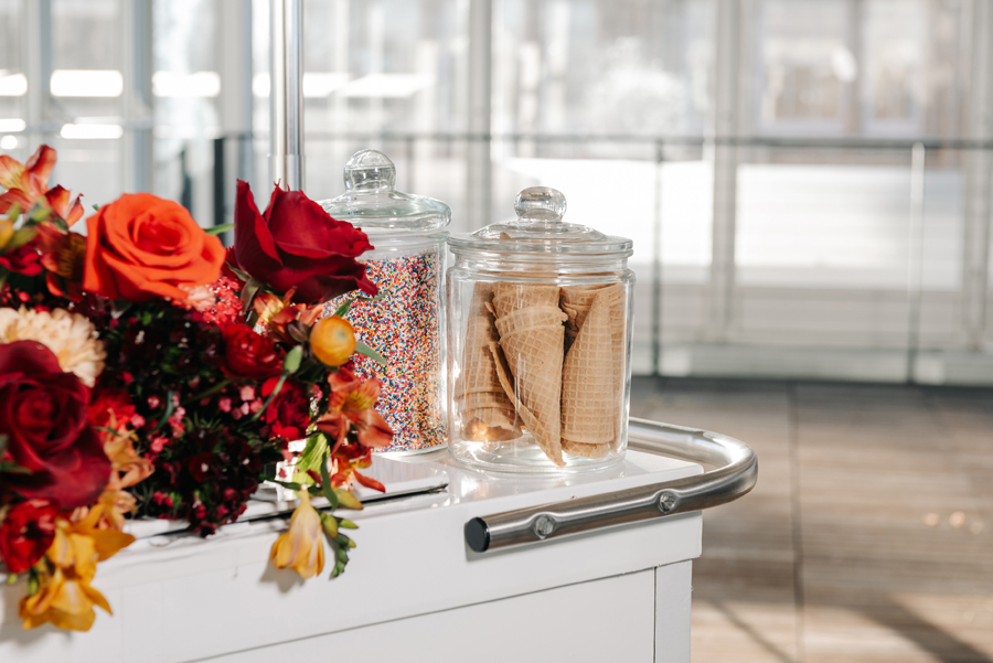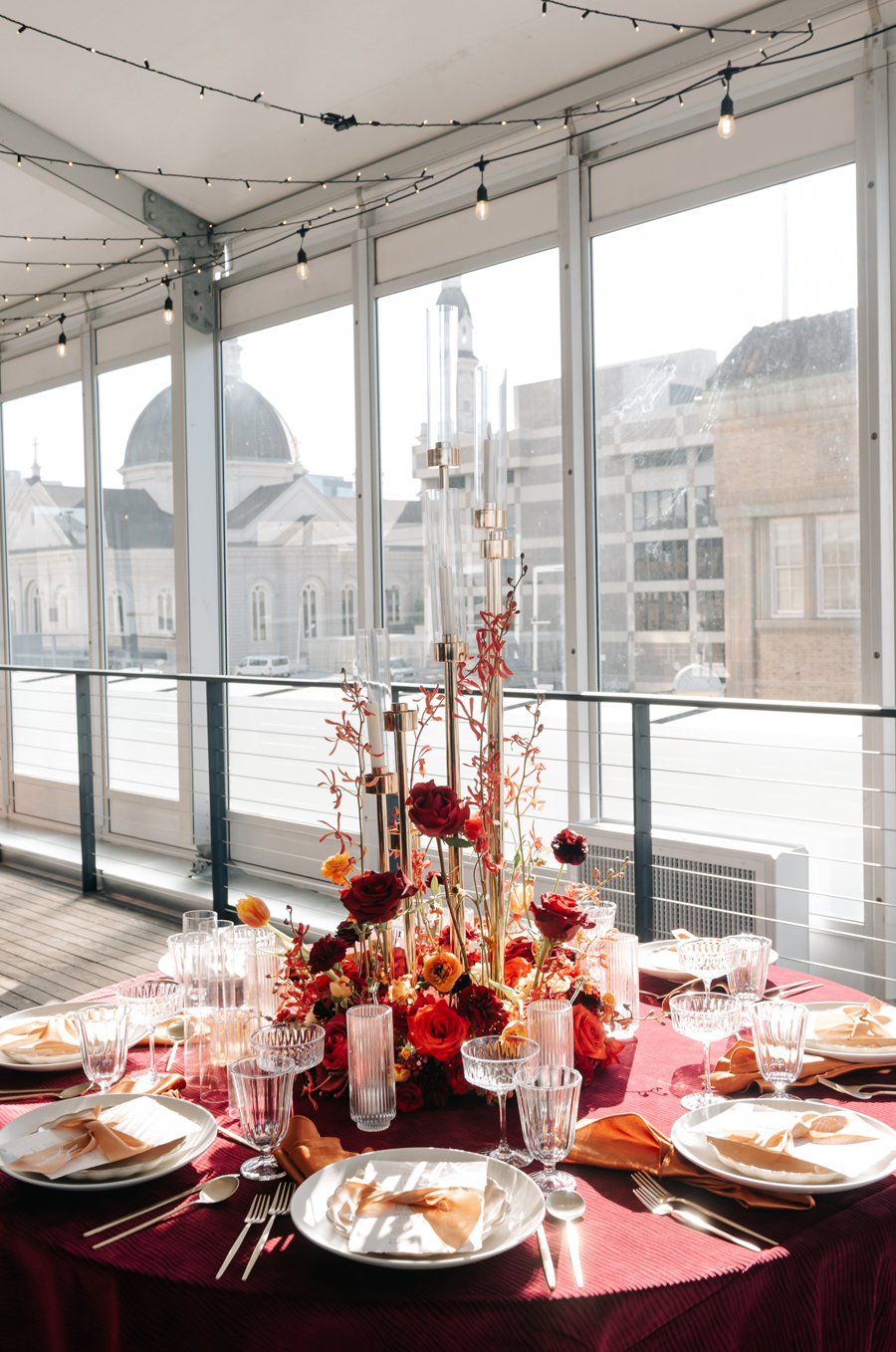 Details. Details. And more details. We cannot get enough of them! And for our “Love on Fire” styled shoot, the details were, well, FIRE! From the deep crimson and burnt orange linens and sweetheart table backdrop (um, hello you gorgeous draping, you!) to the vivid red phone (as our audio guestbook—we love this trend!), the breathtaking custom paperie and calligraphy, the exquisite rentals and the rich fall-influenced palette of lush florals, along with the scrumptious curated cuisine (did you say filet mignon and diver scallops?! Yes, please!), delicious curated cocktails, and ending with enticing ice cream (we were all screaming for the ice cream!) and affogatos, our talented creative team understood the assignment, 💯! Feast your eyes on all of these delicious details!