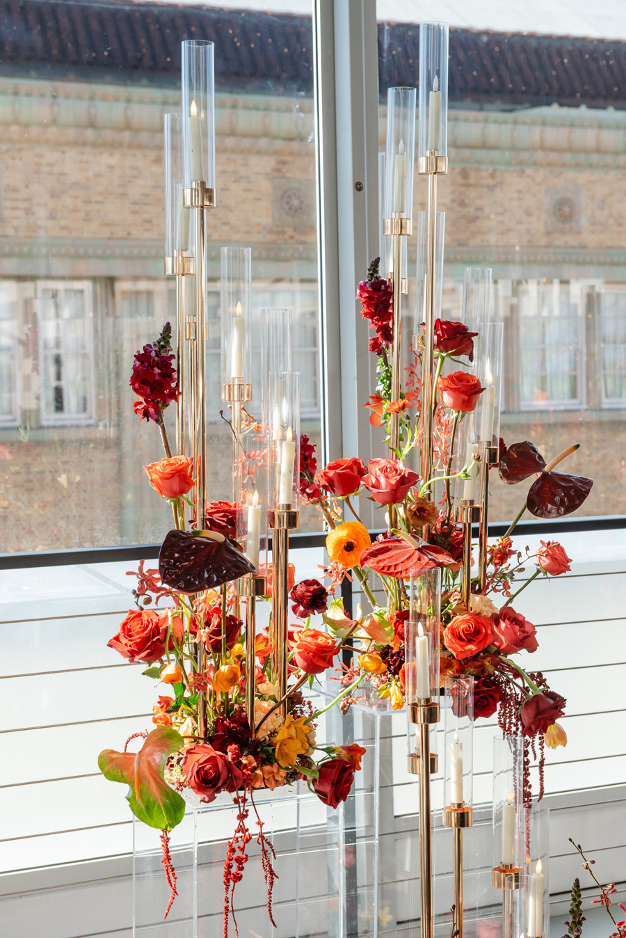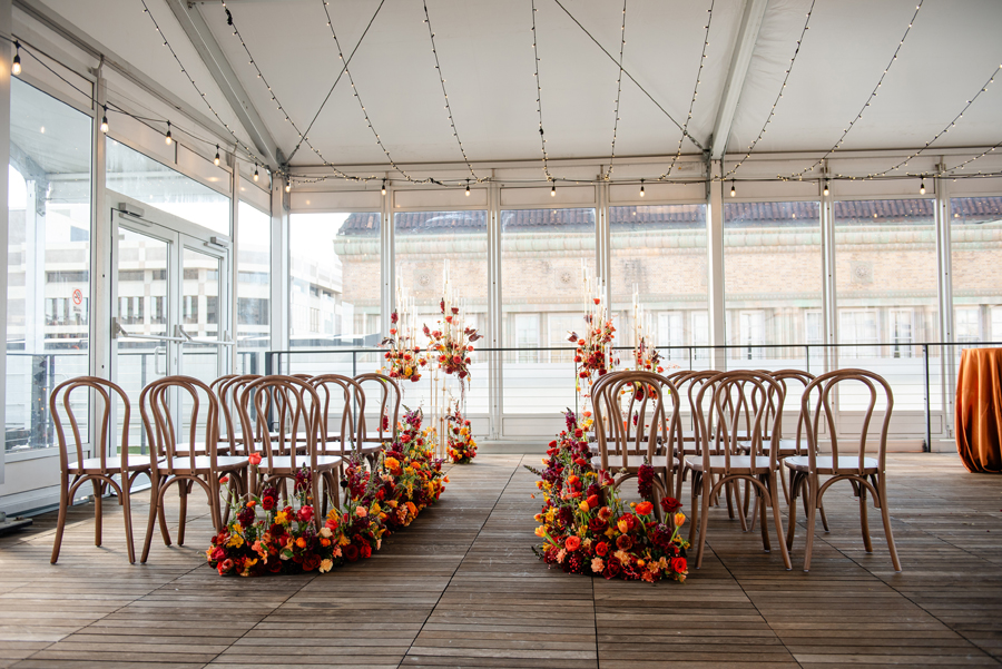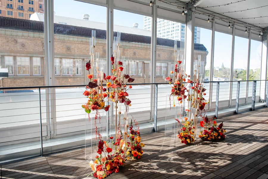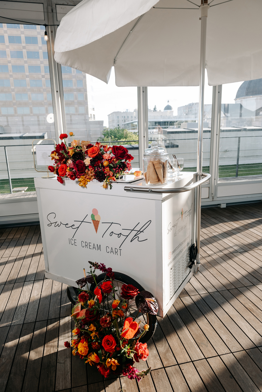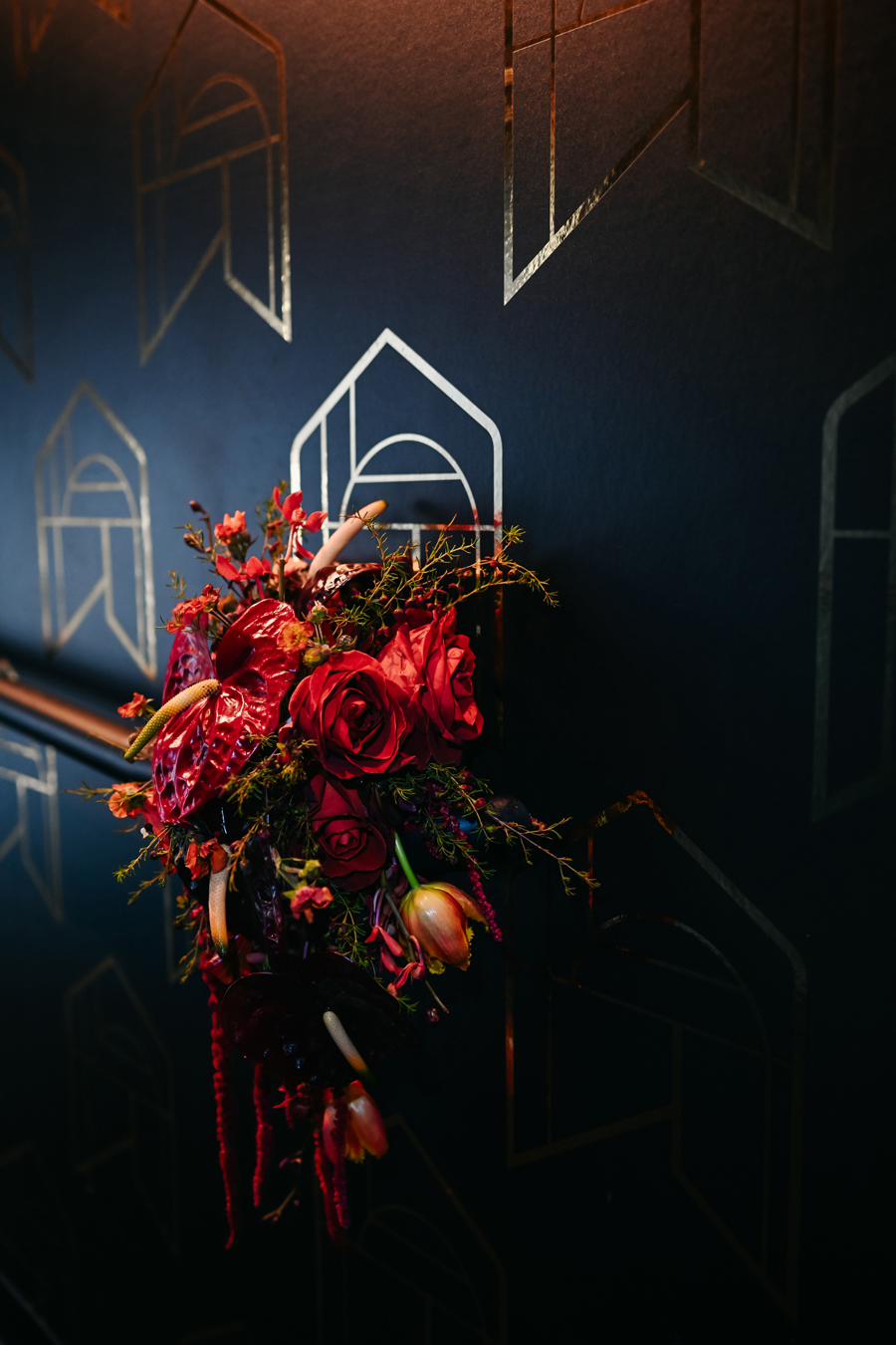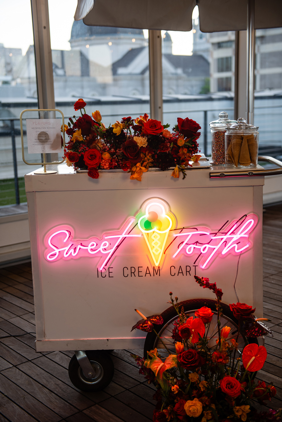 Details. Details. And more details. We cannot get enough of them! And for our “Love on Fire” styled shoot, the details were, well, FIRE! From the deep crimson and burnt orange linens and sweetheart table backdrop (um, hello you gorgeous draping, you!) to the vivid red phone (as our audio guestbook—we love this trend!), the breathtaking custom paperie and calligraphy, the exquisite rentals and the rich fall-influenced palette of lush florals, along with the scrumptious curated cuisine (did you say filet mignon and diver scallops?! Yes, please!), delicious curated cocktails, and ending with enticing ice cream (we were all screaming for the ice cream!) and affogatos, our talented creative team understood the assignment, 💯! Feast your eyes on all of these delicious details!
