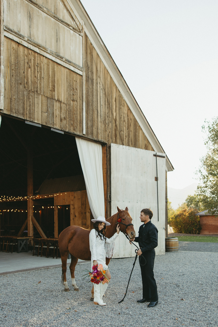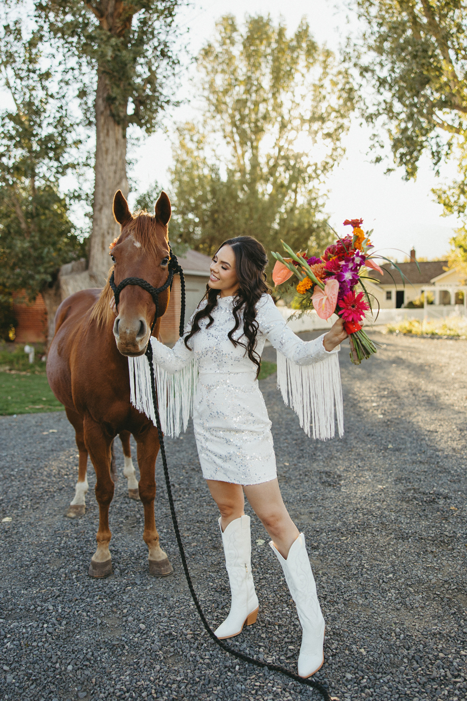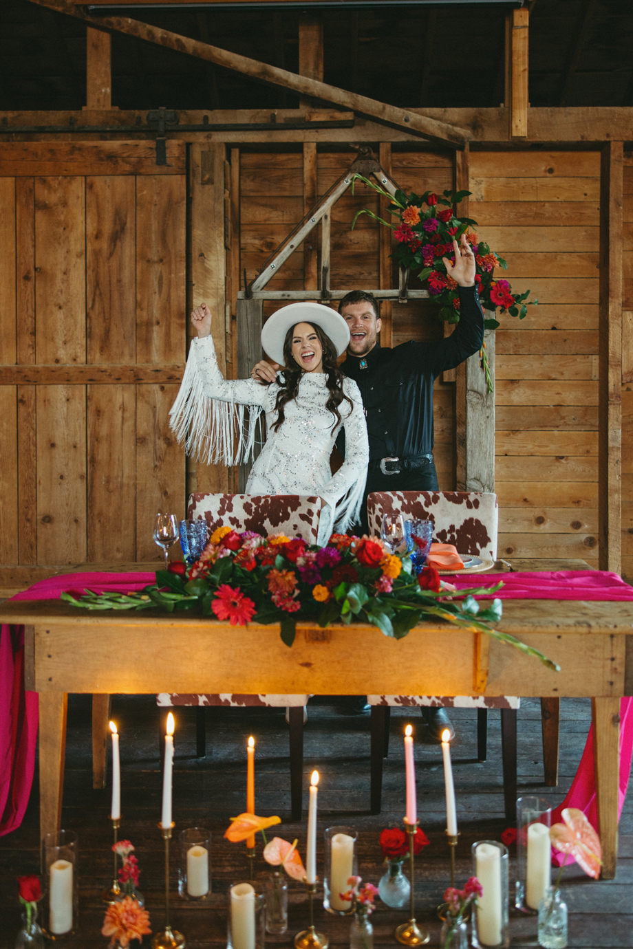 If you love the Modern Cowboy + Cowgirl-Chic vibe as much as we do, you’re going to yelling “Yee Haw” over today’s #StyledShootSunday post—we’re swooning over this colorful + rustic and beautiful submitted styled shoot that we teased the shoot in our current Winter/Spring 2025 issue, and here we’re honored to share even more of the gorgeousness created by this talented team of local wedding professionals.