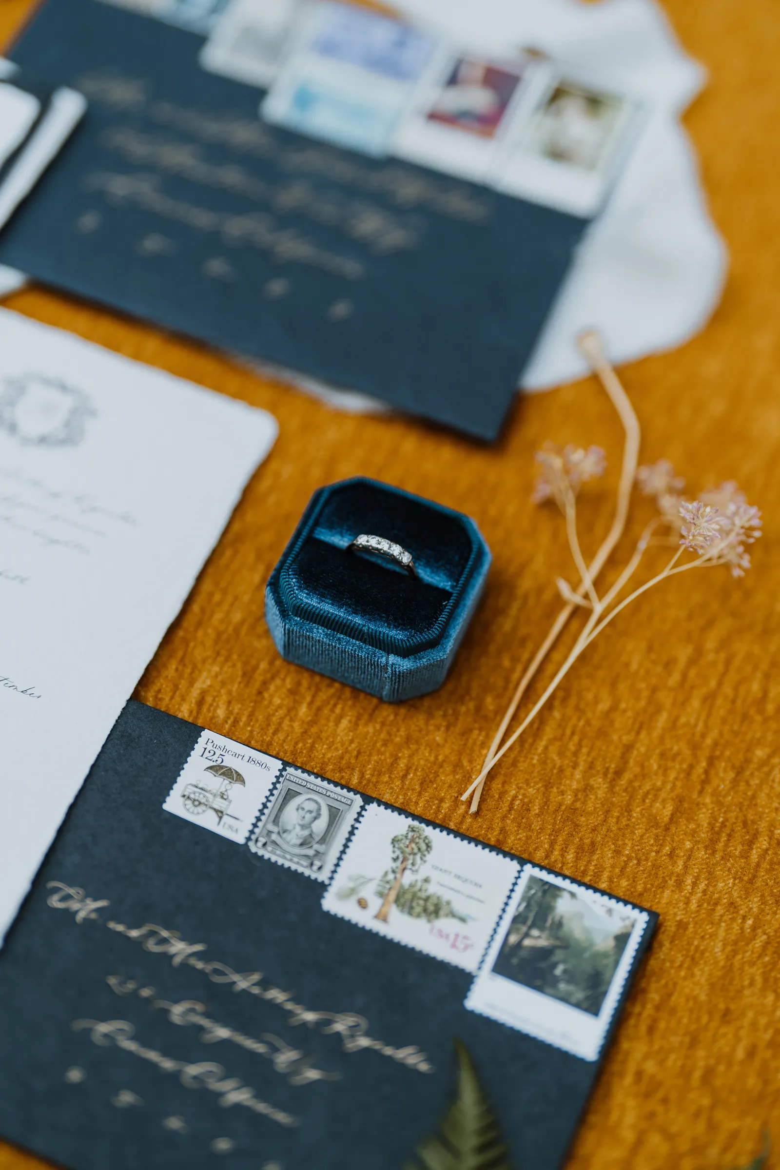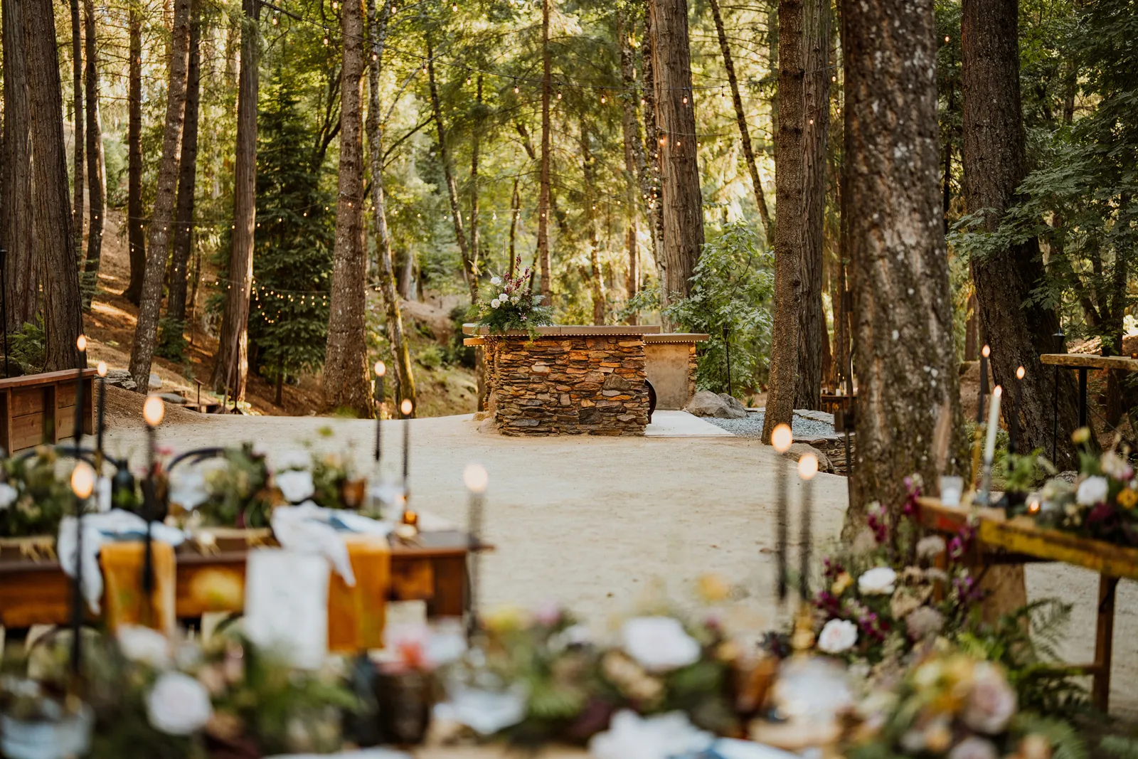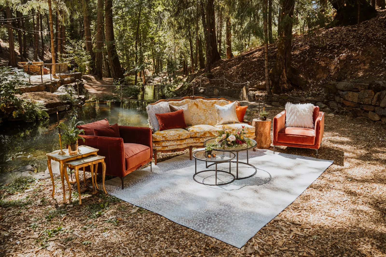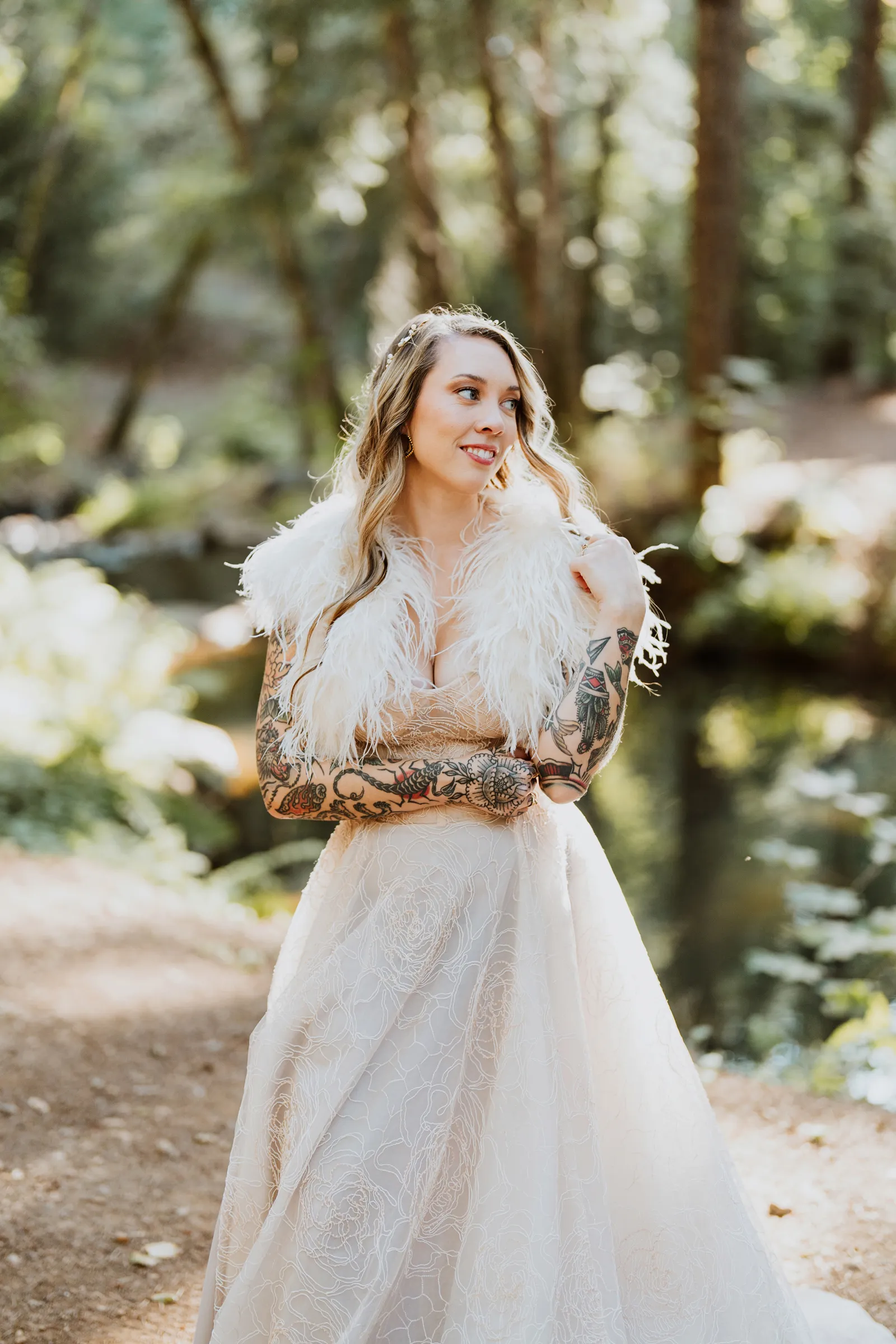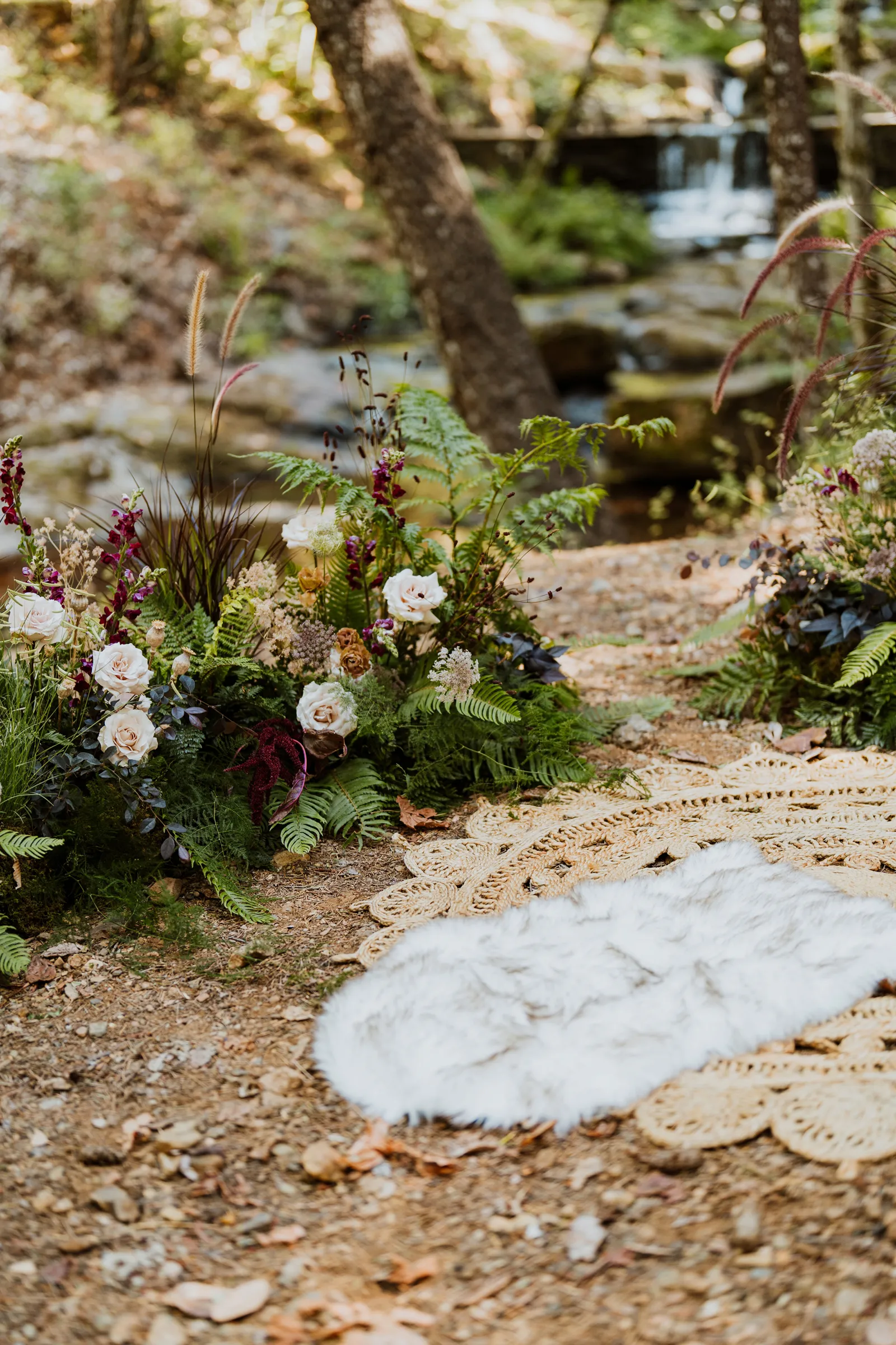 Welcome back to our next installment of Real Weddings Submitted Styled Shoots. Today’s shoot is absolutely brimming with tons of inspiration. With rich purples and black finishes set in the forest (think of a black, multi-tiered cake from Spilled Milk Co., colorful cocktails courtesy of The Parched Poppies, a feathered bolero from Perfect Dress Party and a navy suit from Tuxedo Den) you’re going to get all the romantic, moody vibes from this shoot. Keep scrolling so you can get in on all the amazing details!