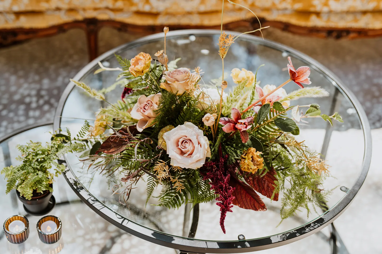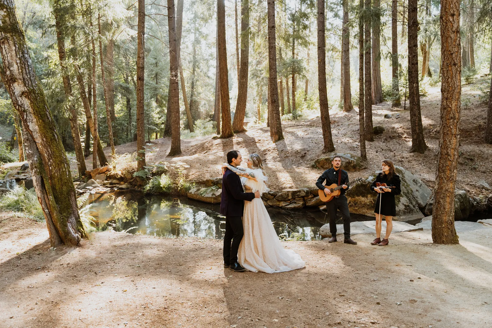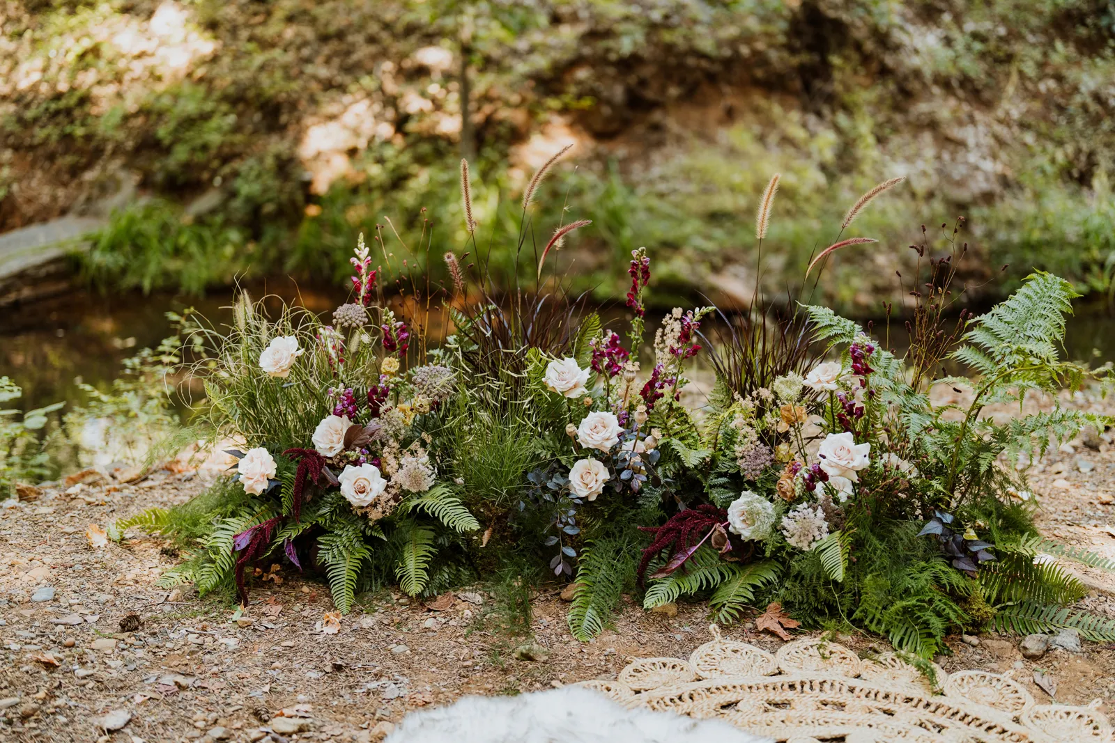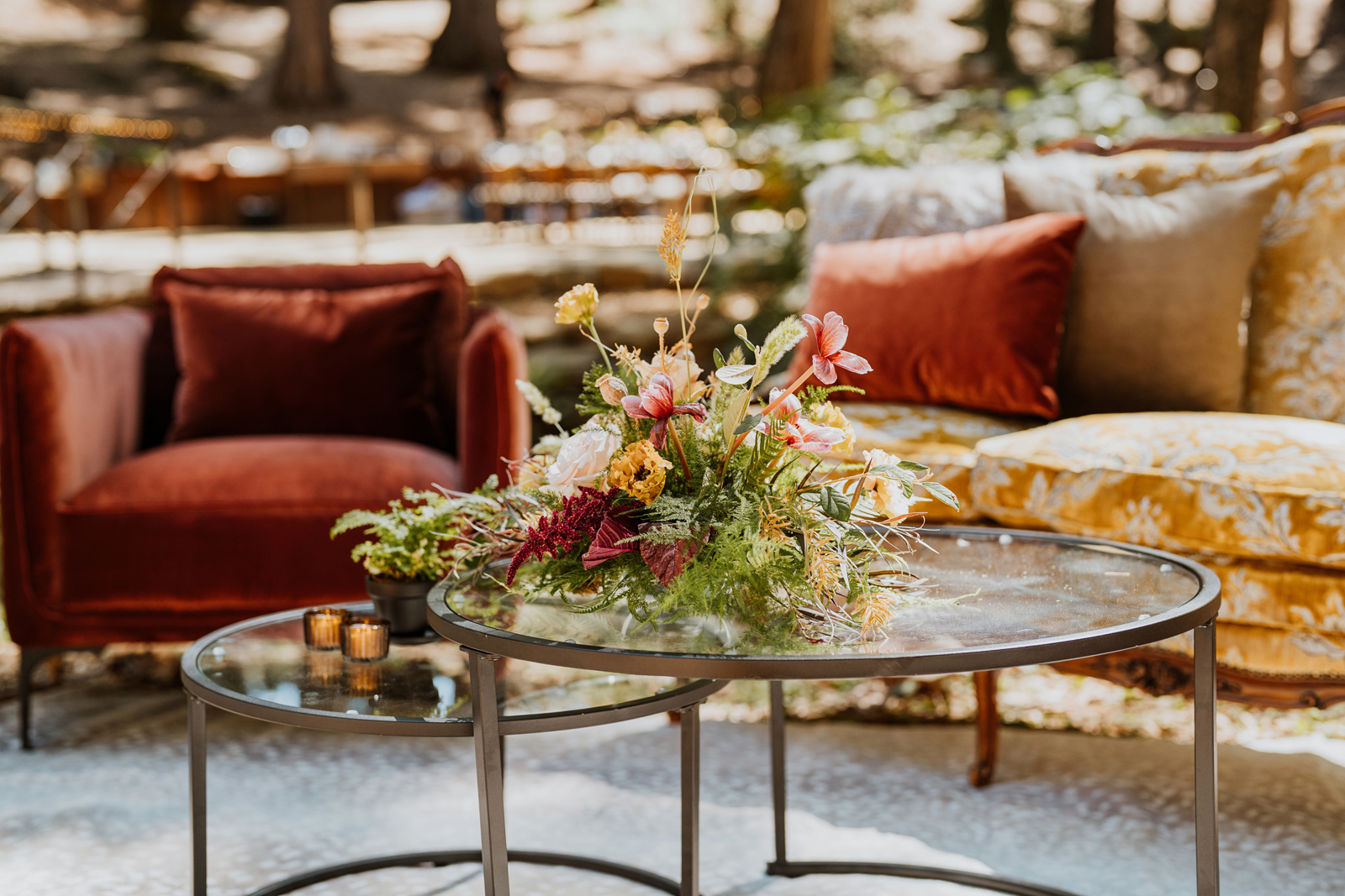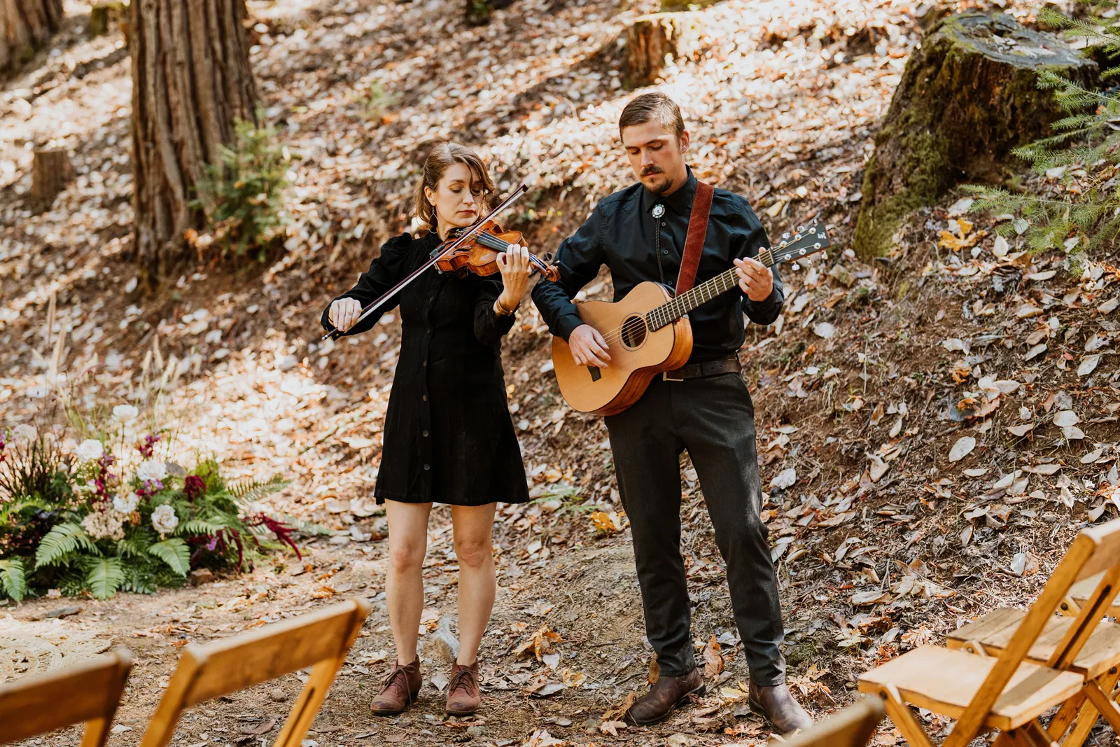 Welcome back to our next installment of Real Weddings Submitted Styled Shoots. Today’s shoot is absolutely brimming with tons of inspiration. With rich purples and black finishes set in the forest (think of a black, multi-tiered cake from Spilled Milk Co., colorful cocktails courtesy of The Parched Poppies, a feathered bolero from Perfect Dress Party and a navy suit from Tuxedo Den) you’re going to get all the romantic, moody vibes from this shoot. Keep scrolling so you can get in on all the amazing details!
