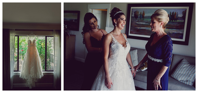 We were able to drive our families vintage light blue 1937 Studebaker, on site at Silverado Resort. My Dad’s brother, my Uncle Sebastian, drove my Mom and I to the ceremony site where I was then escorted to the aisle by my Mom and Uncle. (The Studebaker was my Dad’s family car growing up and was apart of my parents wedding day as well) I framed a quarter size photo of my Dad, and our amazing florist, Erin DeYoung beautifully attached it to my bridal bouquet. So my Dad was right there with me as my incredible Mom, Barbara, walked me down the aisle. I also took a piece of fabric from one of my Dad’s blue dress shirts and had a blue heart shaped piece of fabric sewn into the inside of my bridal gown, right over my heart. Your wedding is one of the happiest days of your life, and while all your loved ones may not be physically present, there are still special ways to honor them so that they are apart of your magical wedding day.