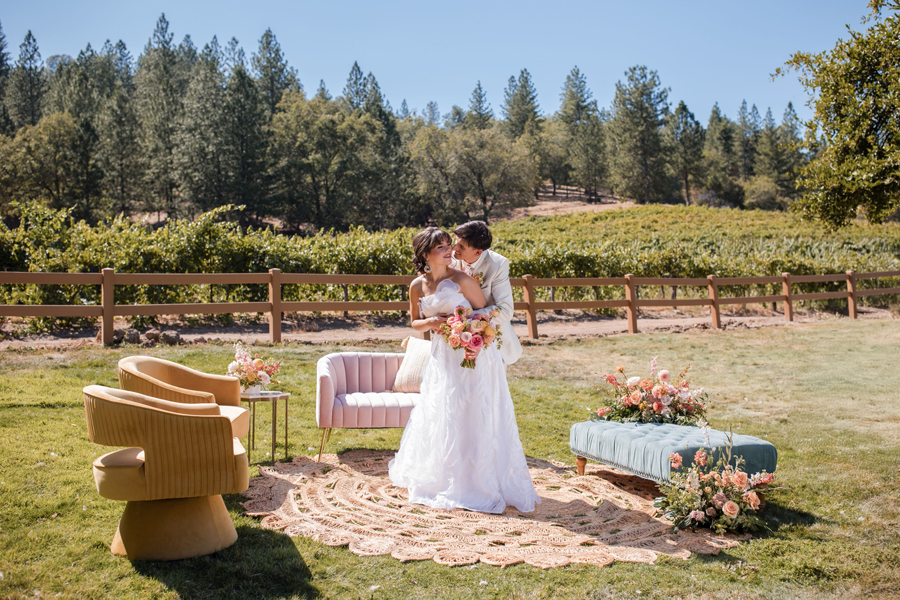Nicoleta: I had no expectations of our theme or concept of the photo shoot as I had no idea what I got us into. But that is why I love the saying, “Never say never!” I would never have thought that this concept would work for us, but after having the photo shoot with the different vignettes, I fell in love with the look and feel and especially the vibrant pops of color—it was so lovely!