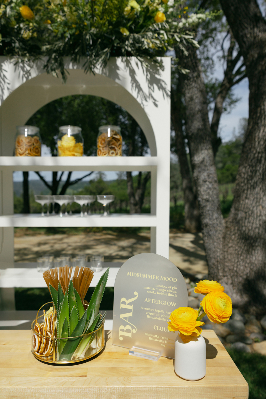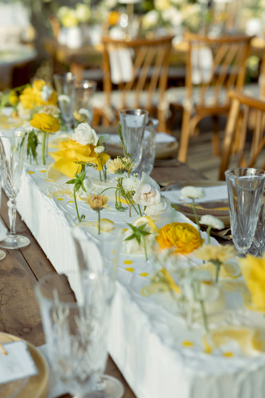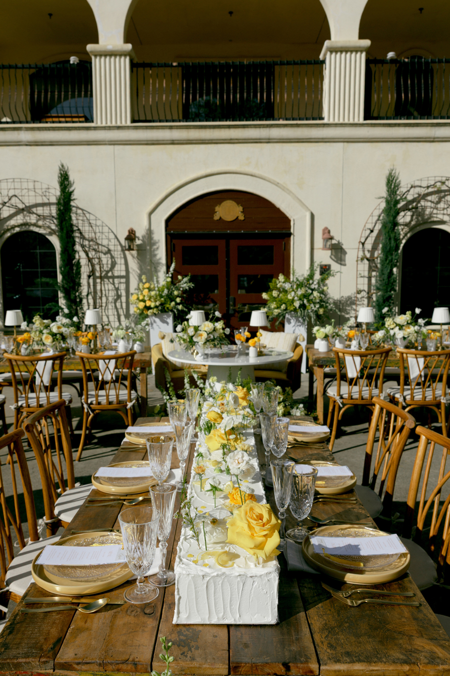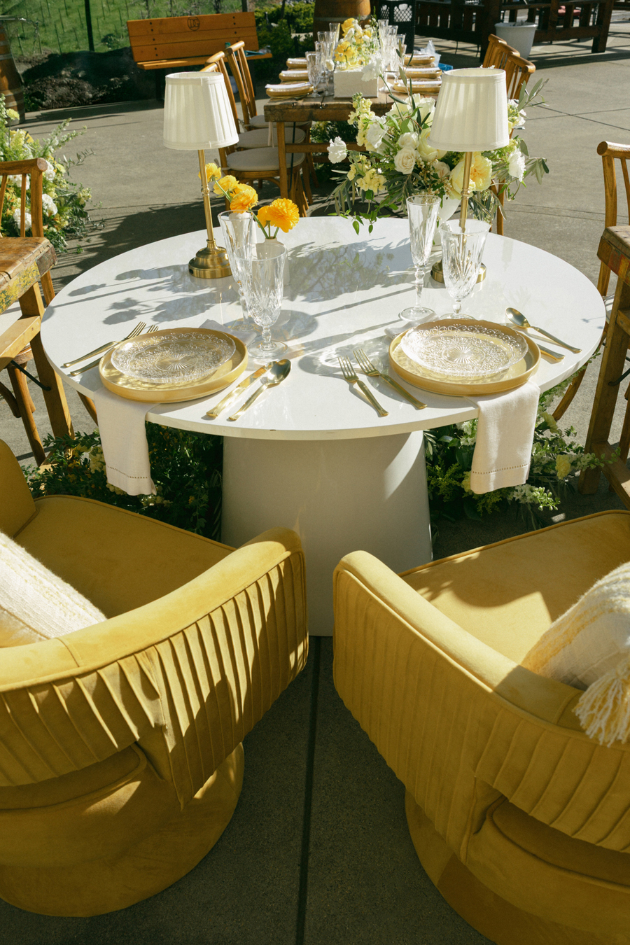 We love details. Lots and lots of details. And the details from our styled shoot, “Oh Happy Day!” made us just that…oh so so so happy—the shoot’s details had it all: rich textiles, lush florals, delicious cocktails (but we posted about that earlier!), gorgeous paperie, beautiful décor, and show-stopping cakes (did you see the five-foot long table cake? Yeah, it’s super cool!), all sprinkled with cheery yellow and lemon accents. Our vendor dream team knocked it out of the park! We’re stoked to share all the pretty details with you here! Enjoy!