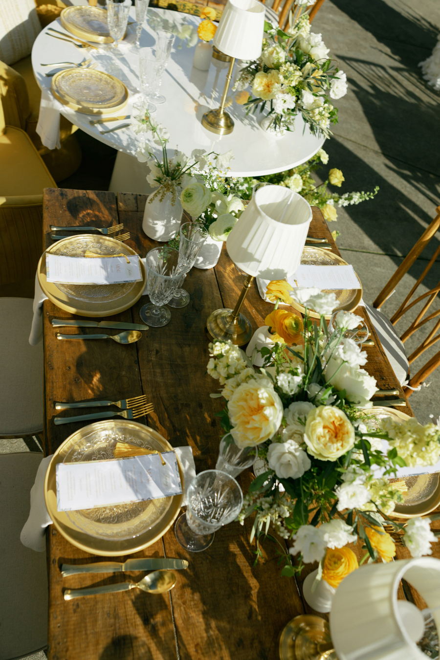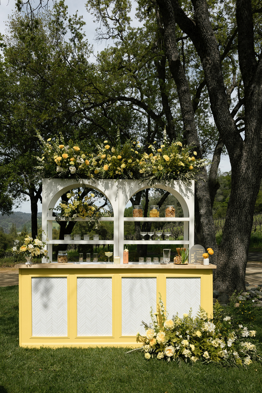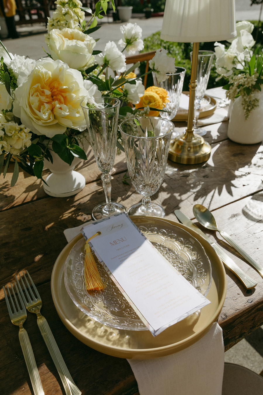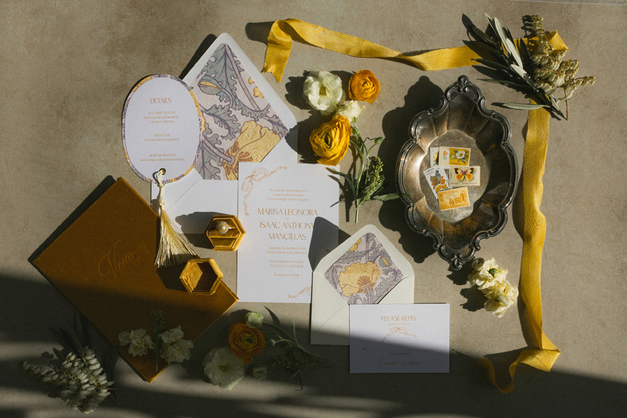 We love details. Lots and lots of details. And the details from our styled shoot, “Oh Happy Day!” made us just that…oh so so so happy—the shoot’s details had it all: rich textiles, lush florals, delicious cocktails (but we posted about that earlier!), gorgeous paperie, beautiful décor, and show-stopping cakes (did you see the five-foot long table cake? Yeah, it’s super cool!), all sprinkled with cheery yellow and lemon accents. Our vendor dream team knocked it out of the park! We’re stoked to share all the pretty details with you here! Enjoy!