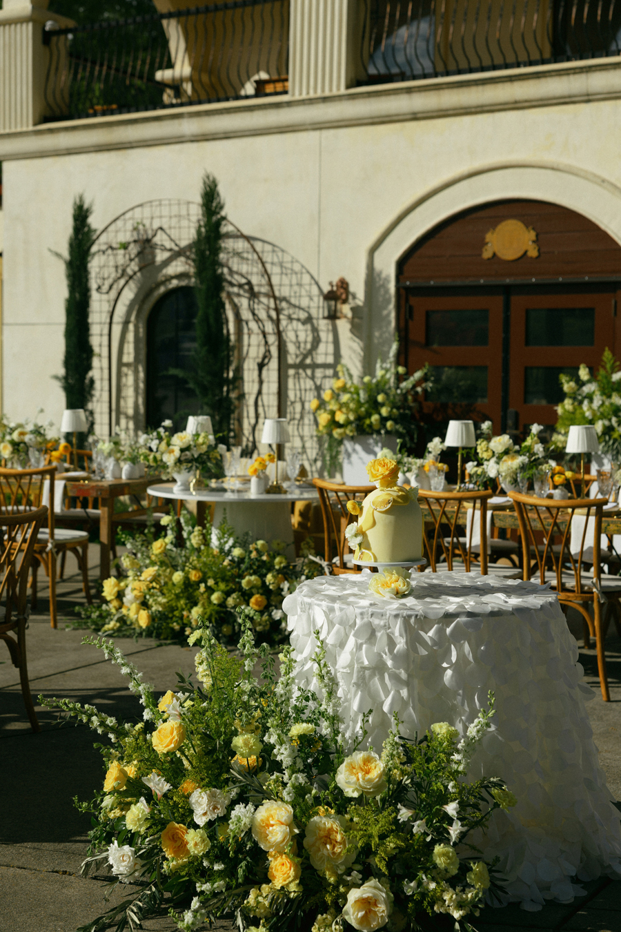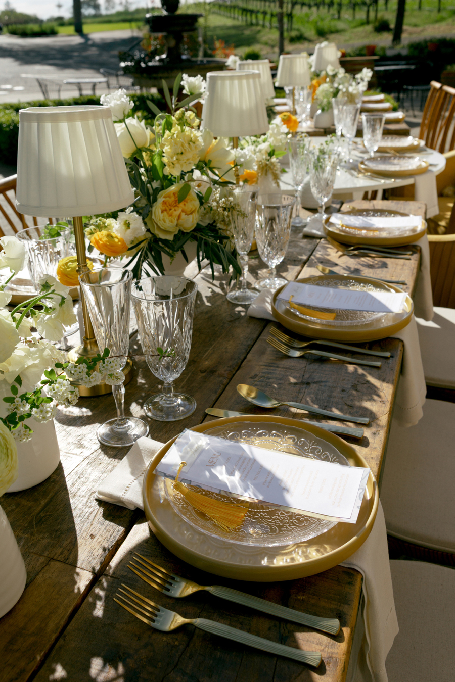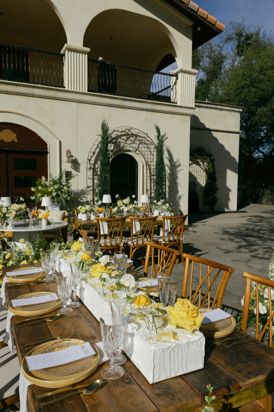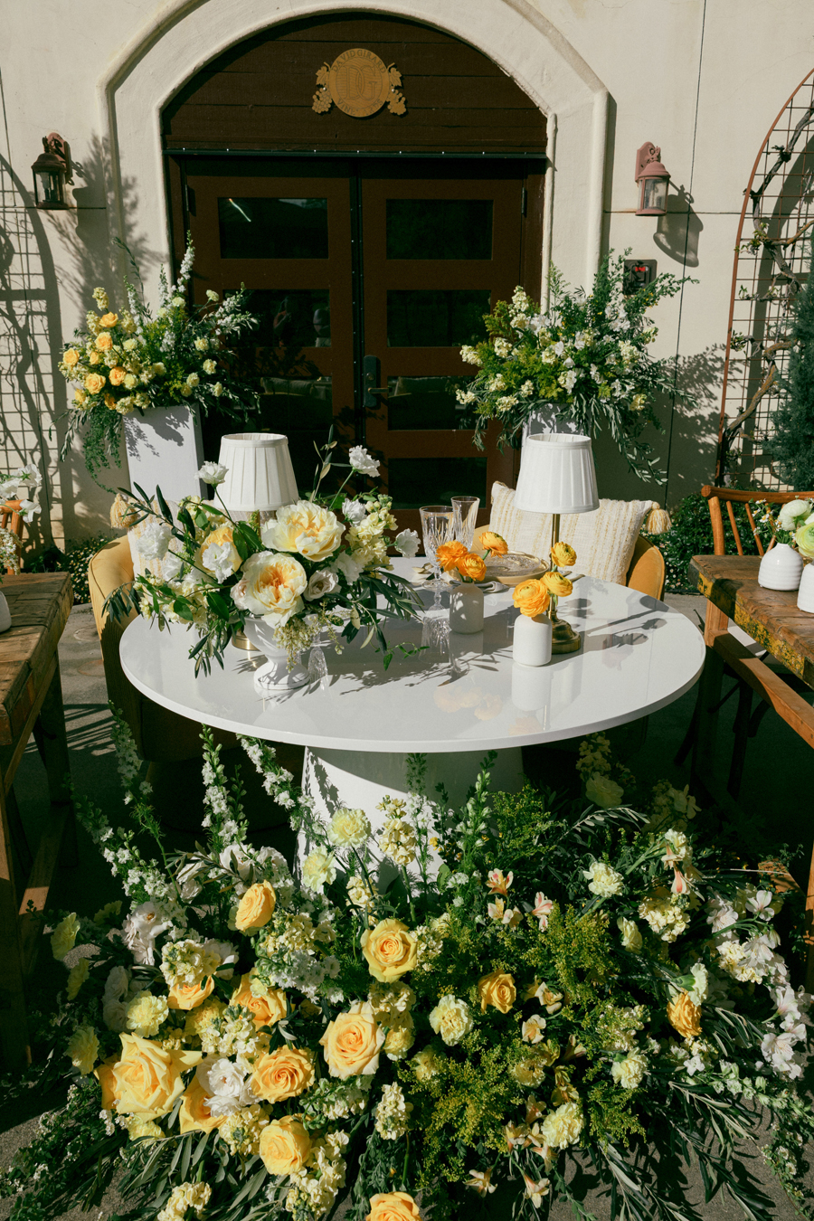 We love details. Lots and lots of details. And the details from our styled shoot, “Oh Happy Day!” made us just that…oh so so so happy—the shoot’s details had it all: rich textiles, lush florals, delicious cocktails (but we posted about that earlier!), gorgeous paperie, beautiful décor, and show-stopping cakes (did you see the five-foot long table cake? Yeah, it’s super cool!), all sprinkled with cheery yellow and lemon accents. Our vendor dream team knocked it out of the park! We’re stoked to share all the pretty details with you here! Enjoy!