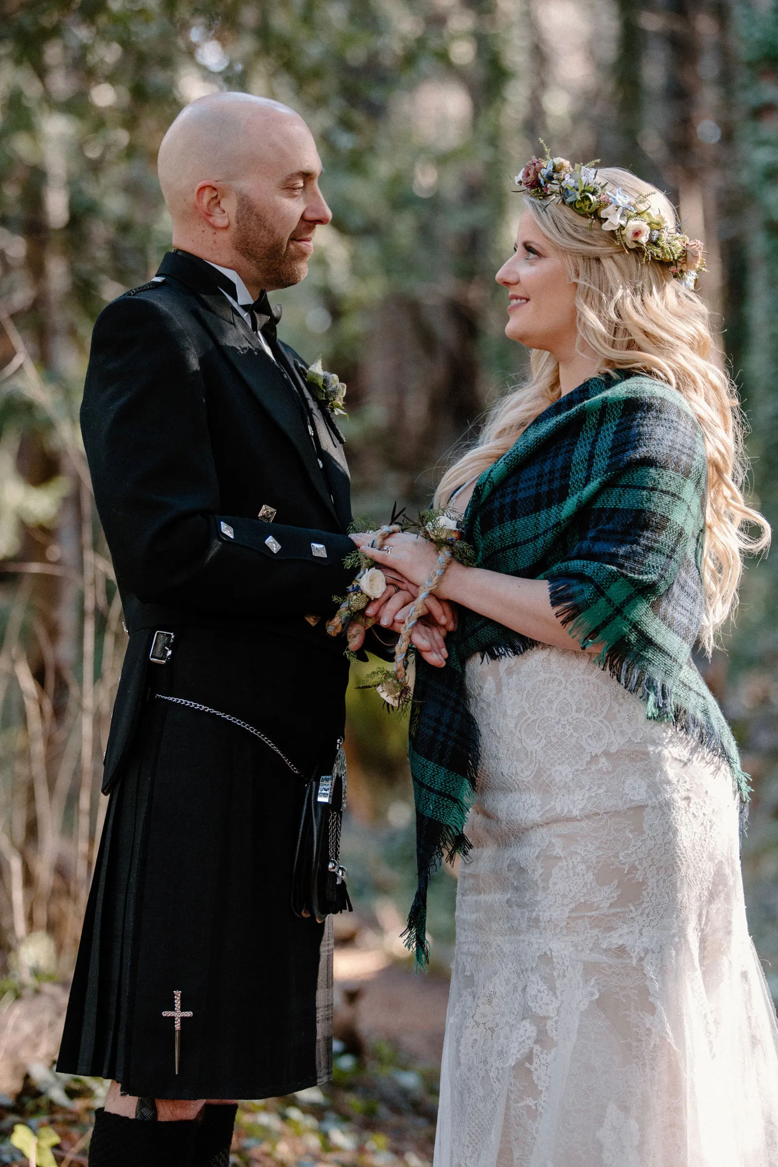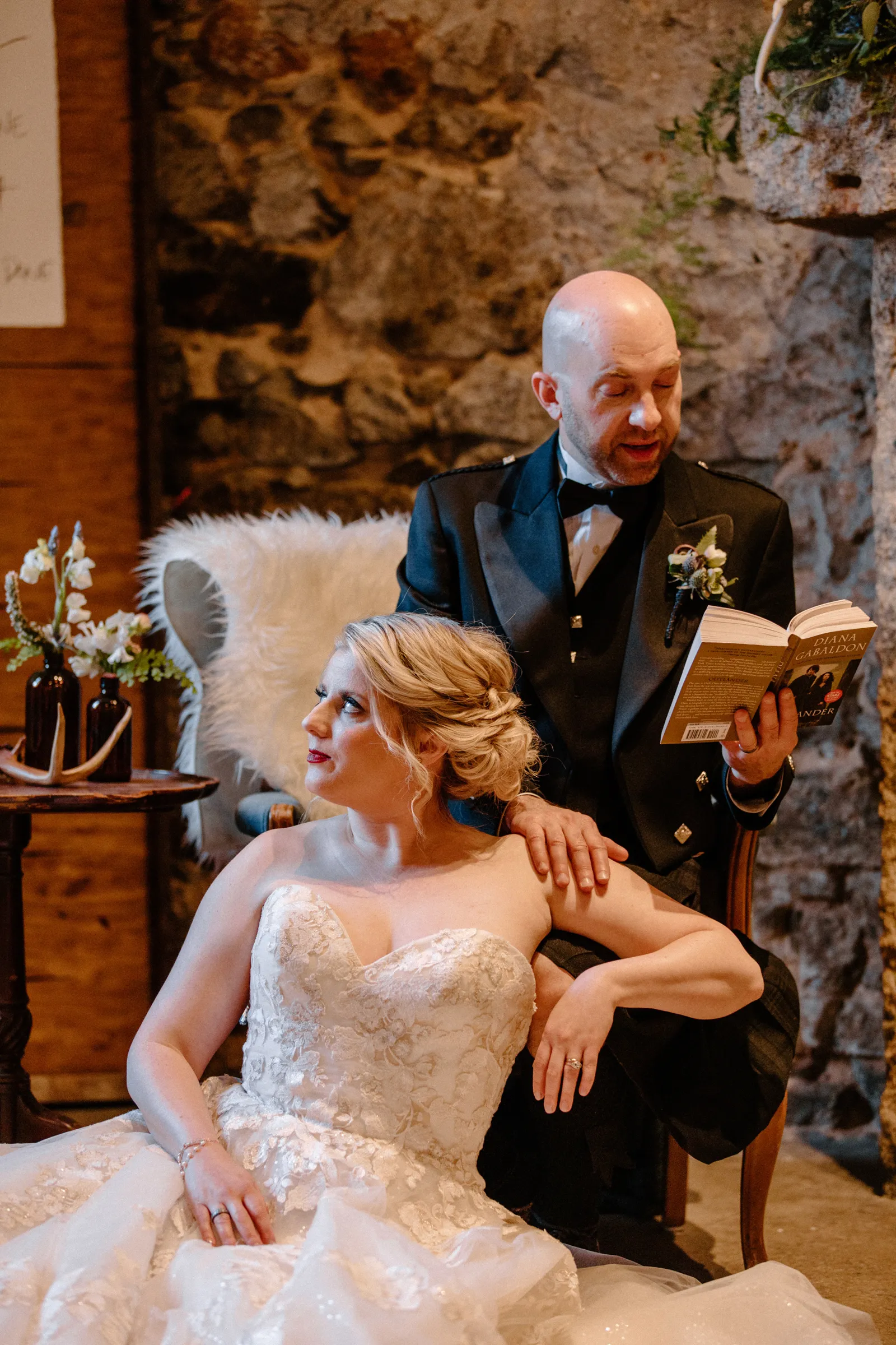 When my friend Kat asked if we’d be interested in featuring a styled shoot with an “Outlander” theme, it maybe took me less than a nano respond with a hell yes, let’s see it! You see, I’m a HUGE “Outlander” fan…in fact, when my husband and I visited Scotland in June, I was sure that I was going to see Jamie + Claire around every corner! If you’re an “Outlander” fan like me, you’ll love this styled shoot staring real couple models Kat + Tony (who you might recognize from our “Beautiful Valley” shoot!) …pour yourself a wee dram and “Slàinte Mhath,” dear readers!
