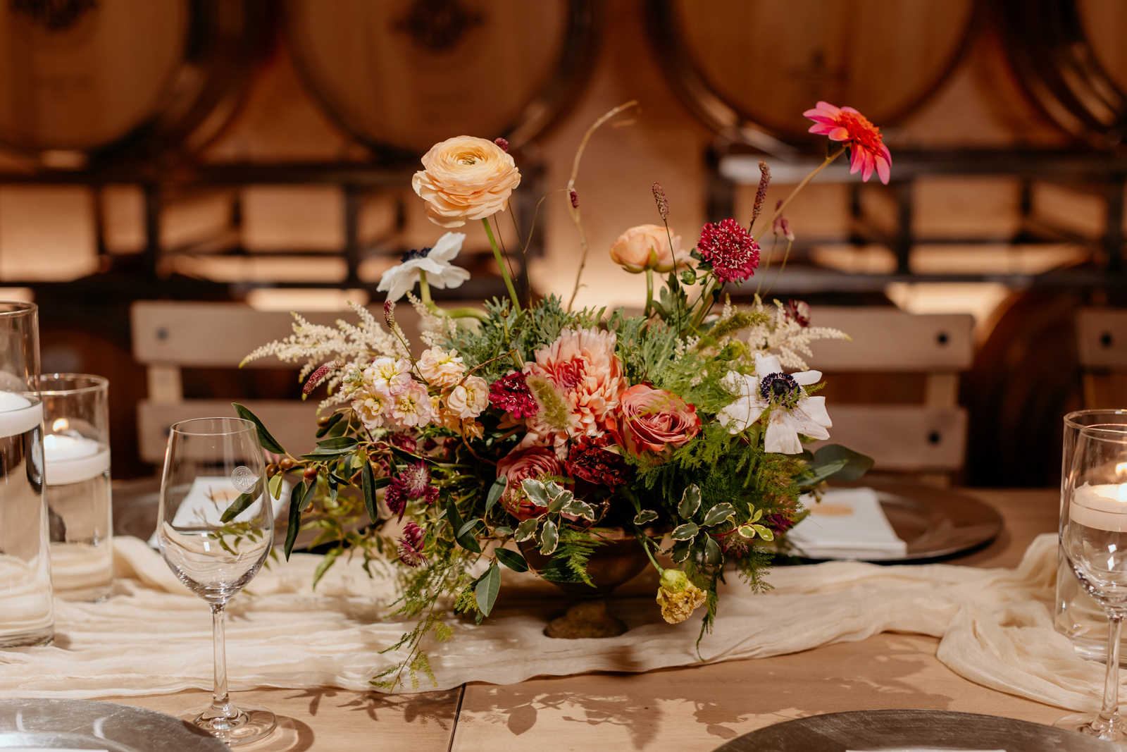 Photos used from a Styled Shoot done by Thistle Bee Florals in the wine cave at Twin Rocks Estate Winery in collaboration with Naian Photography. Find the Vendors listed below!